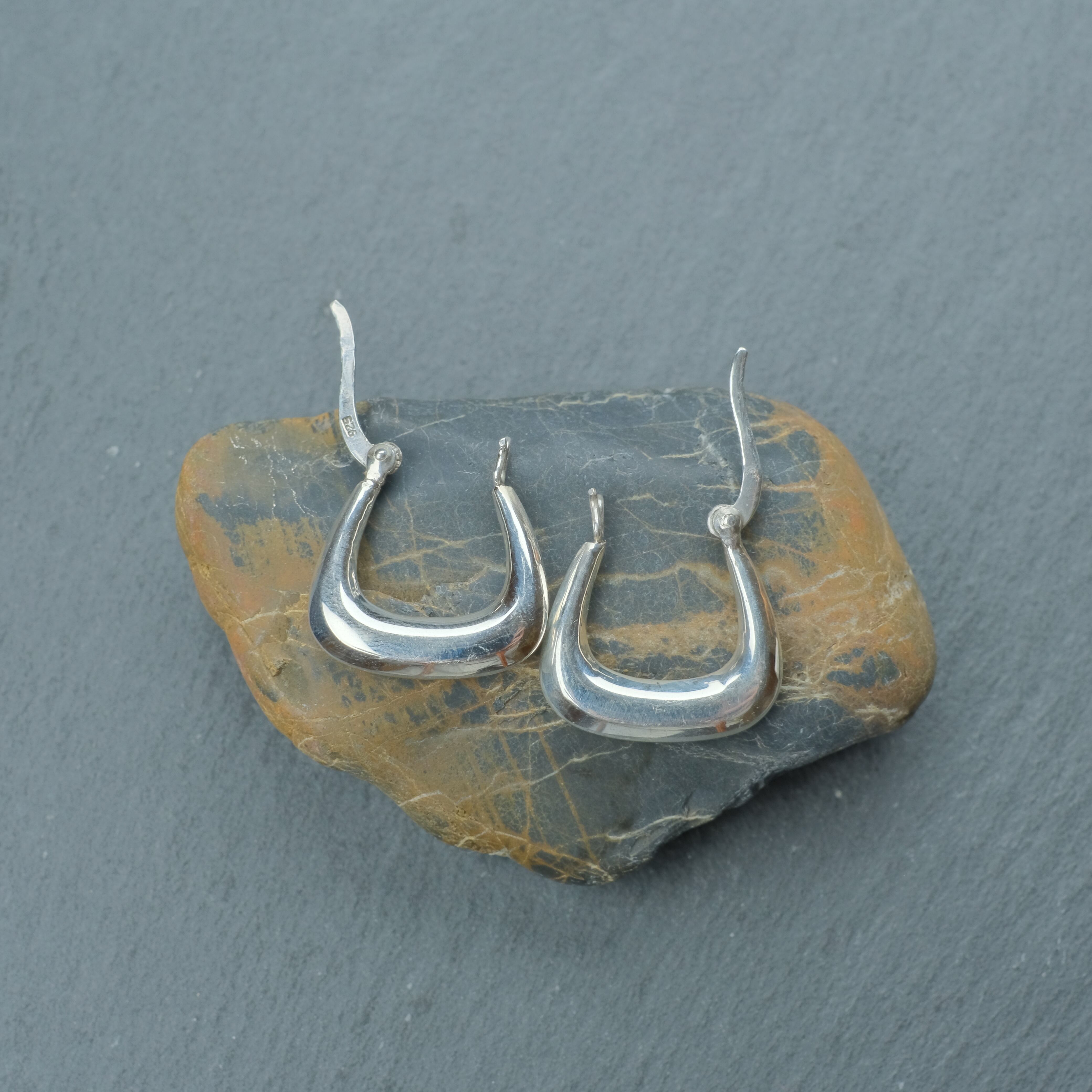 やや特徴的なデザインのシルバーフープピアスになります。
