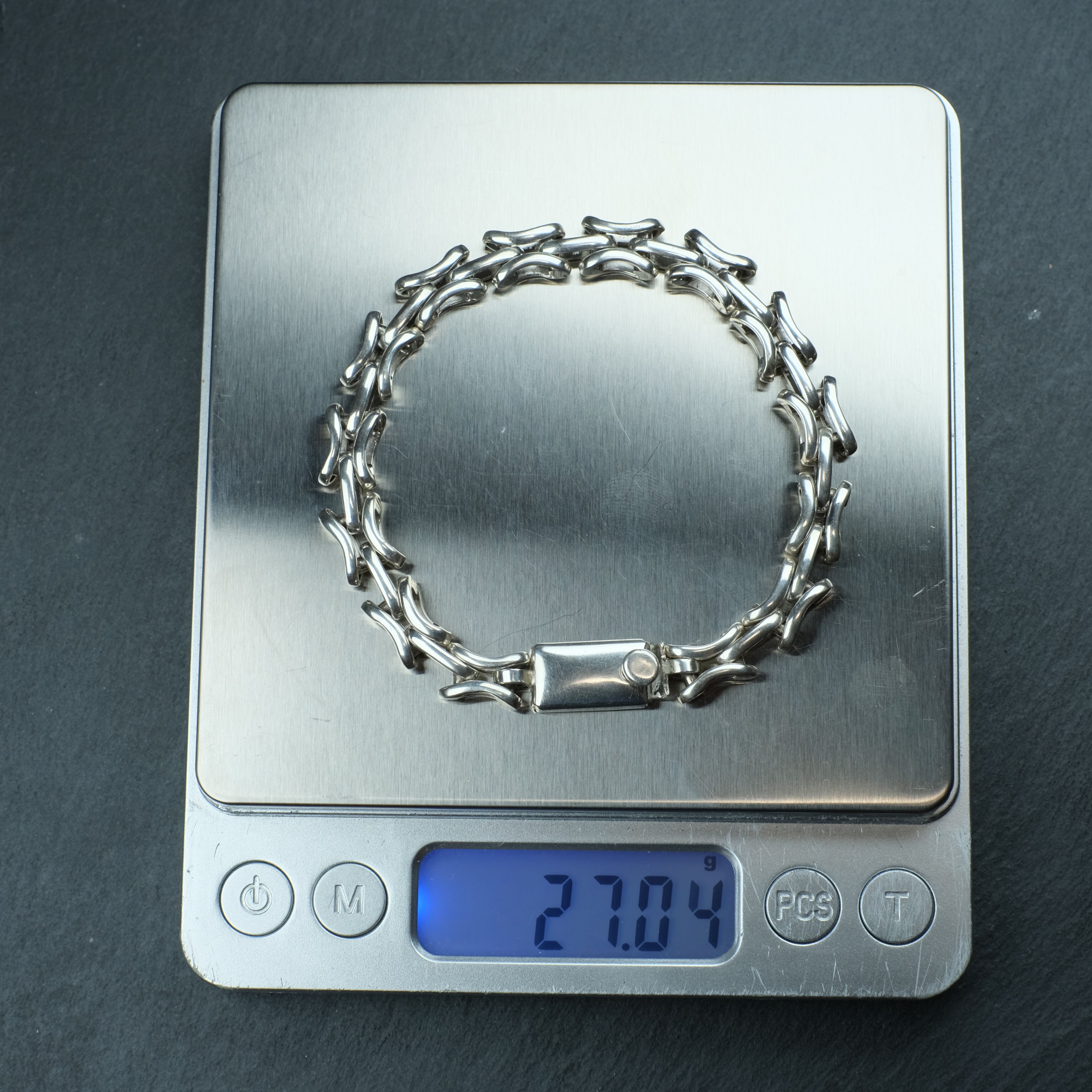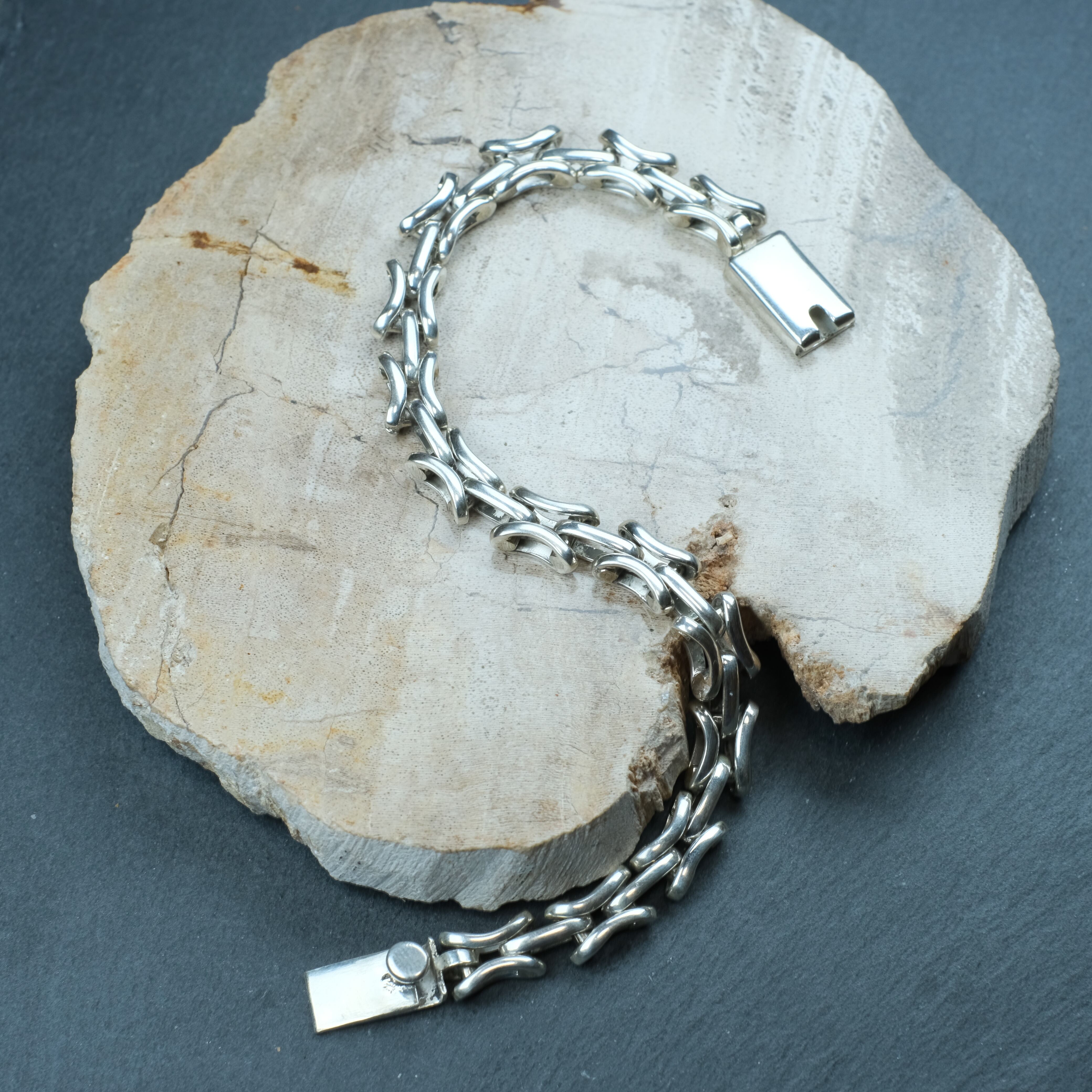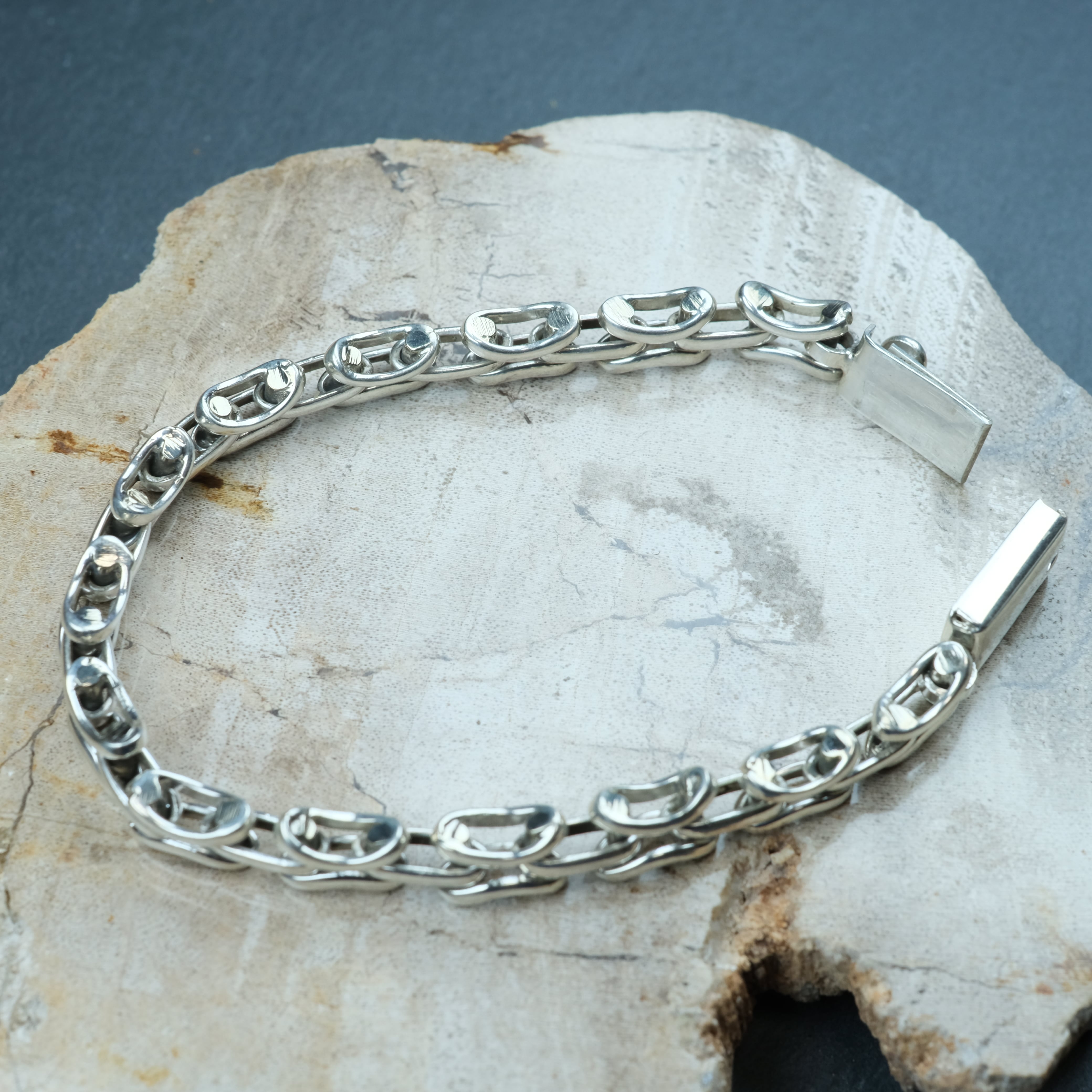 メキシコ タスコ製 シルバー925 ユニークチェーンブレスレット/軽研磨仕上げ