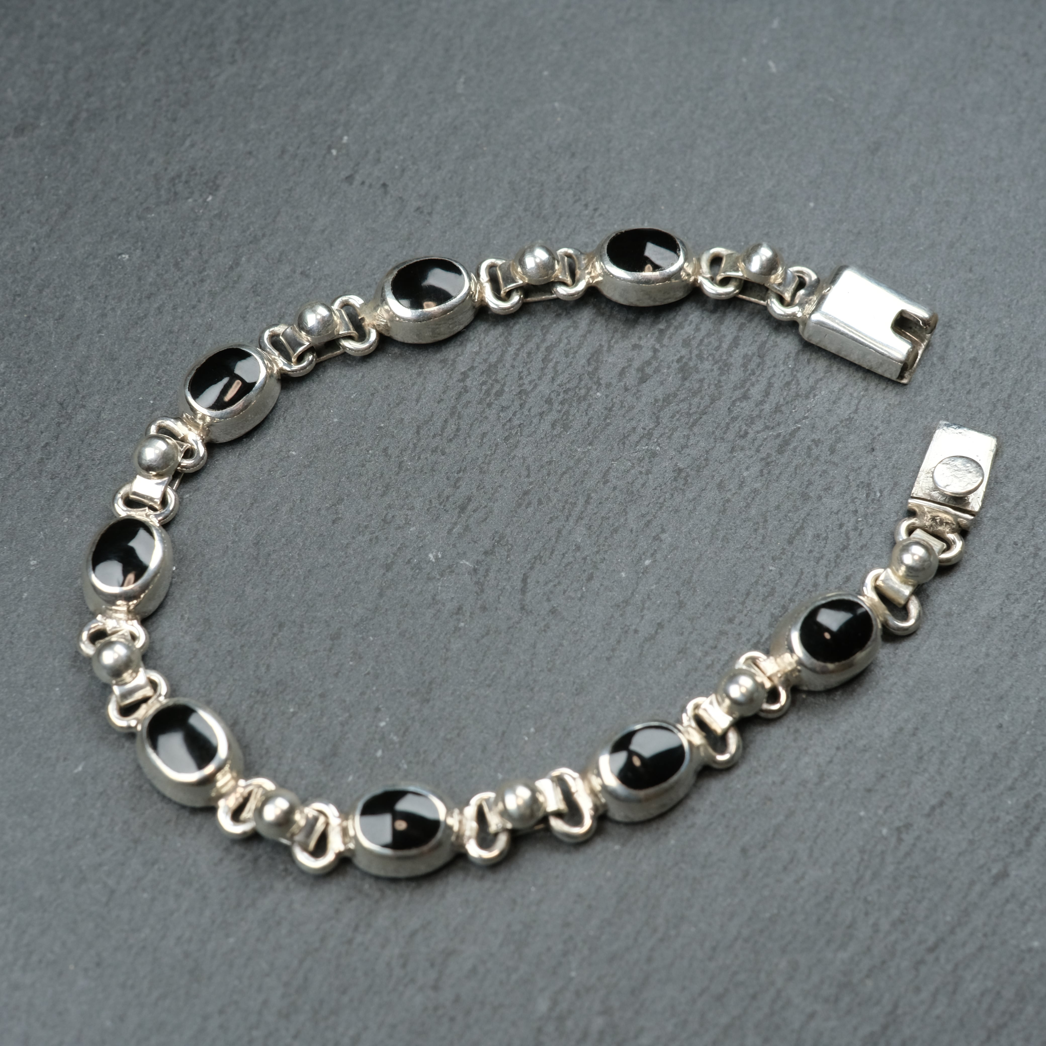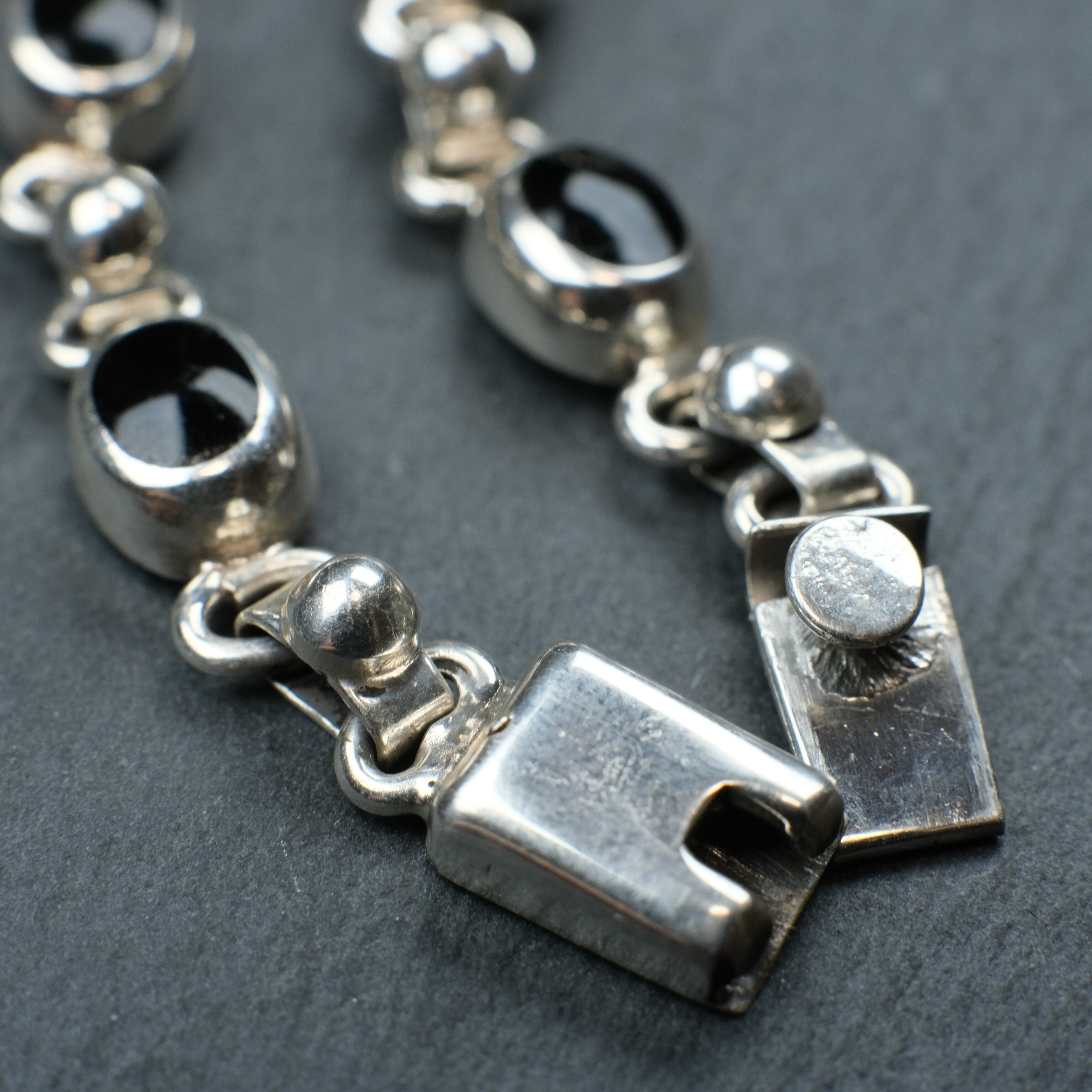 メキシコ タスコ製 シルバー925 オニキスデザインブレスレット/軽研磨仕上げ