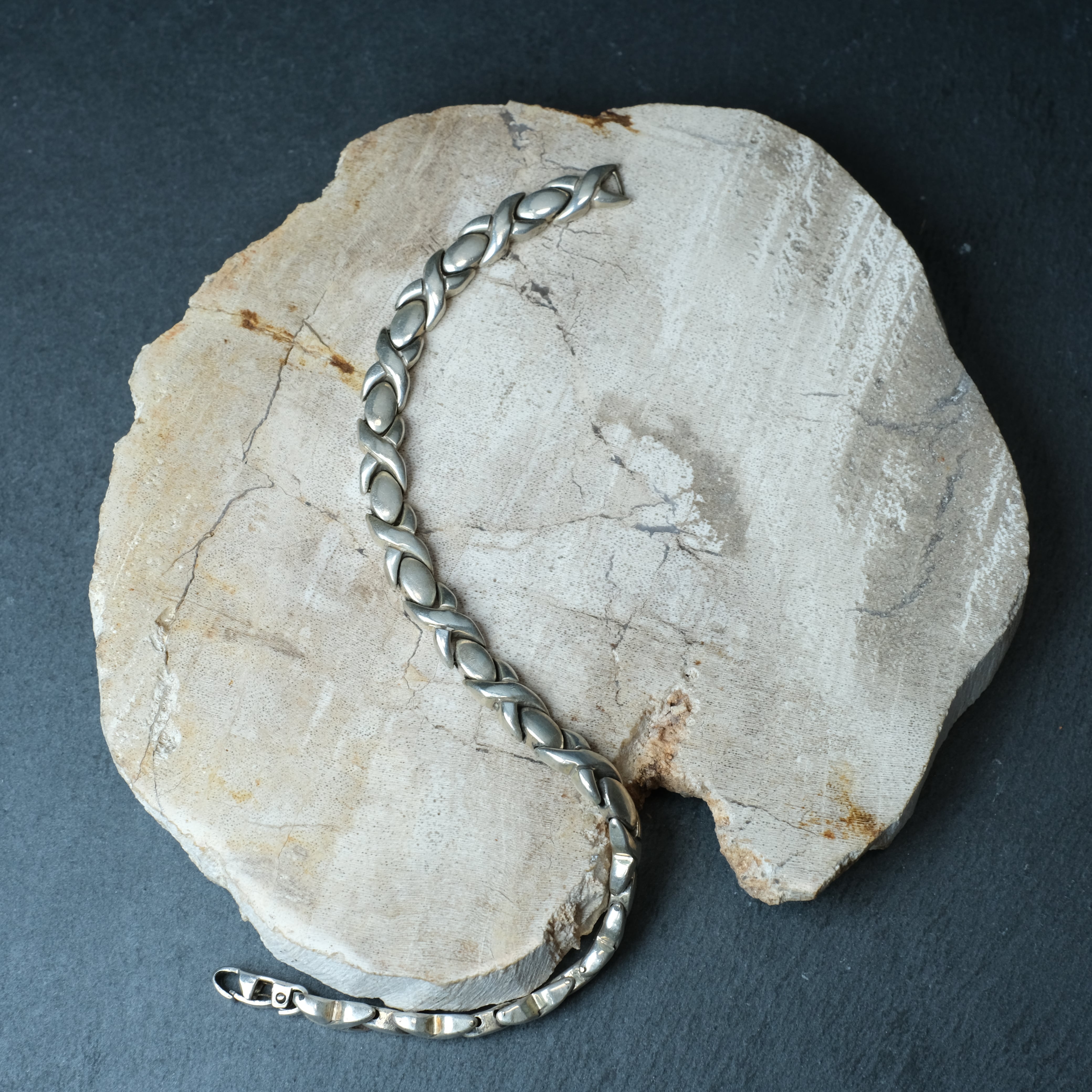 ヴィンテージ メキシコ タスコ製 シルバー925 デザインチェーンブレスレット/軽研磨仕上げ