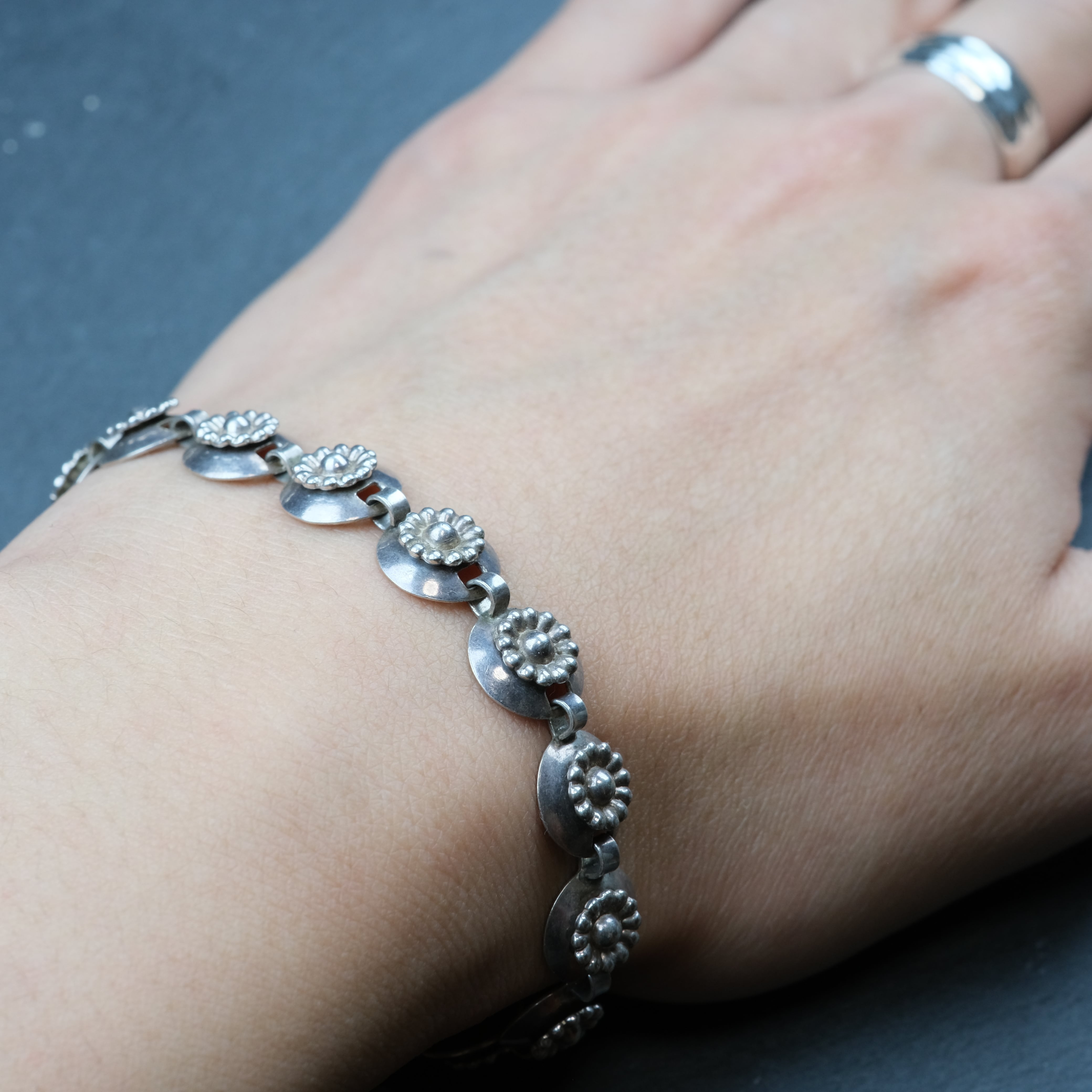 ヴィンテージ 60s デンマーク製 シルバー925 ハーマン・シーボル作 フラワーモチーフブレスレット