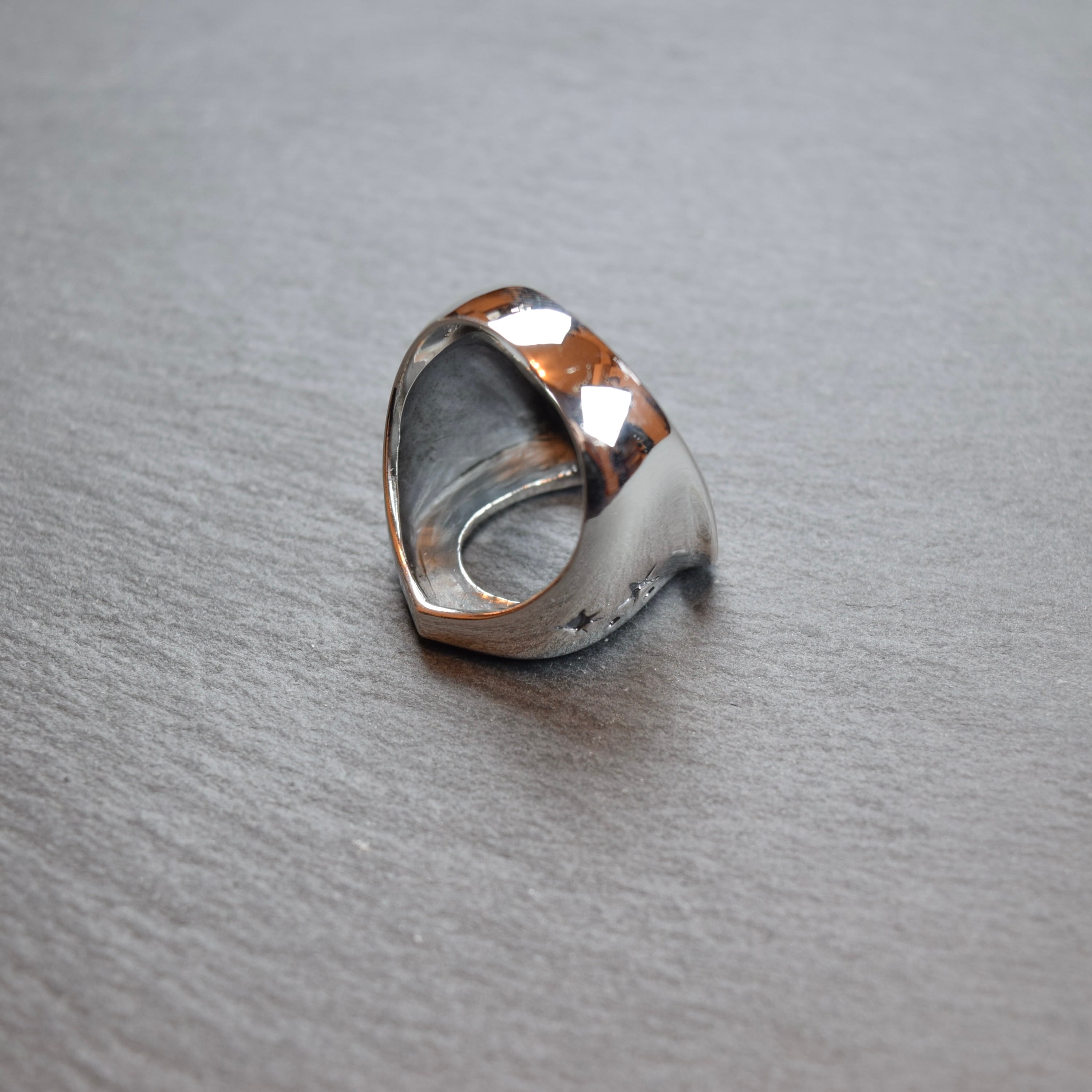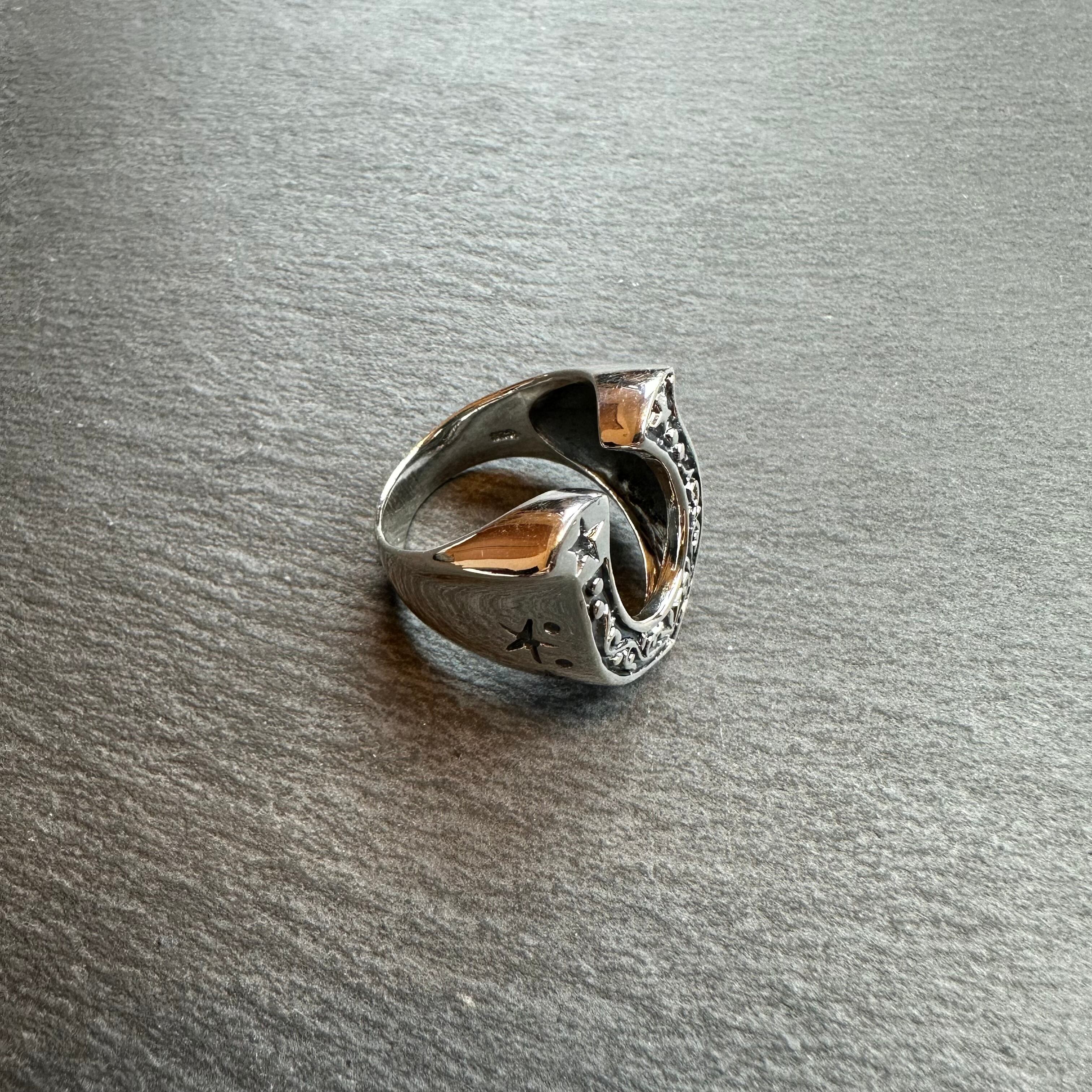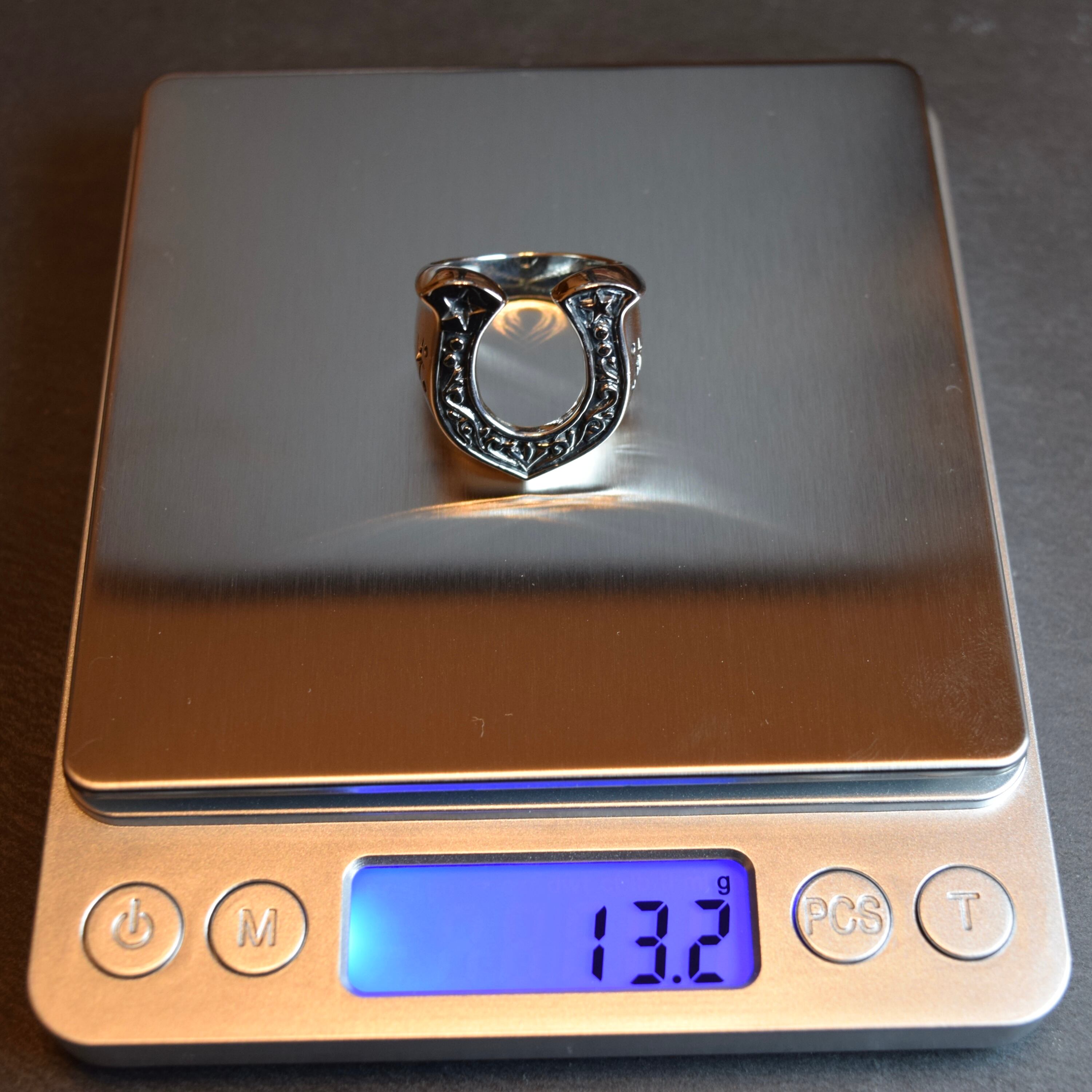 ホースシューデザインのシルバーリングになります。サイドにも彫りデザインが施されており、小洒落た逸品になります。