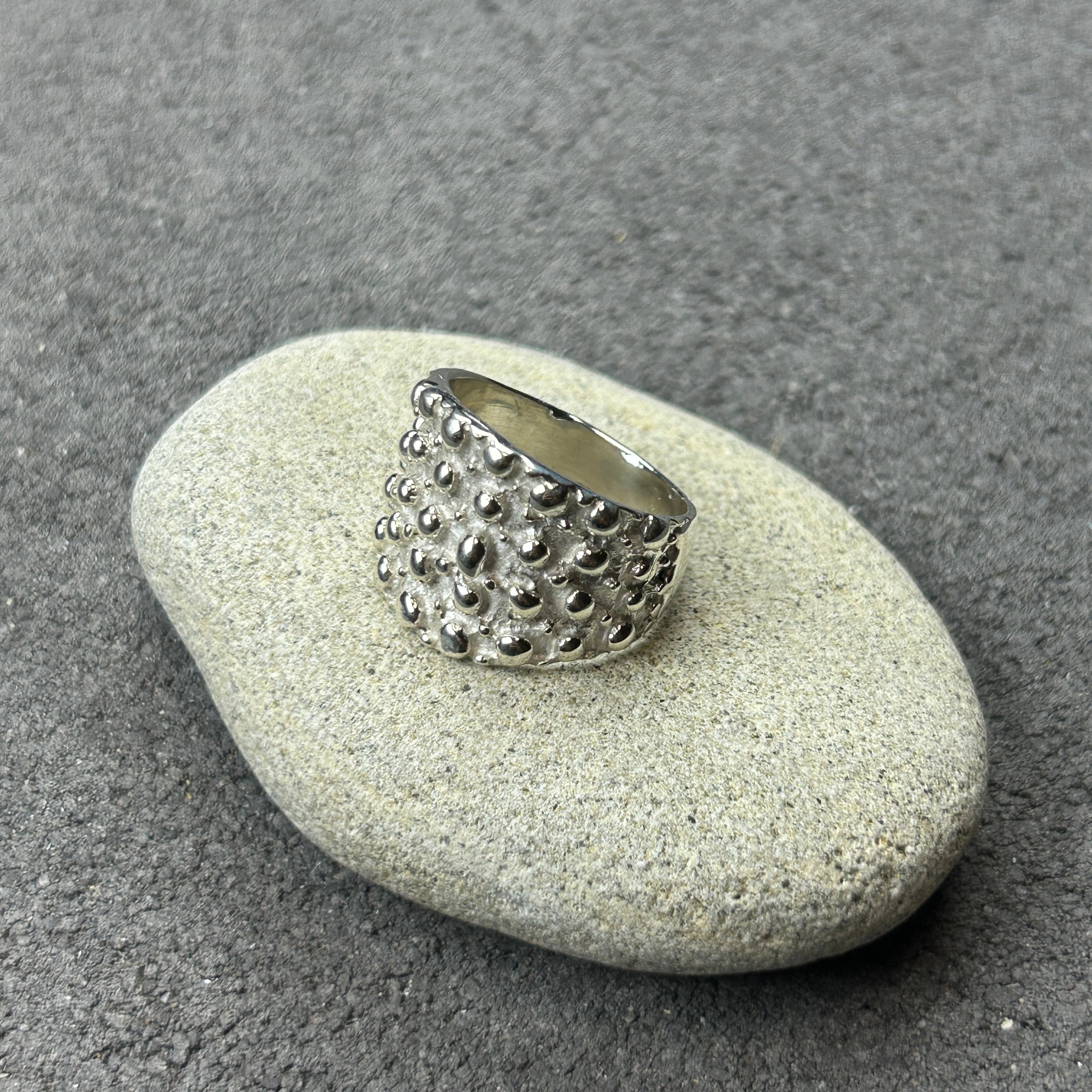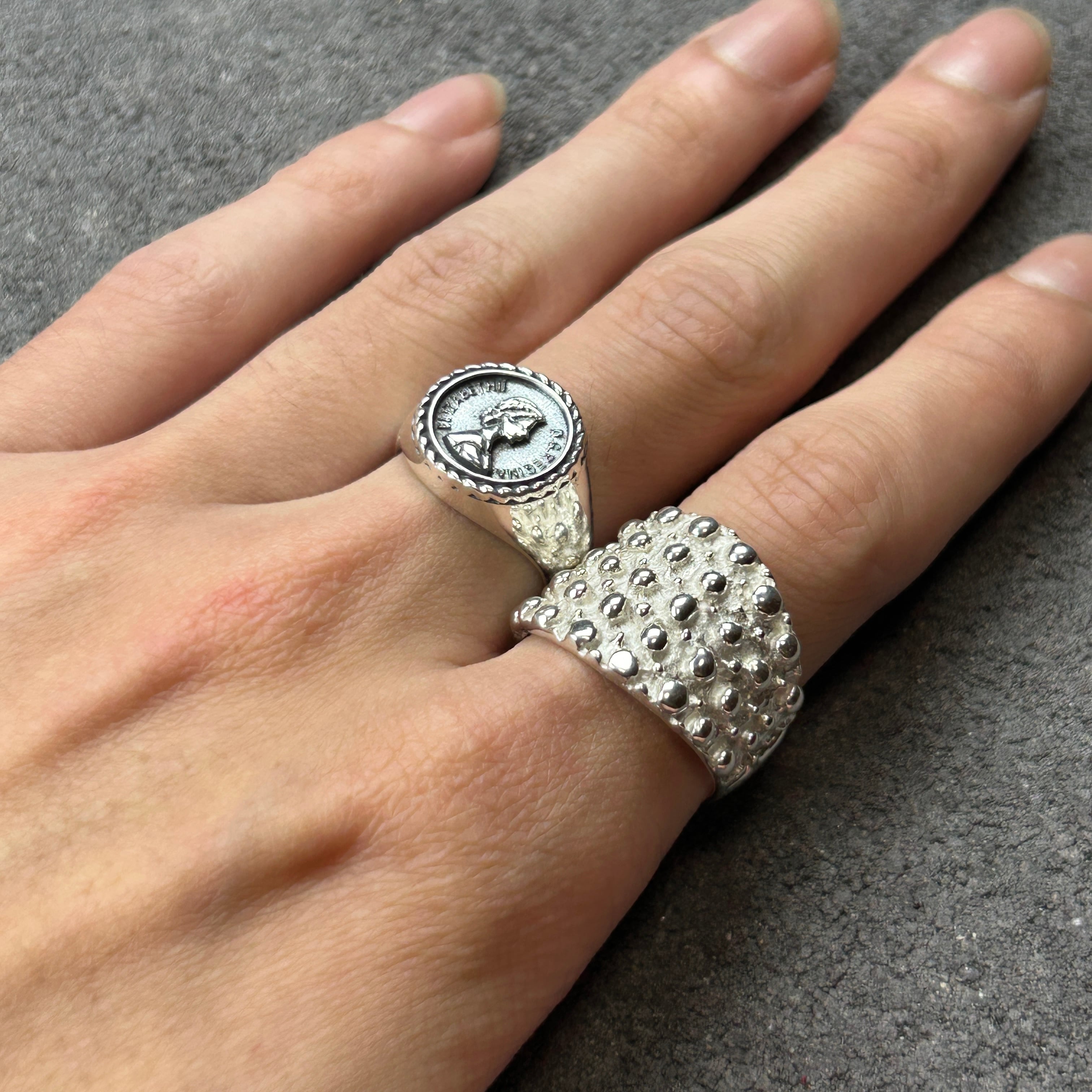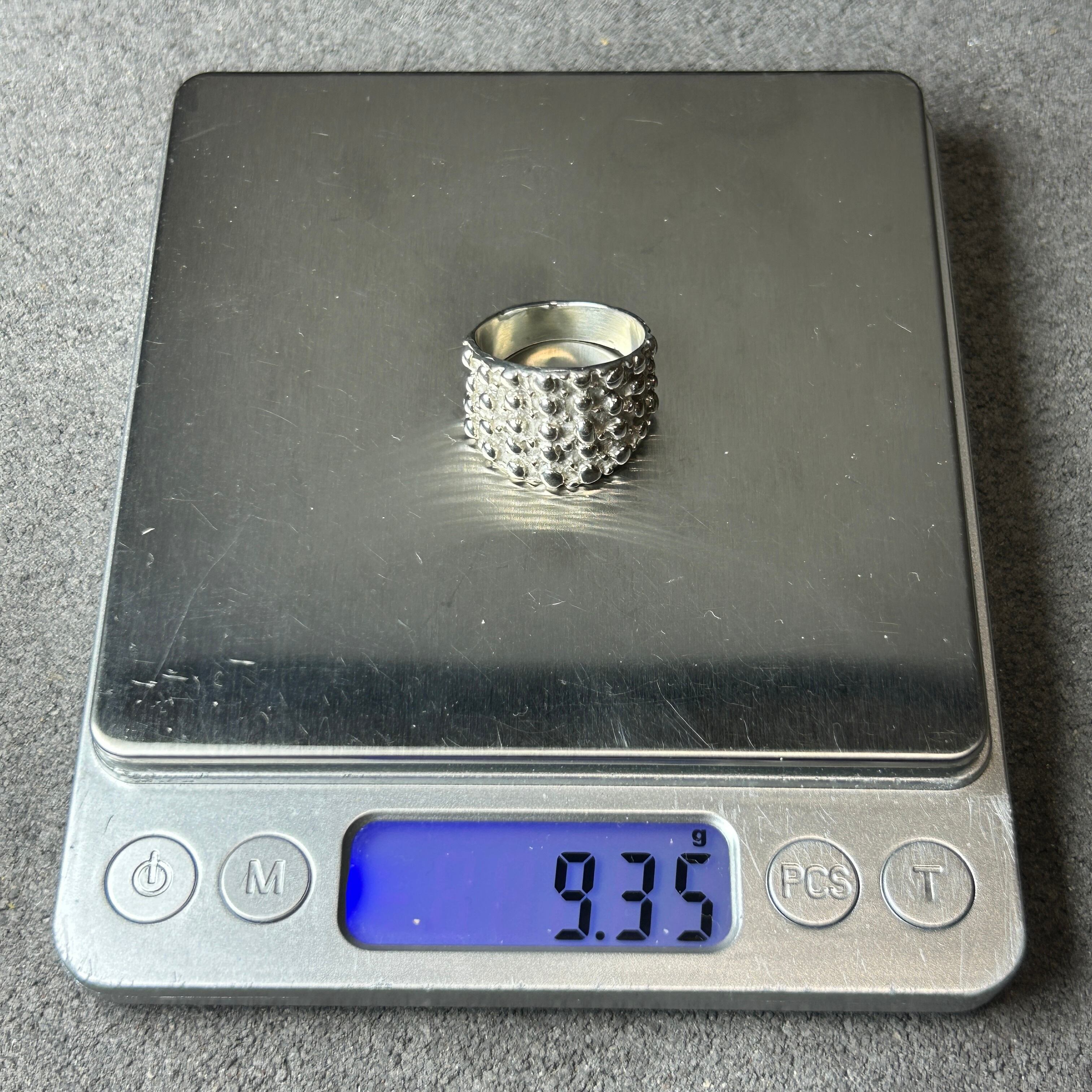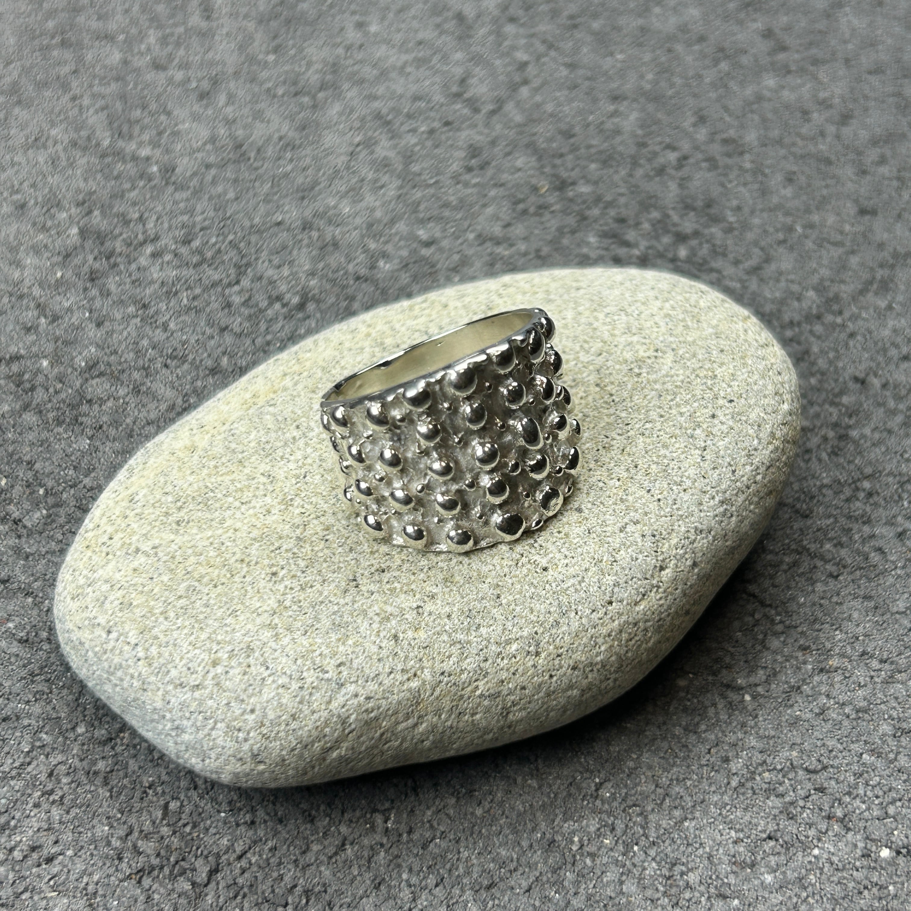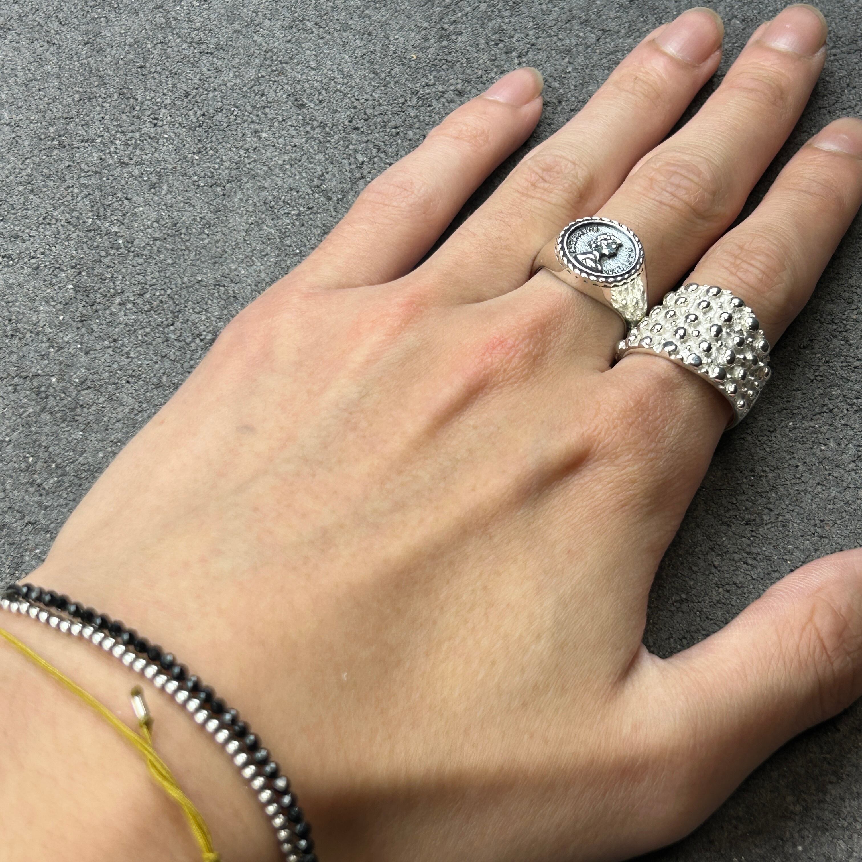 かなり白光りが綺麗な、ドットモチーフのシルバーリングになります。