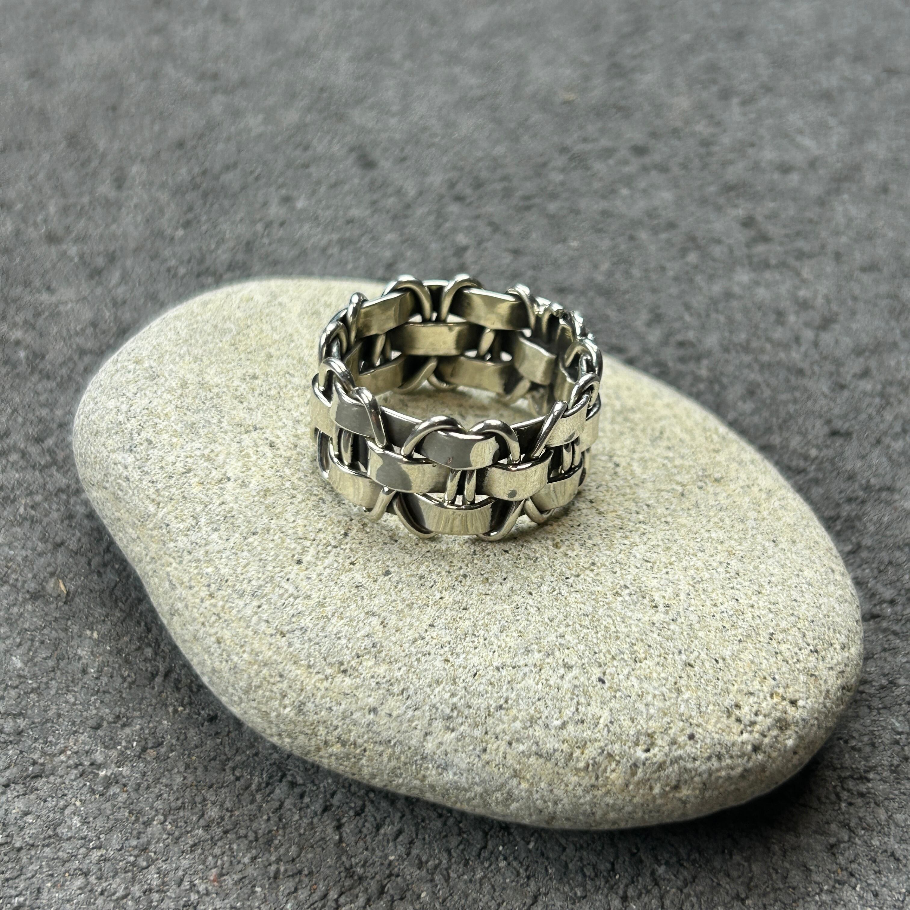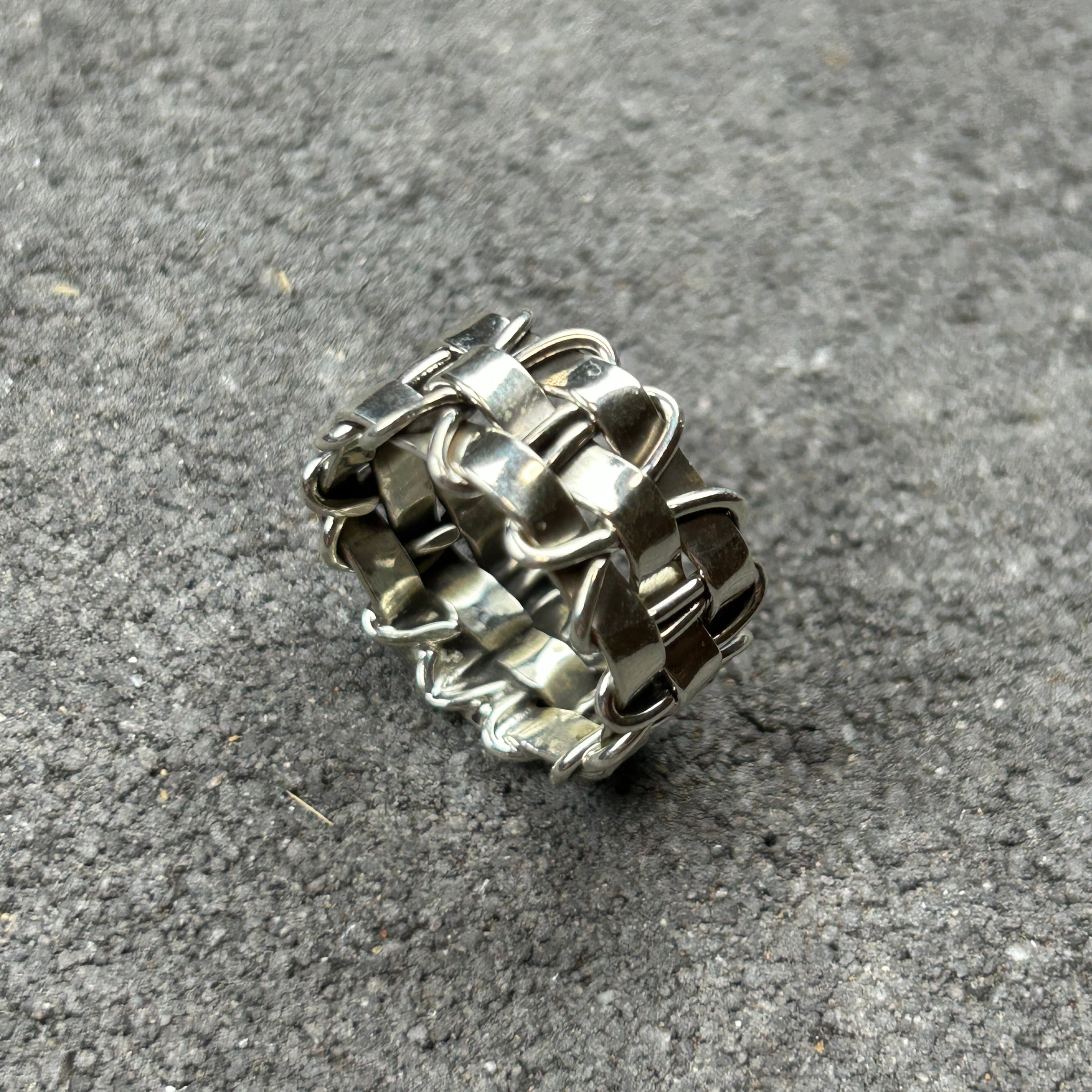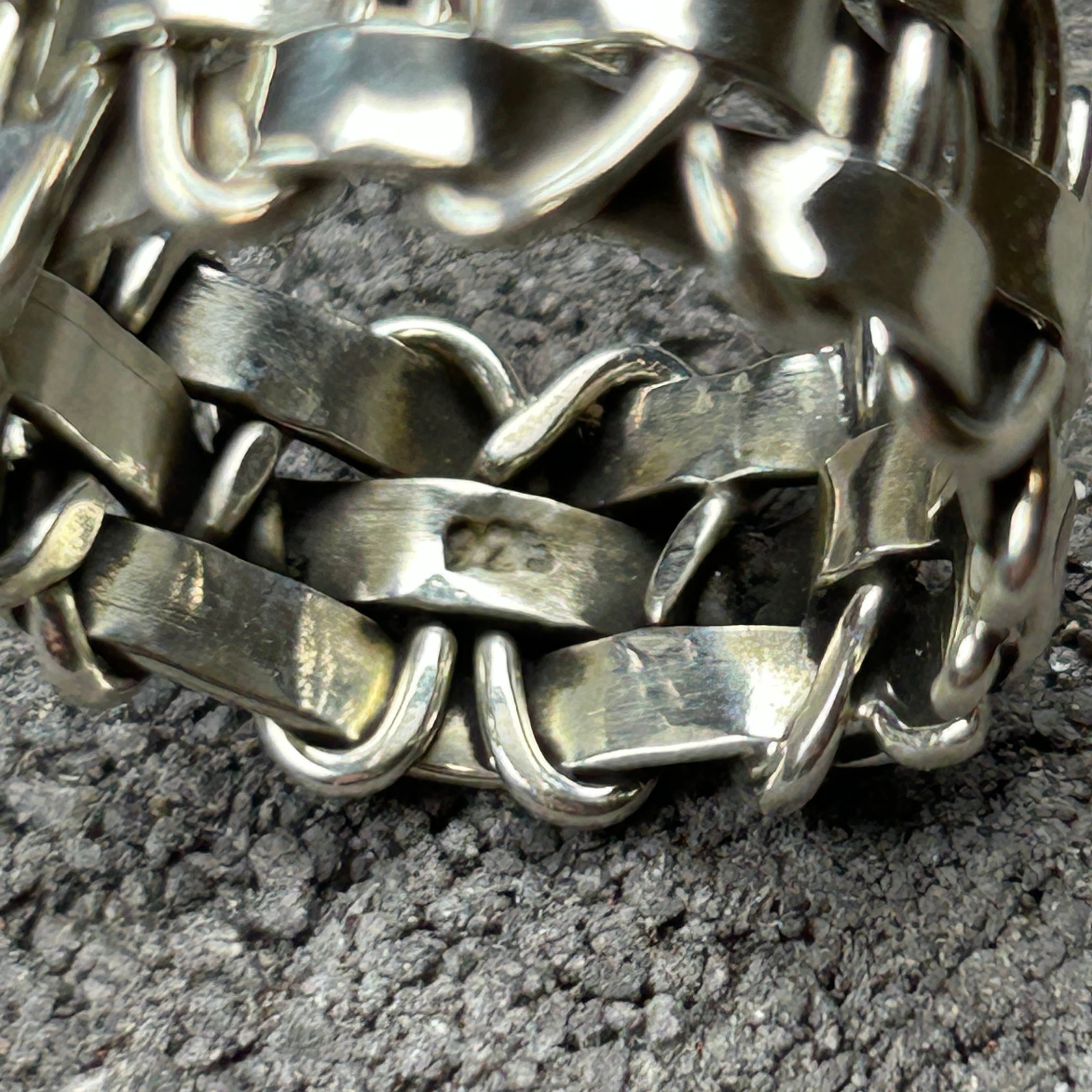 メキシコ タスコ製 TAXCO シルバー925 編み込みワイドリング/軽研磨仕上げ
