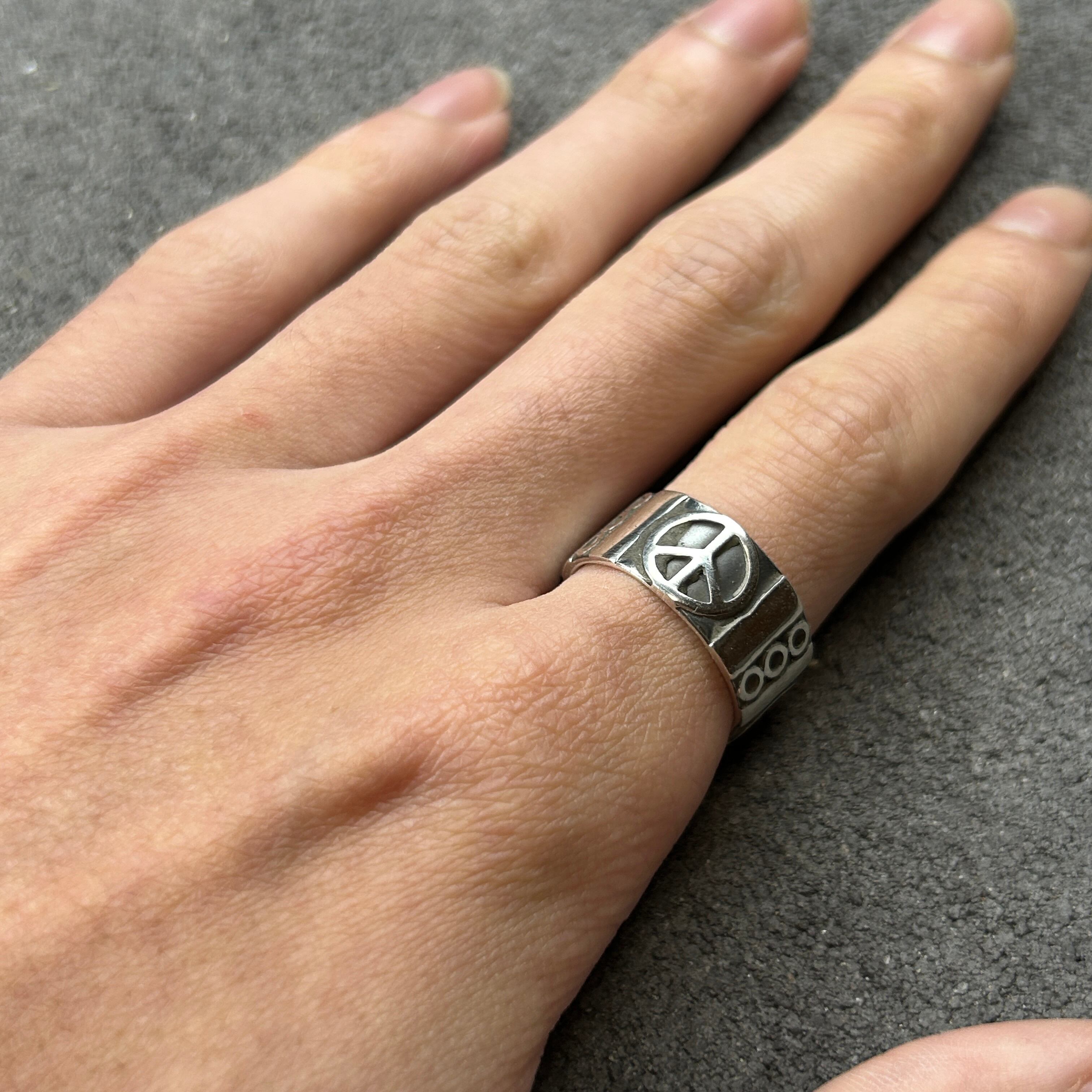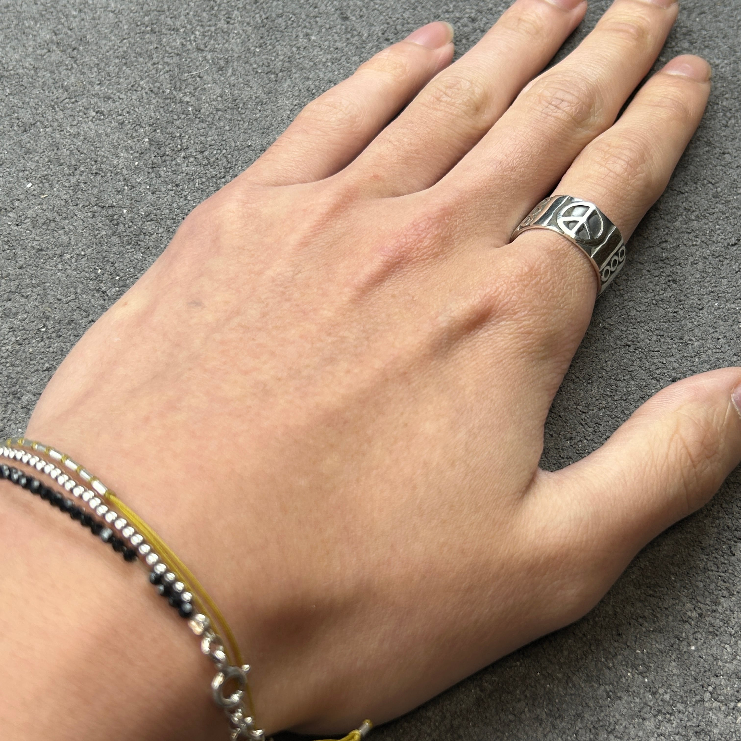 ピースマークが並んだ使い易い、シルバーリングになります。