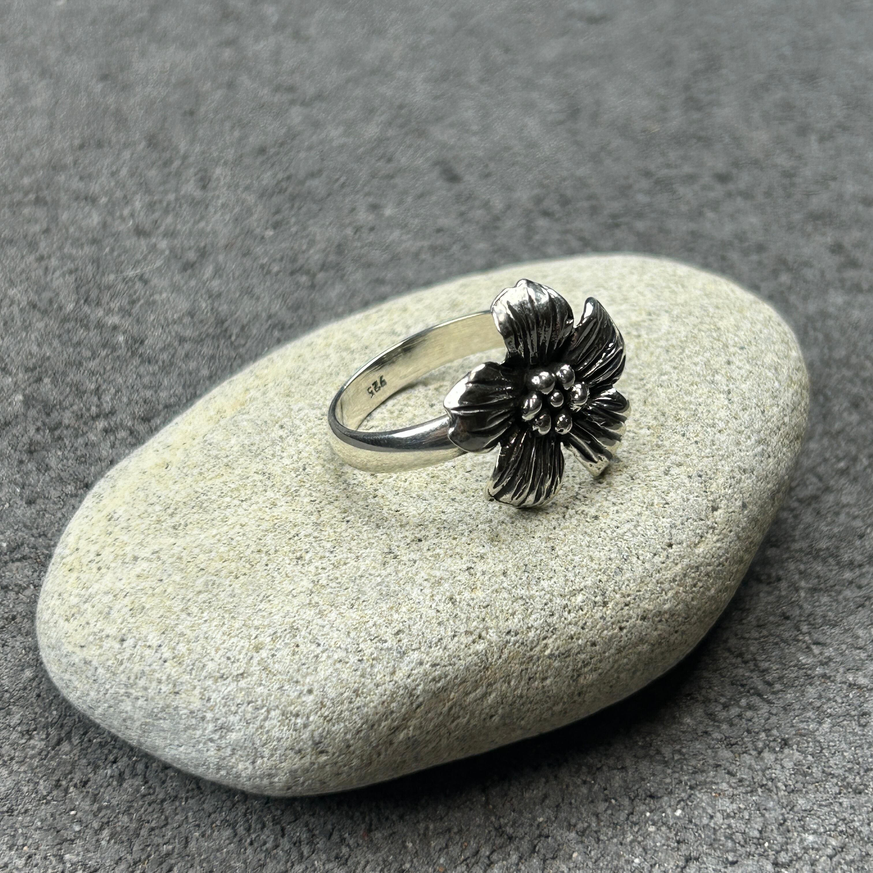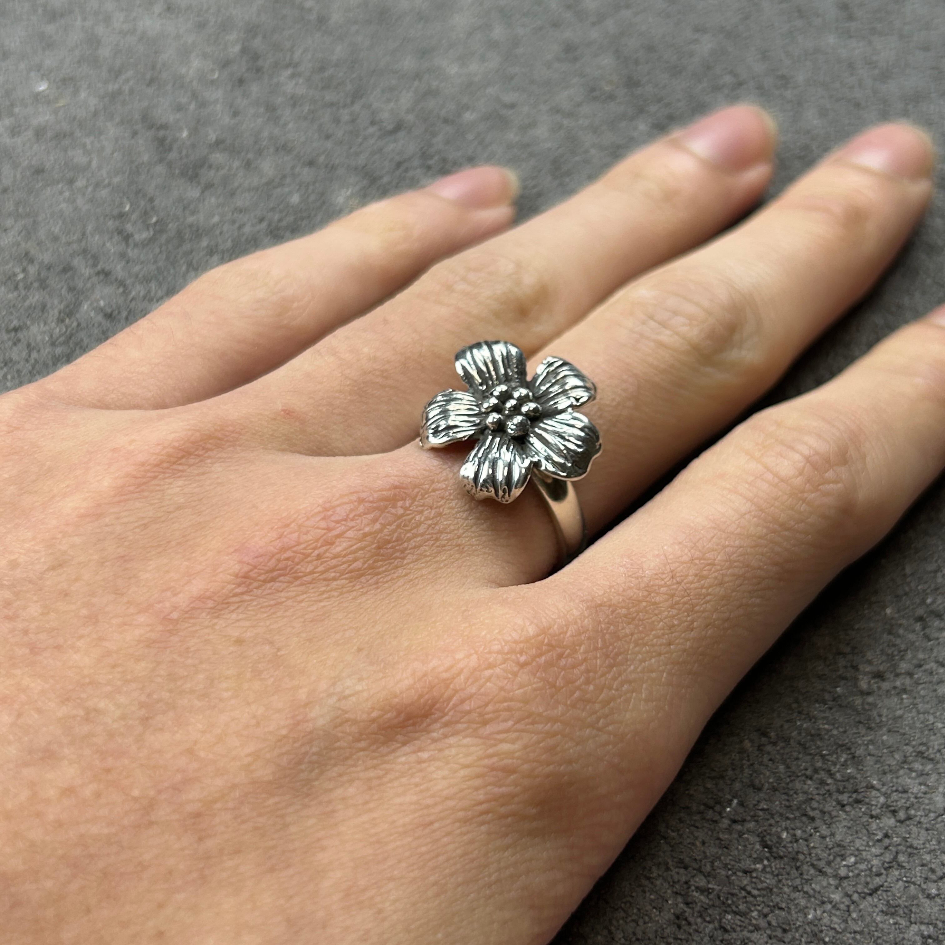 個性さ・存在感のあるフラワーモチーフのシルバーリングになります。