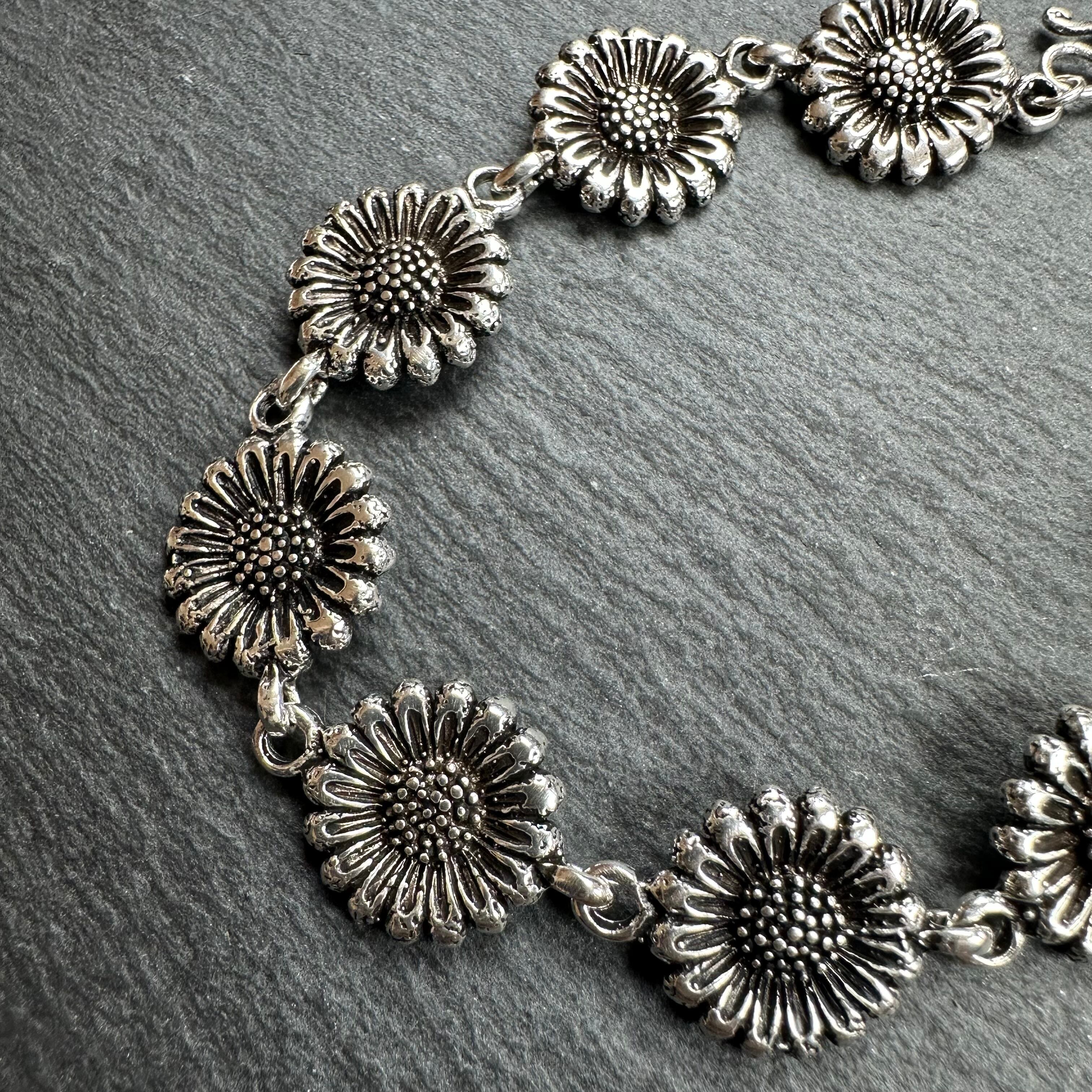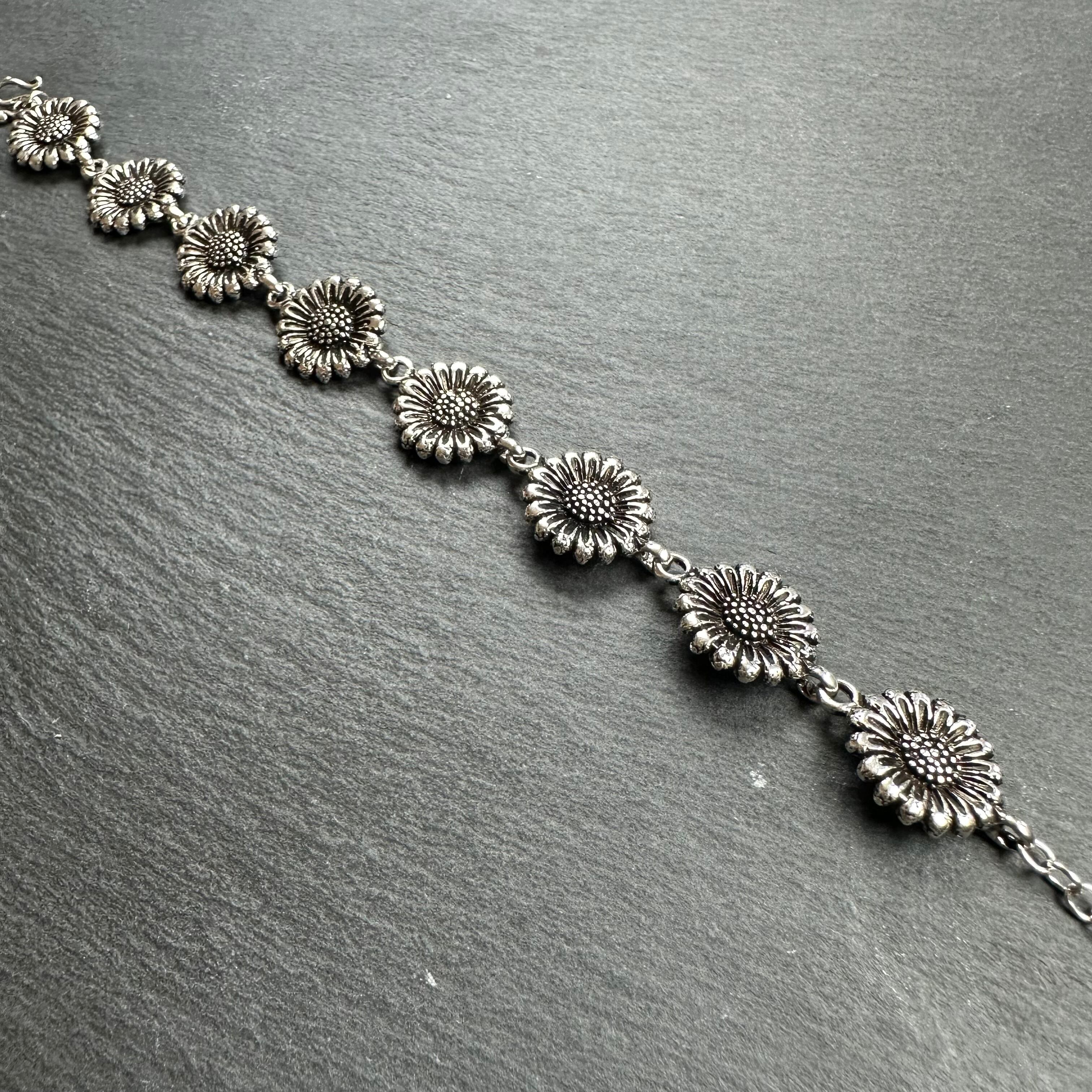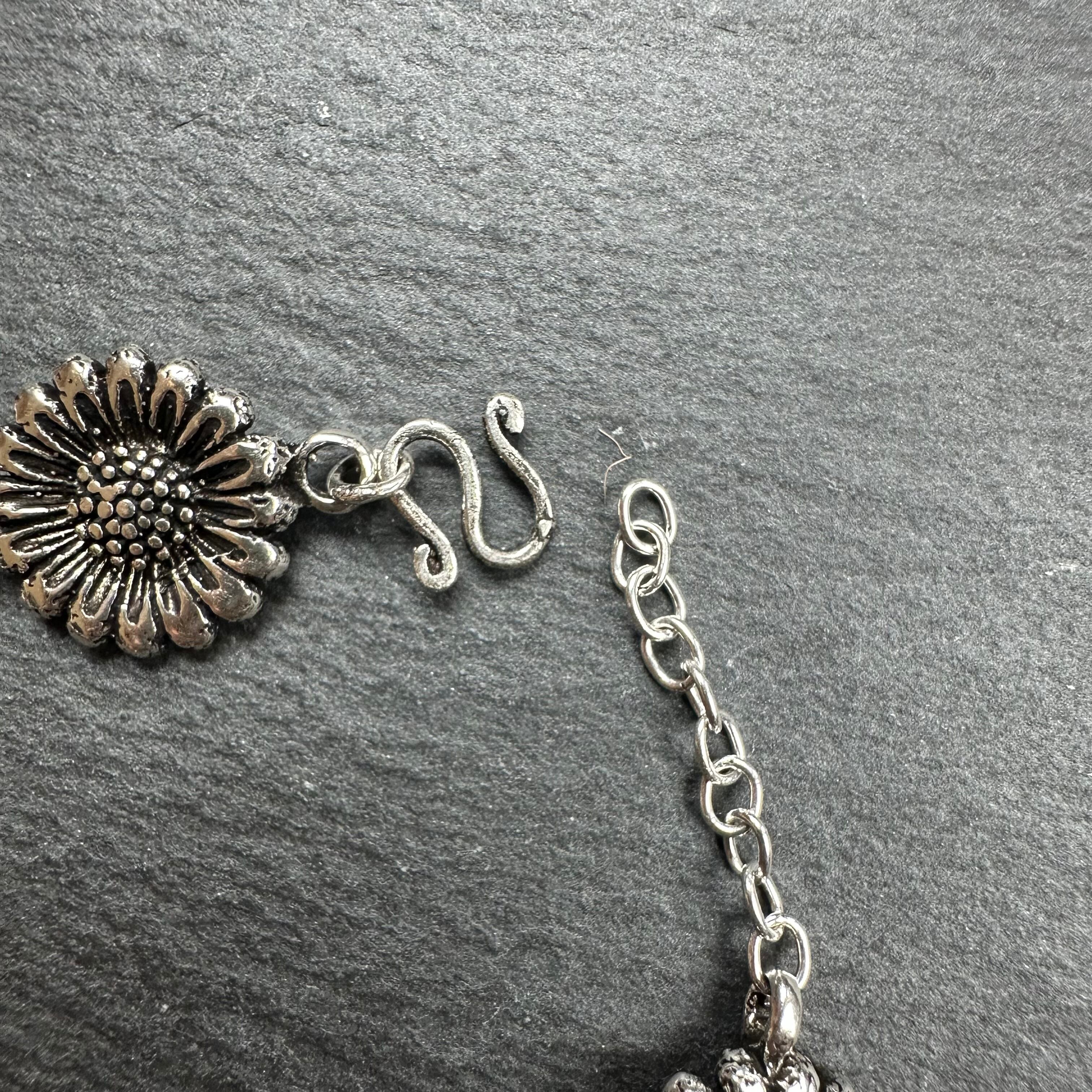 存在感のあるフラワーモチーフのシルバーブレスレットになります。
