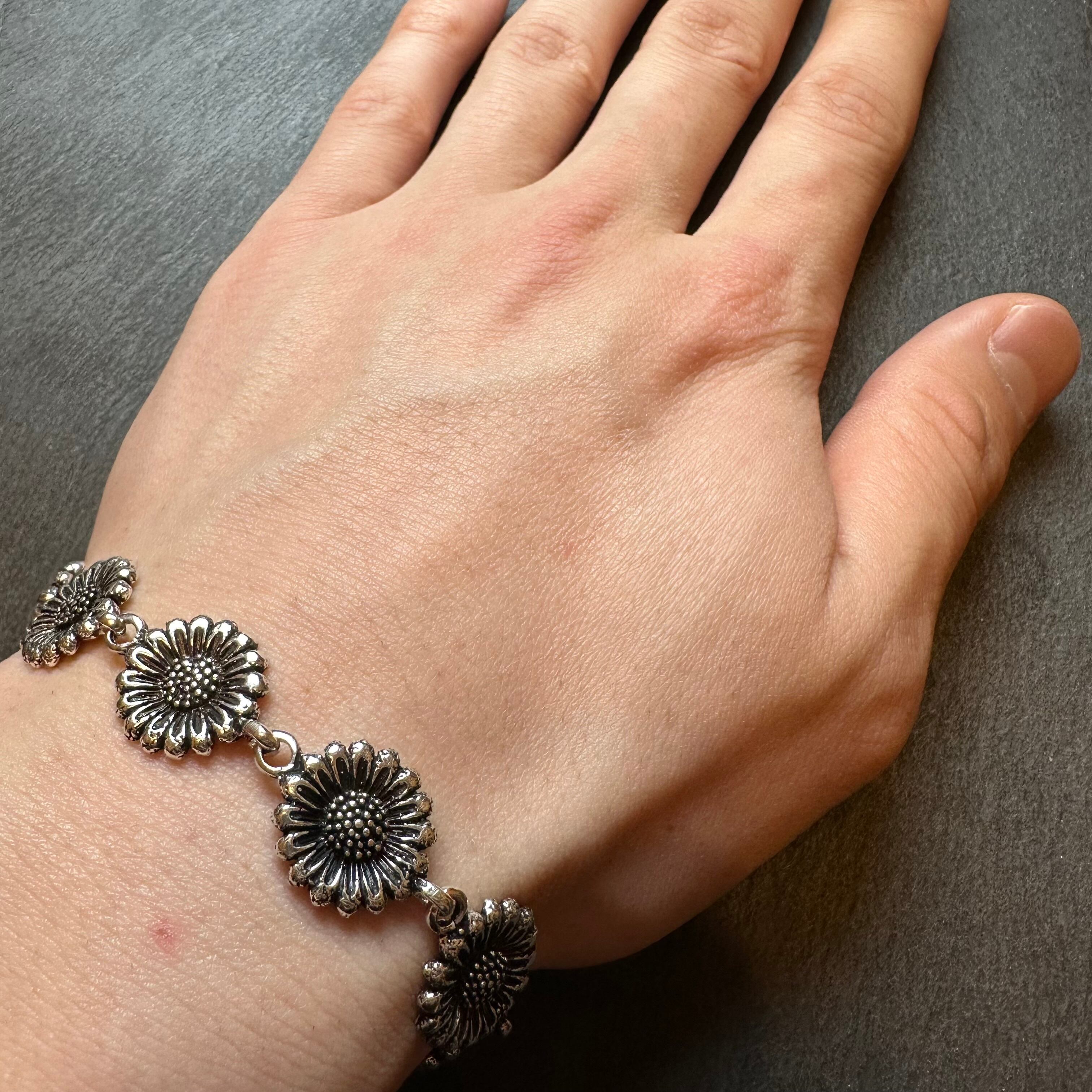 シルバー925 Silver フラワーデザインブレスレット/軽研磨仕上げ