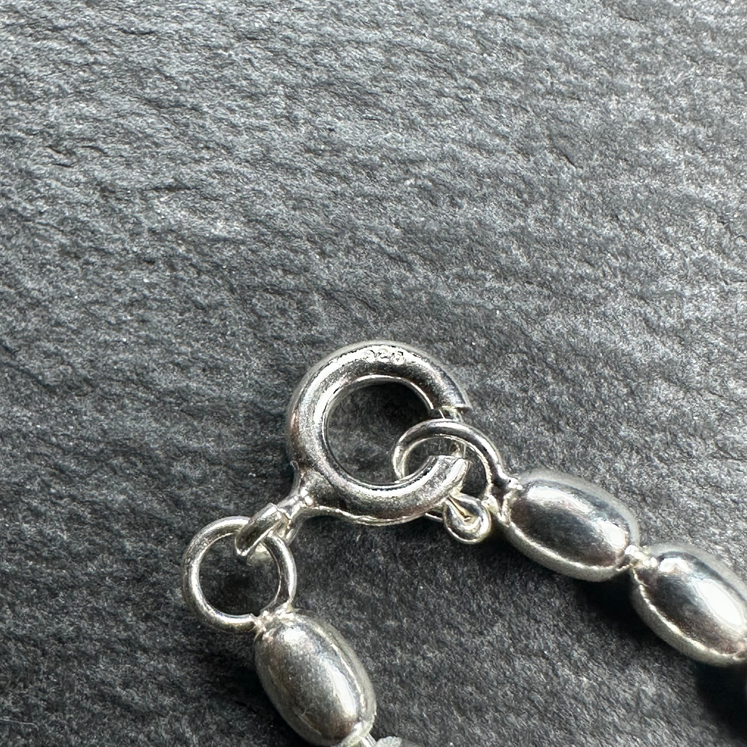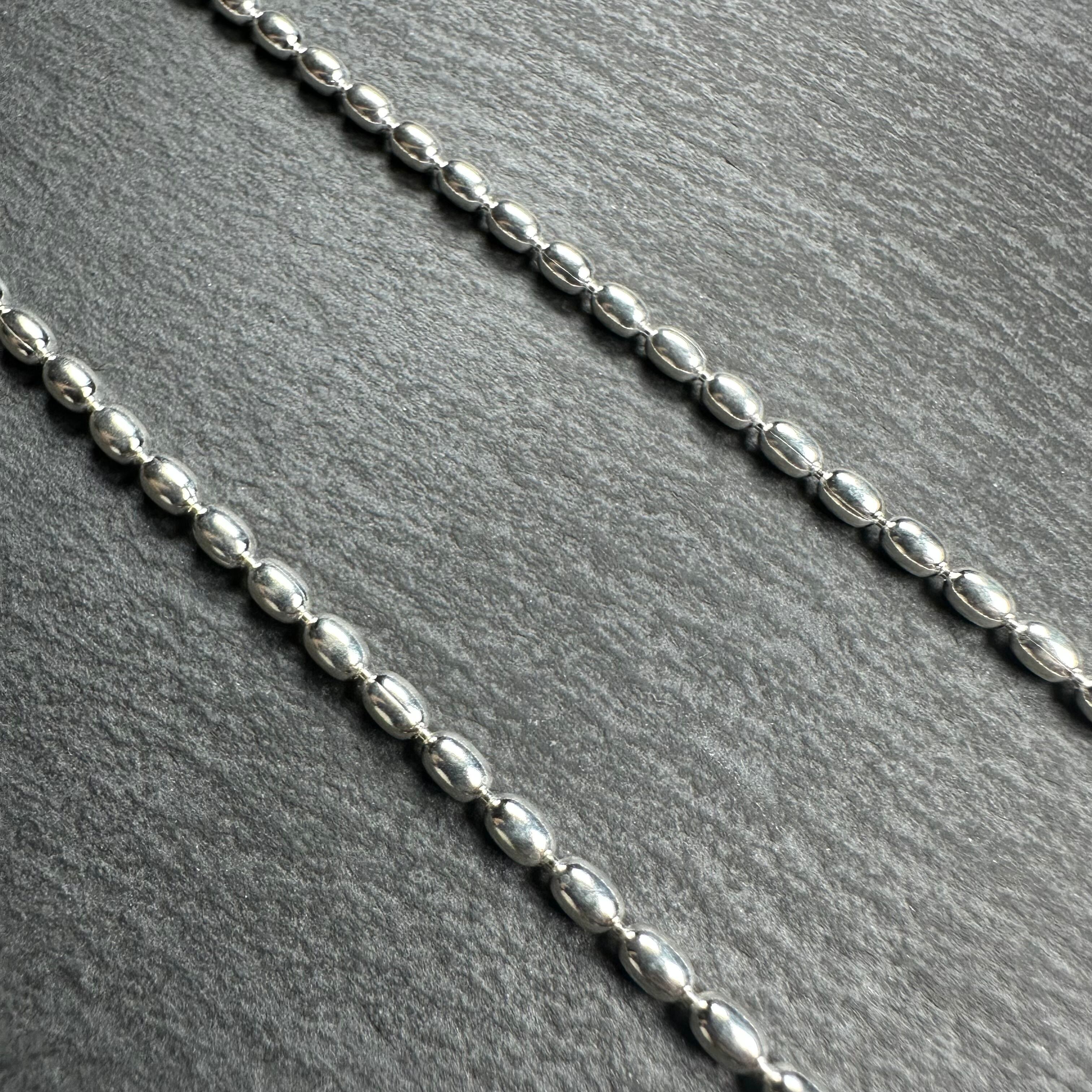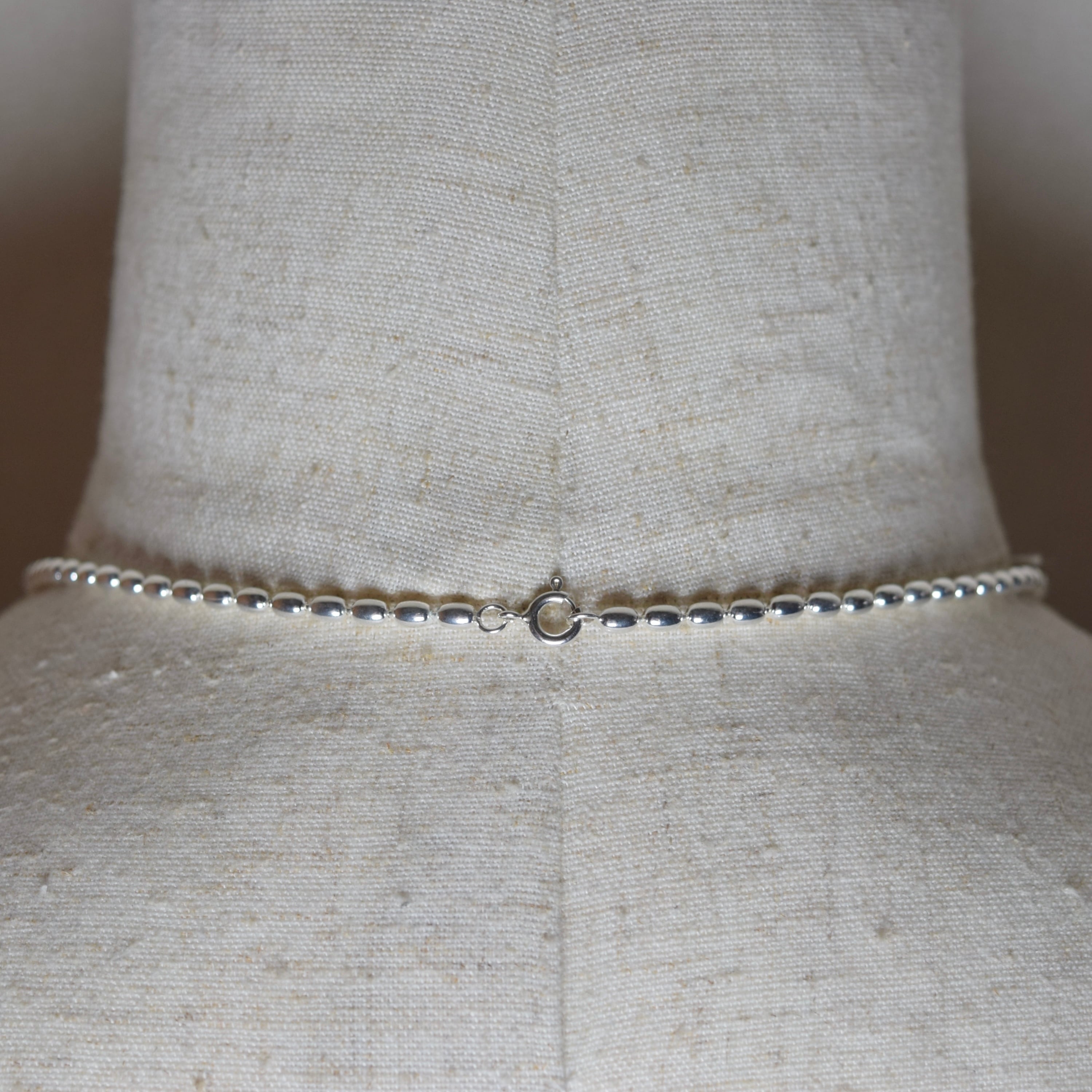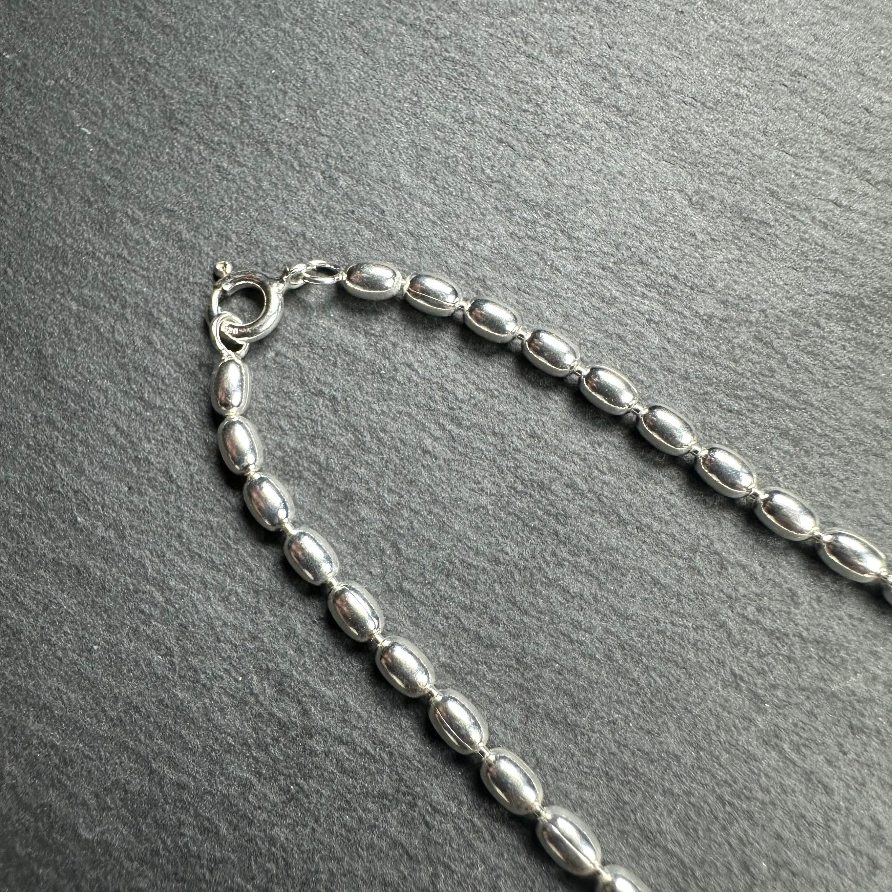 大きめのビーズチェーンで、上品な雰囲気のあるシルバーネックレスです。