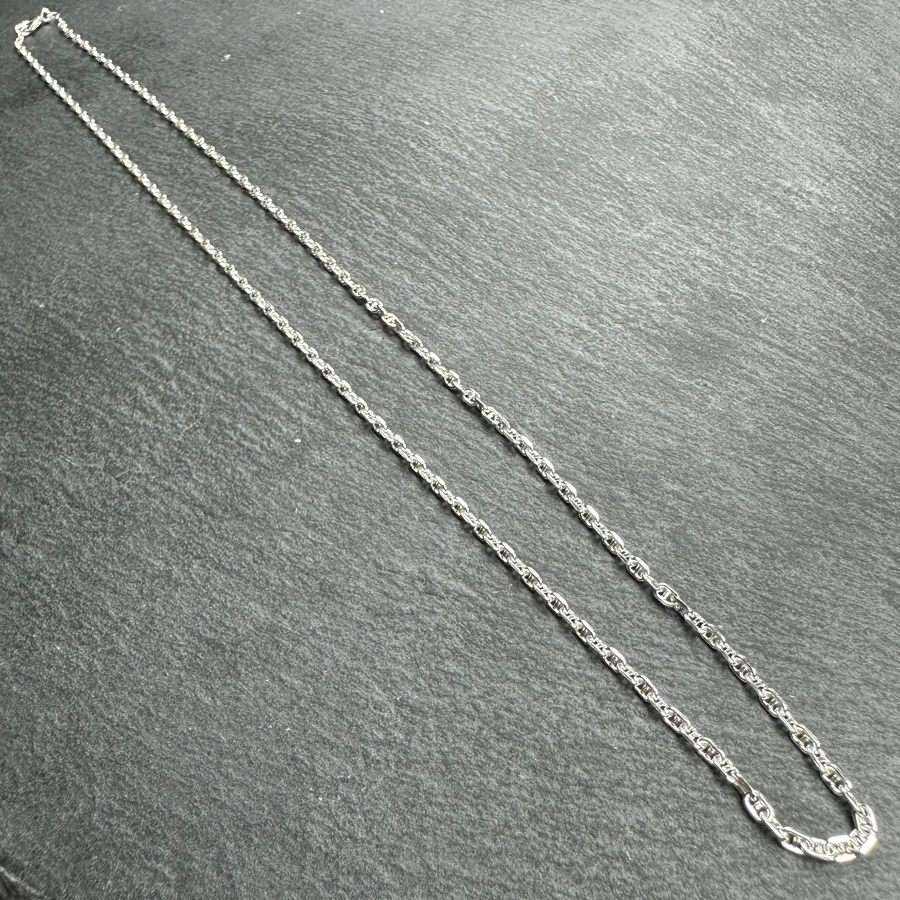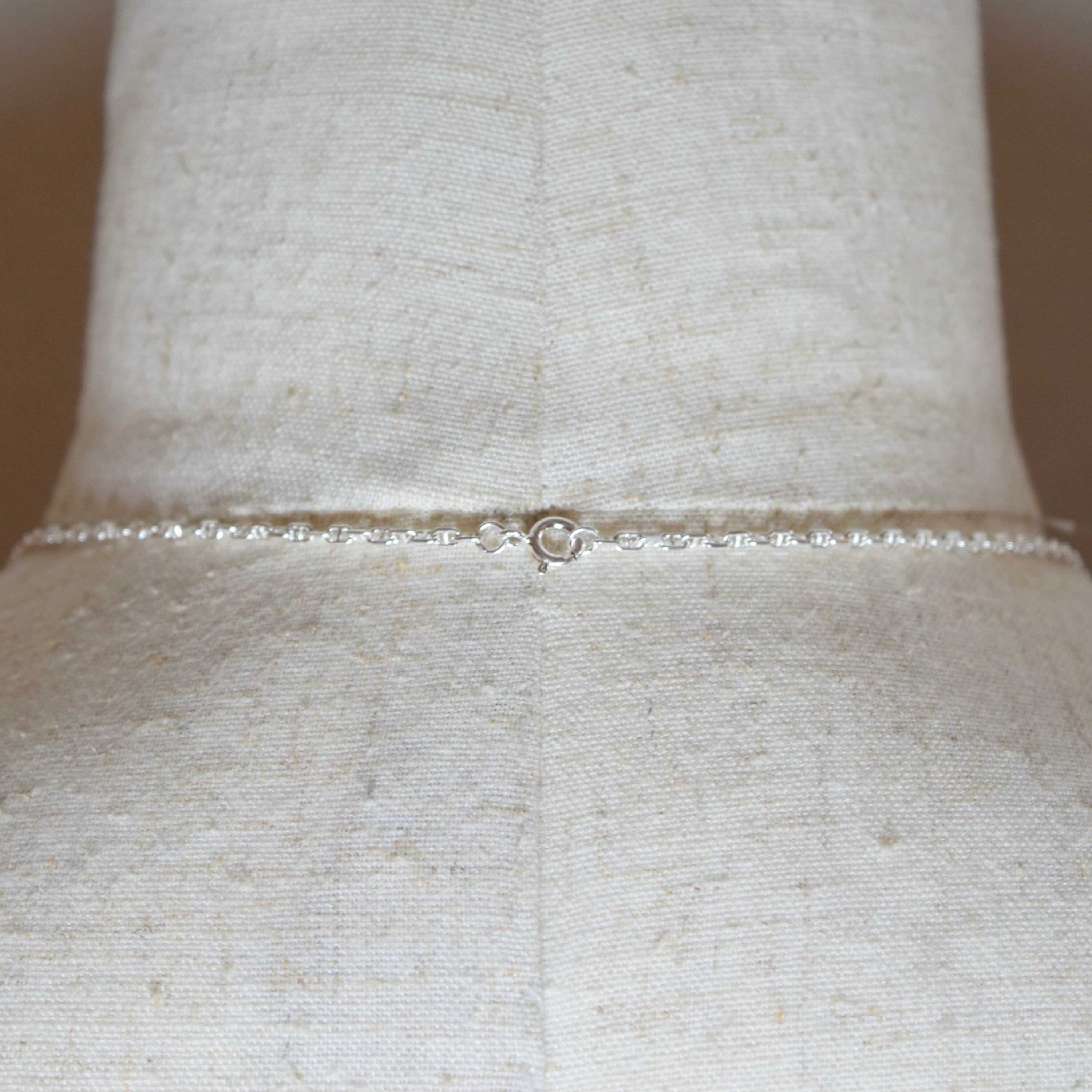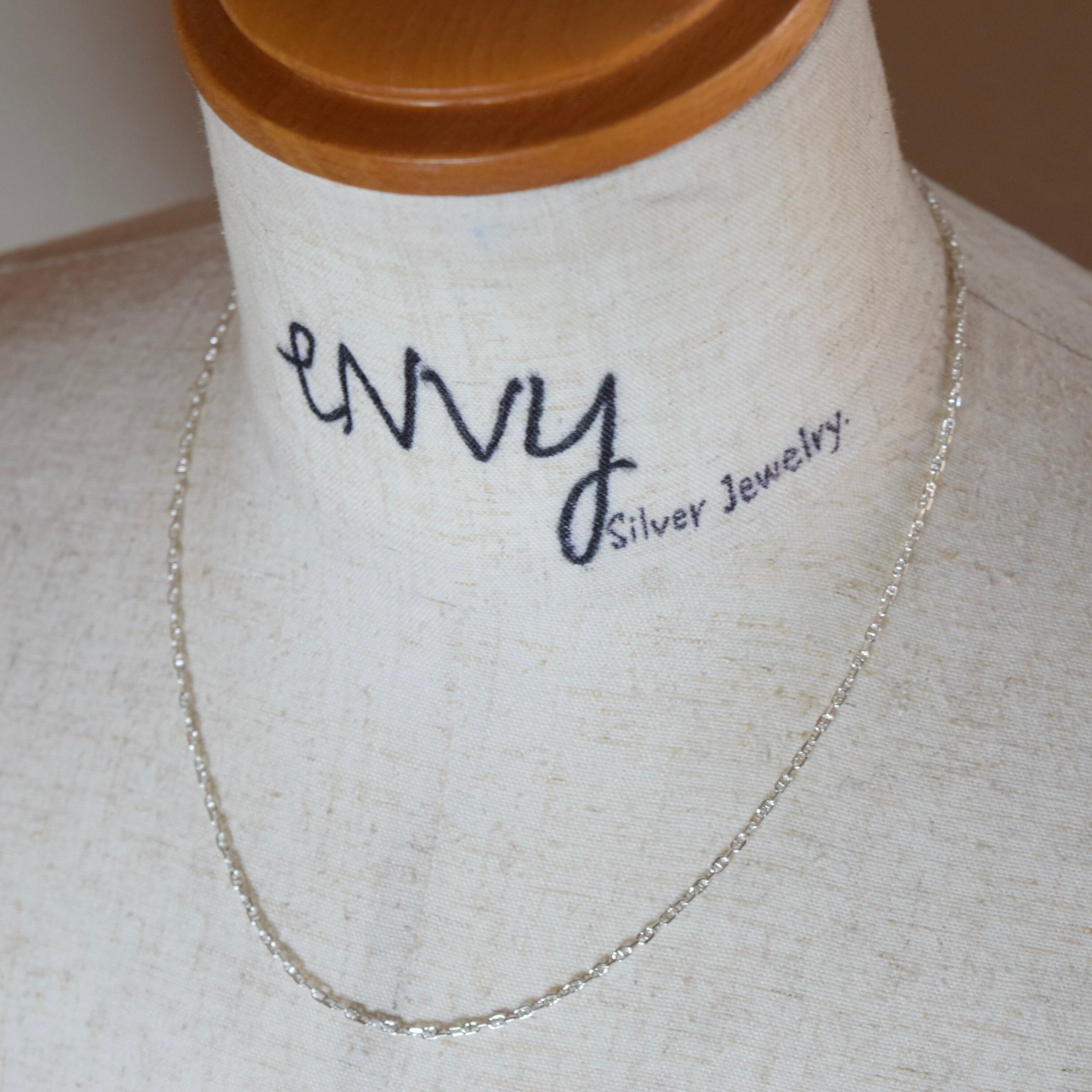 細やかなカットと繊細なリンクが織りなす、静かに輝く上品なシルバーチェーンで、シンプルながらも、どんなスタイルにも凛と映える存在感が魅力です。