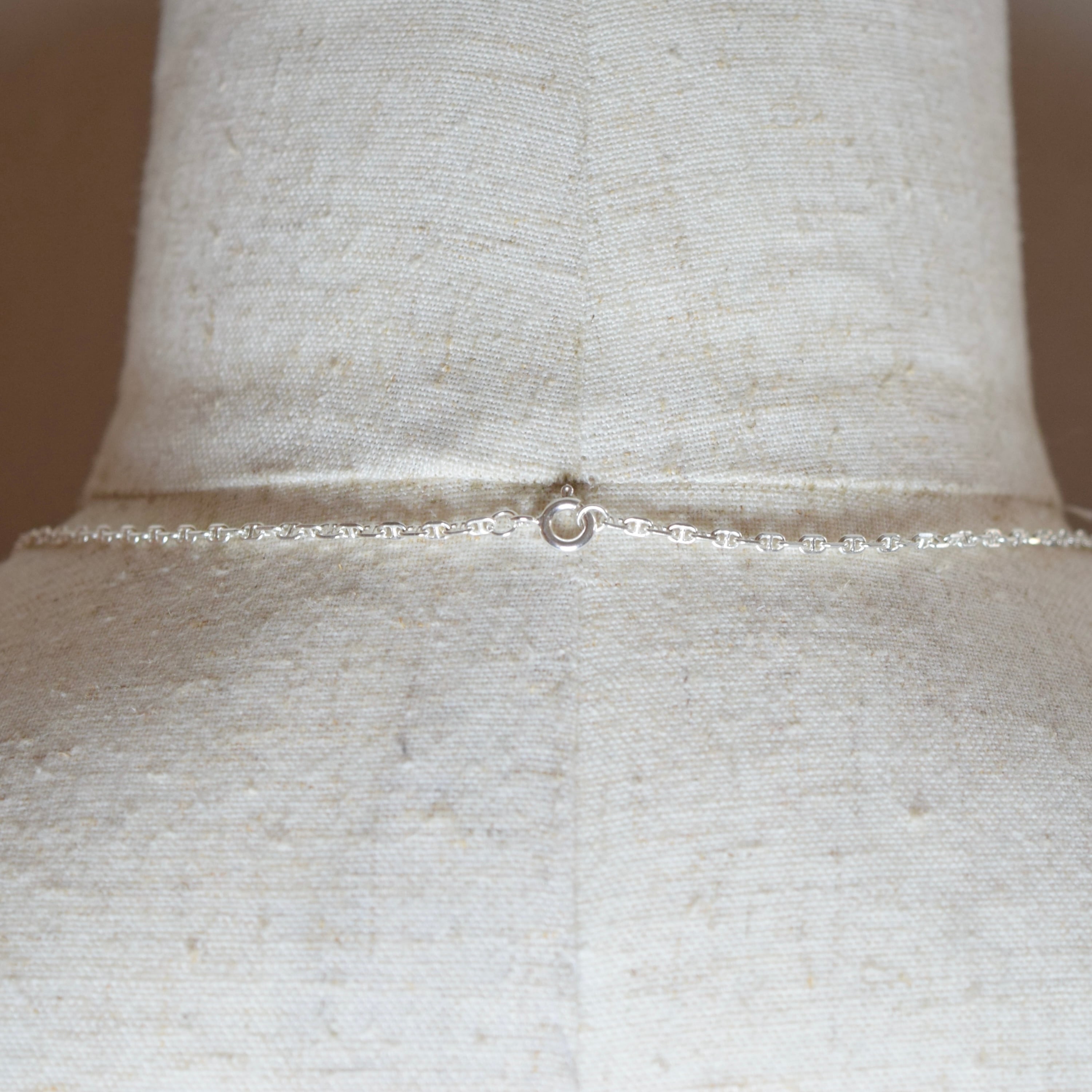 細やかなカットと繊細なリンクが織りなす、静かに輝く上品なシルバーチェーンで、シンプルながらも、どんなスタイルにも凛と映える存在感が魅力です。