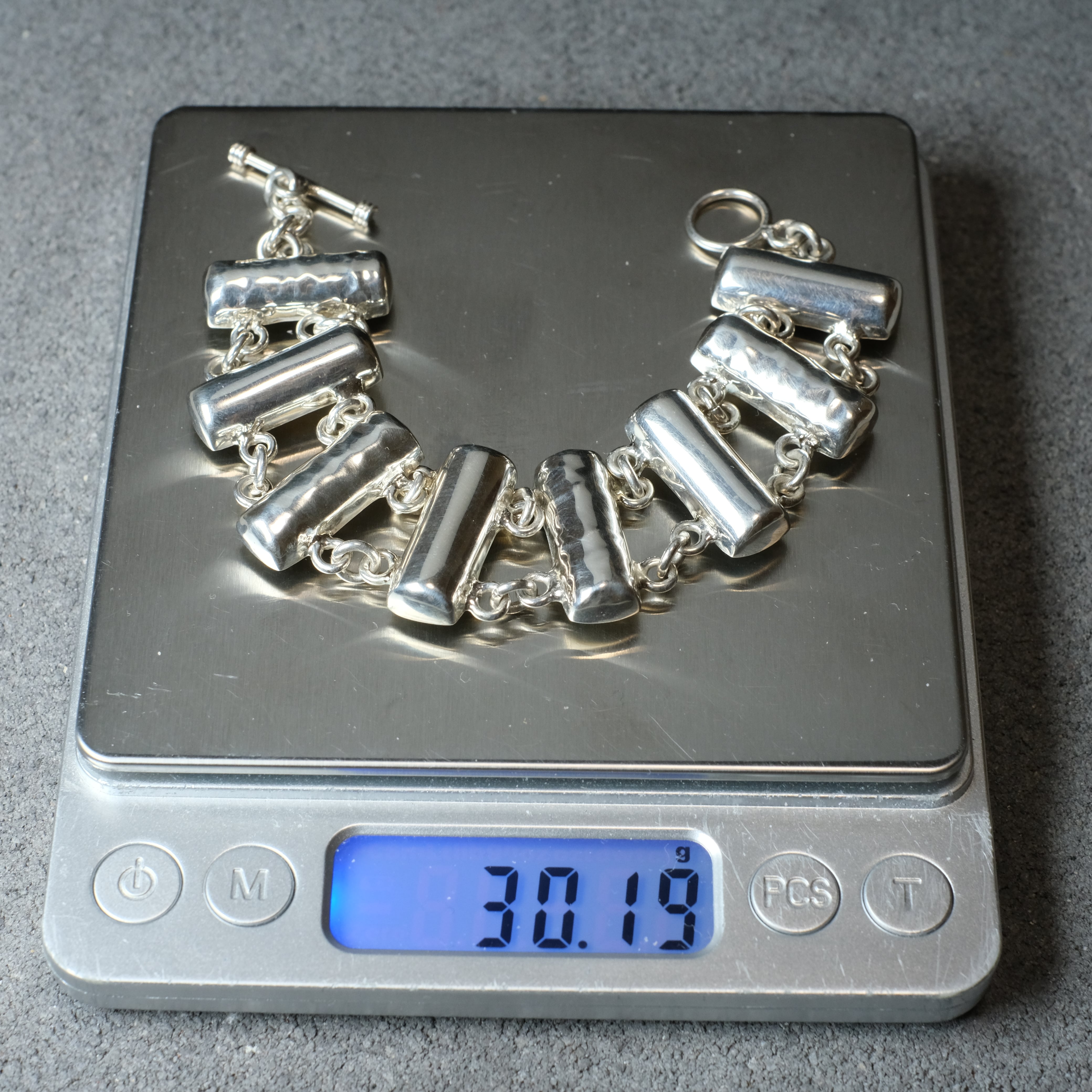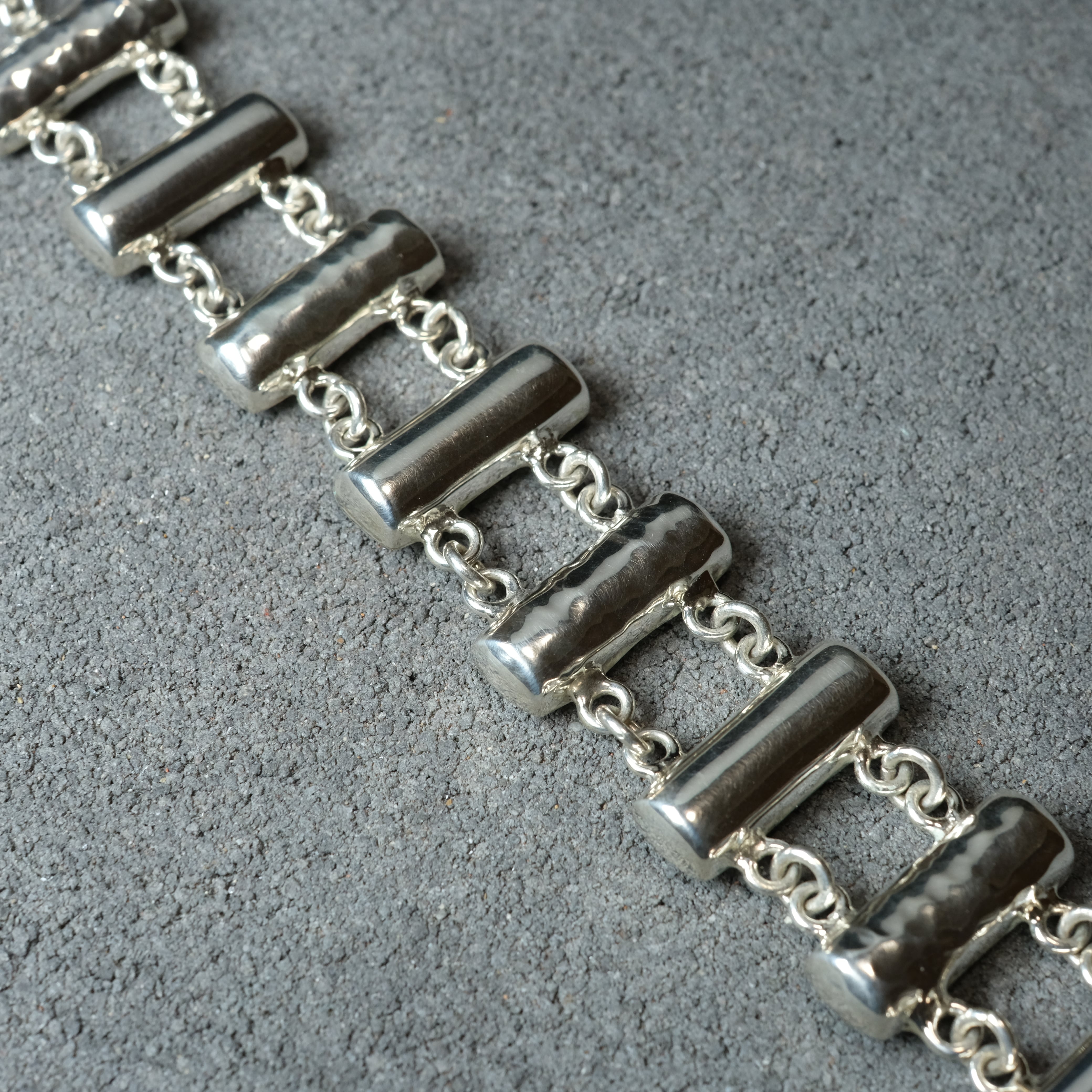 メキシコ タスコ製 TAXCO シルバー925 ワイドダブルチェーンブレスレット/軽研磨仕上げ