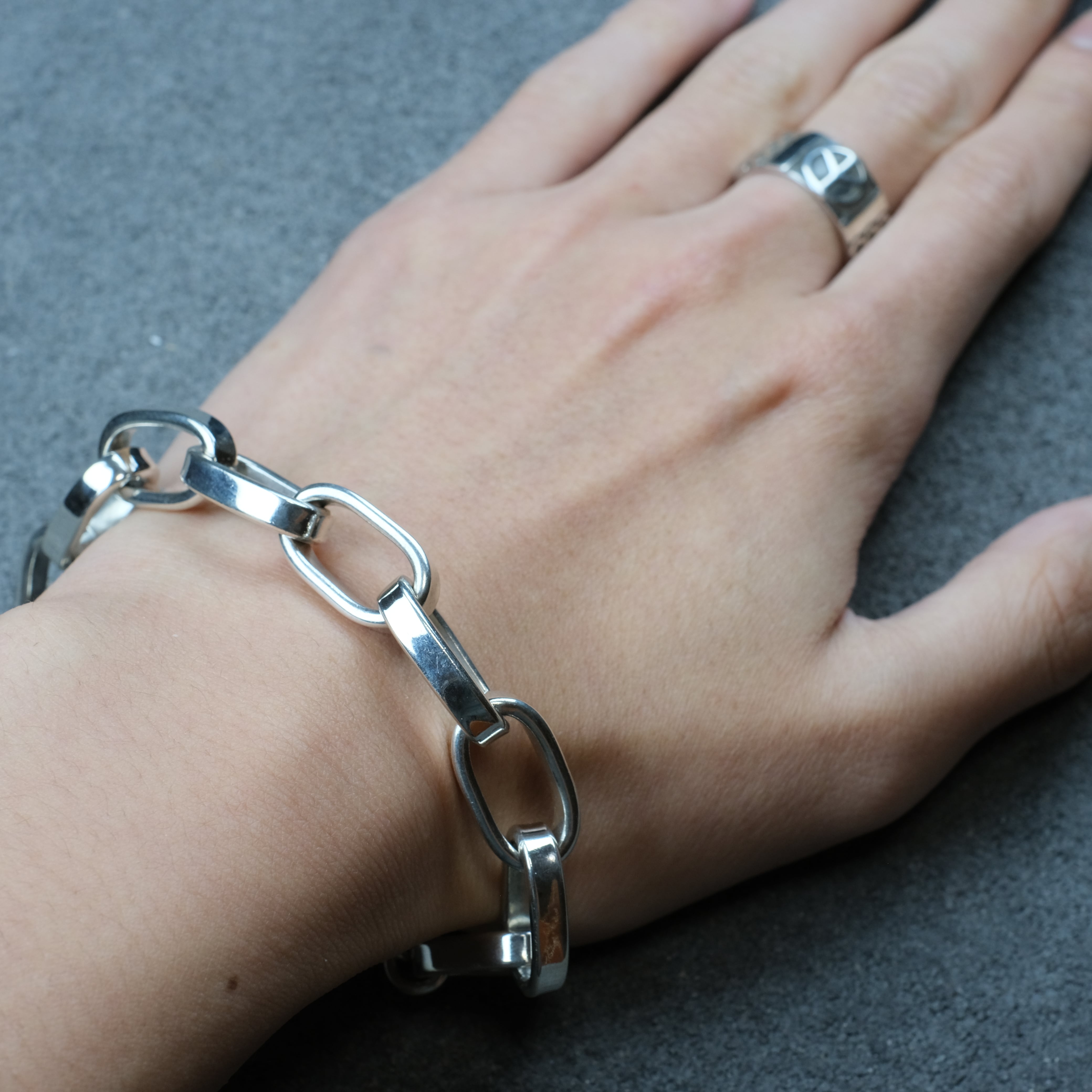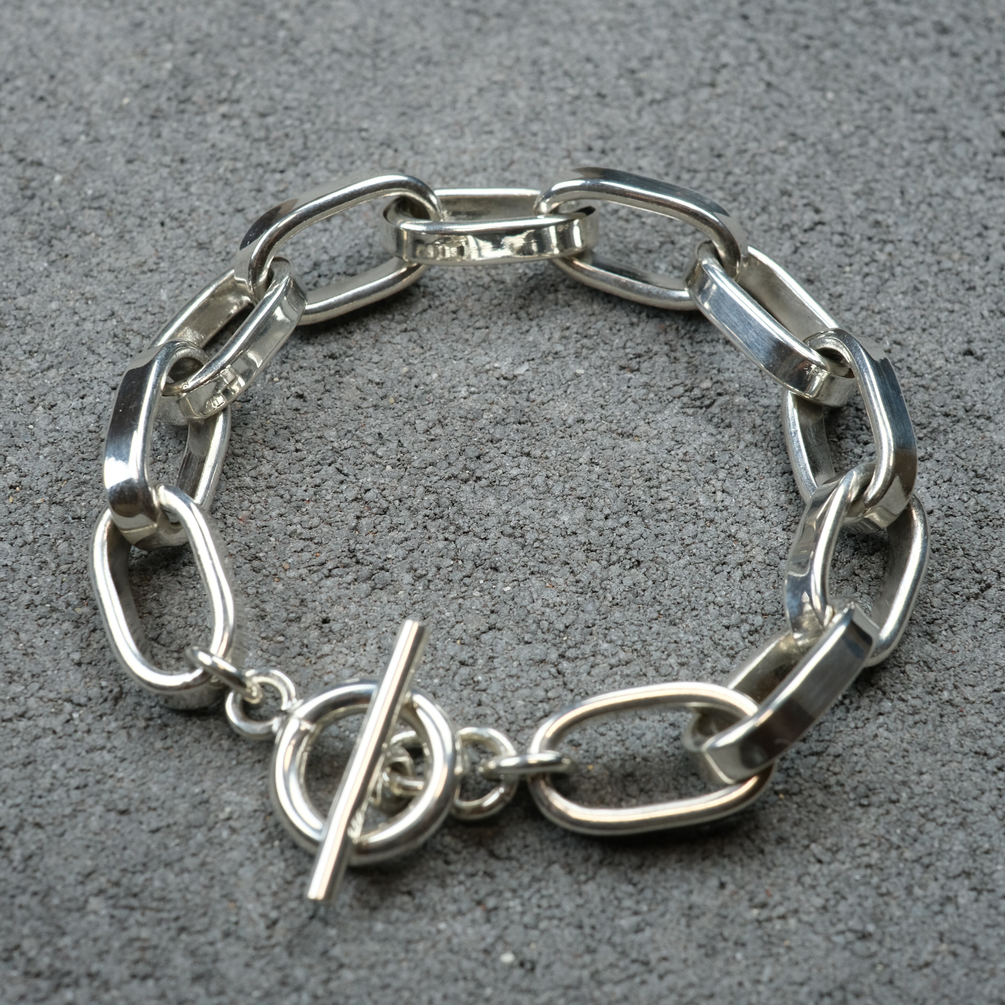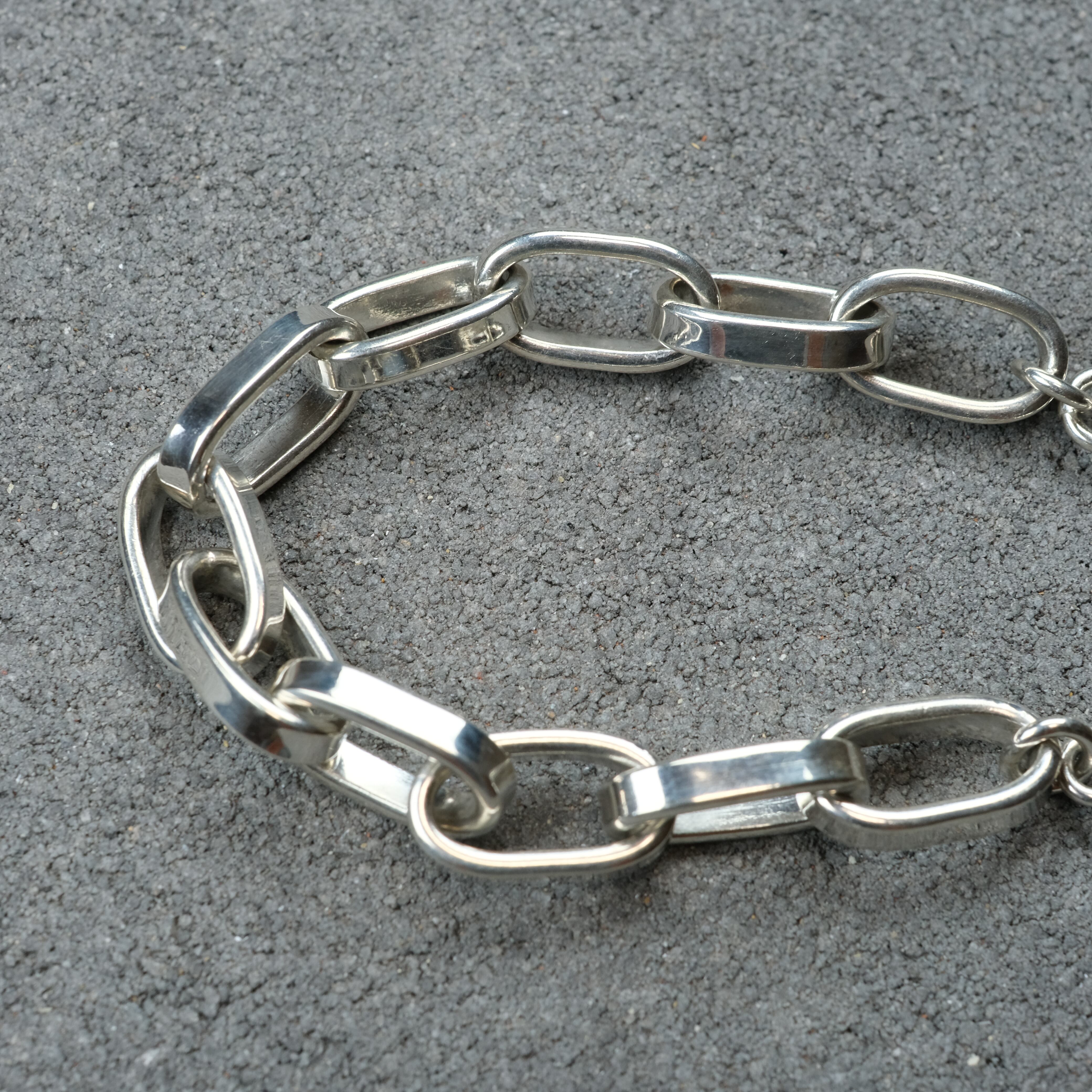 メキシコ タスコ製 TAXCO シルバー925 ヘビーフープチェーンブレスレット/軽研磨仕上げ