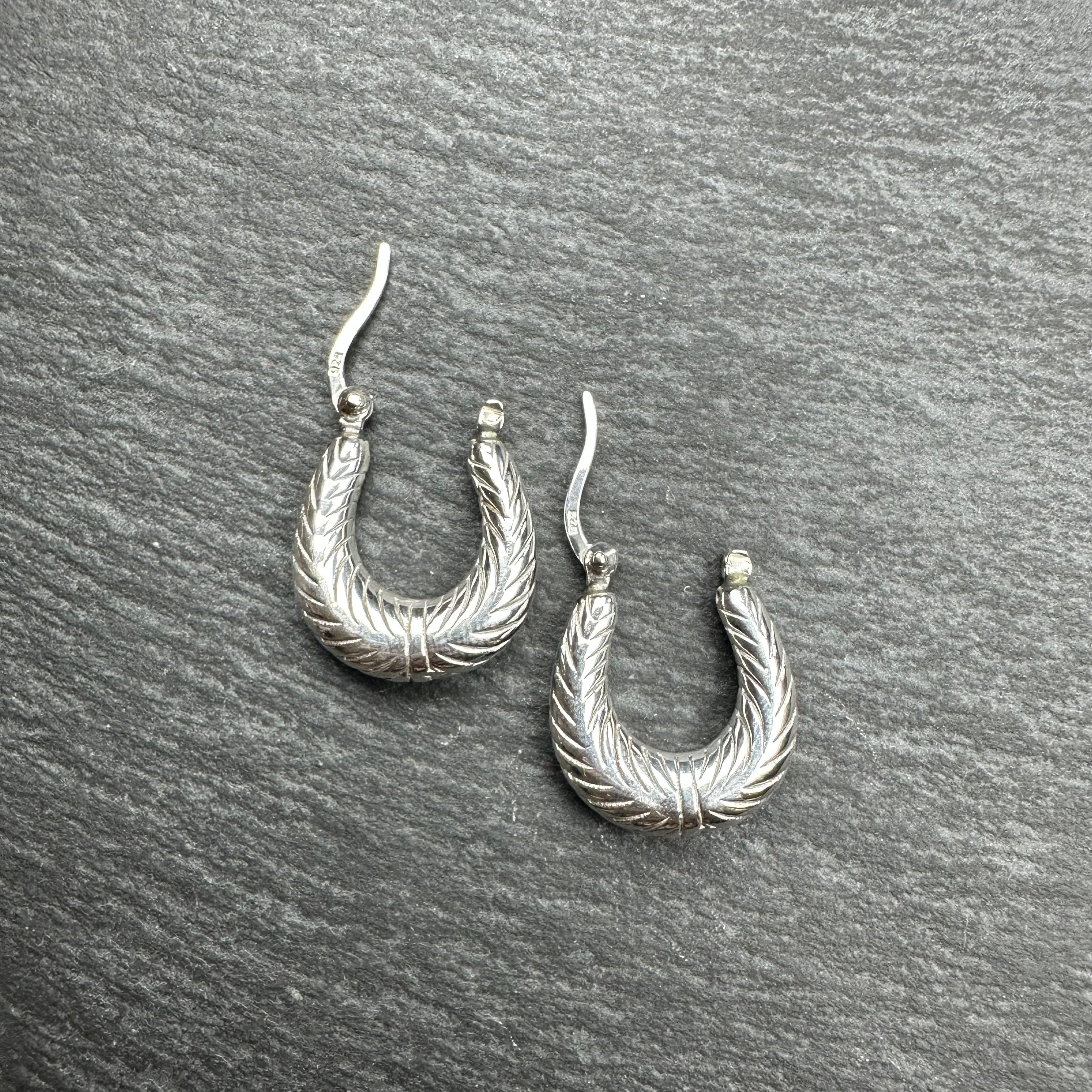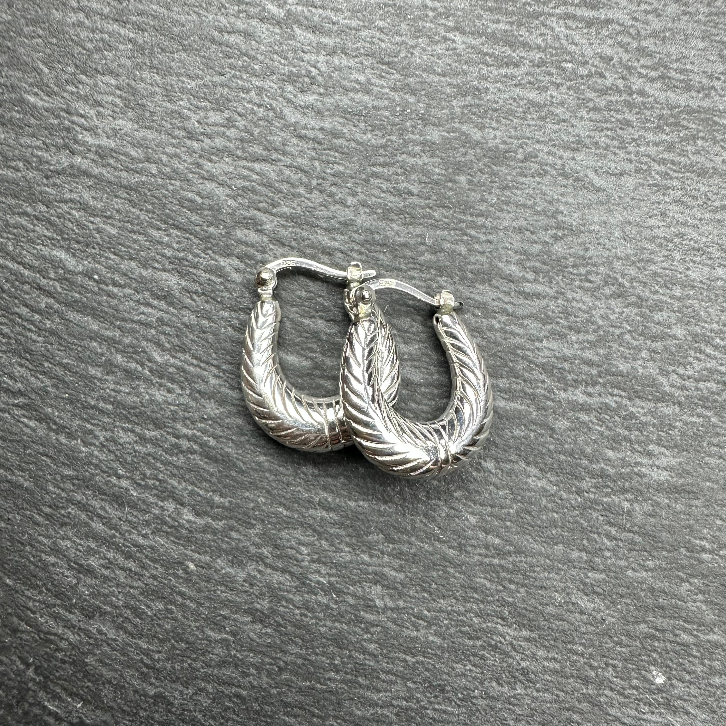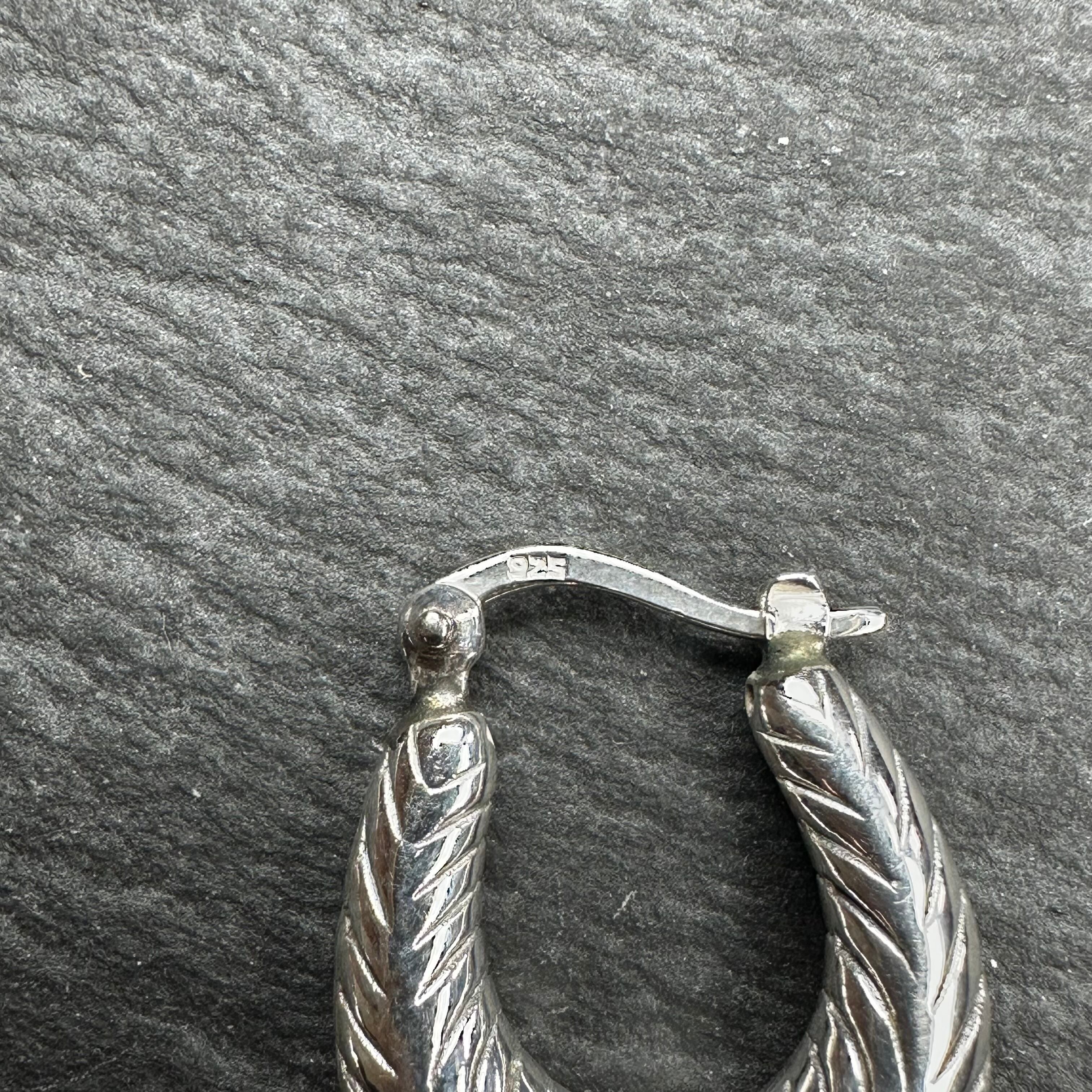 全体的に彫りデザインが入ったシルバー製フープピアスになります。