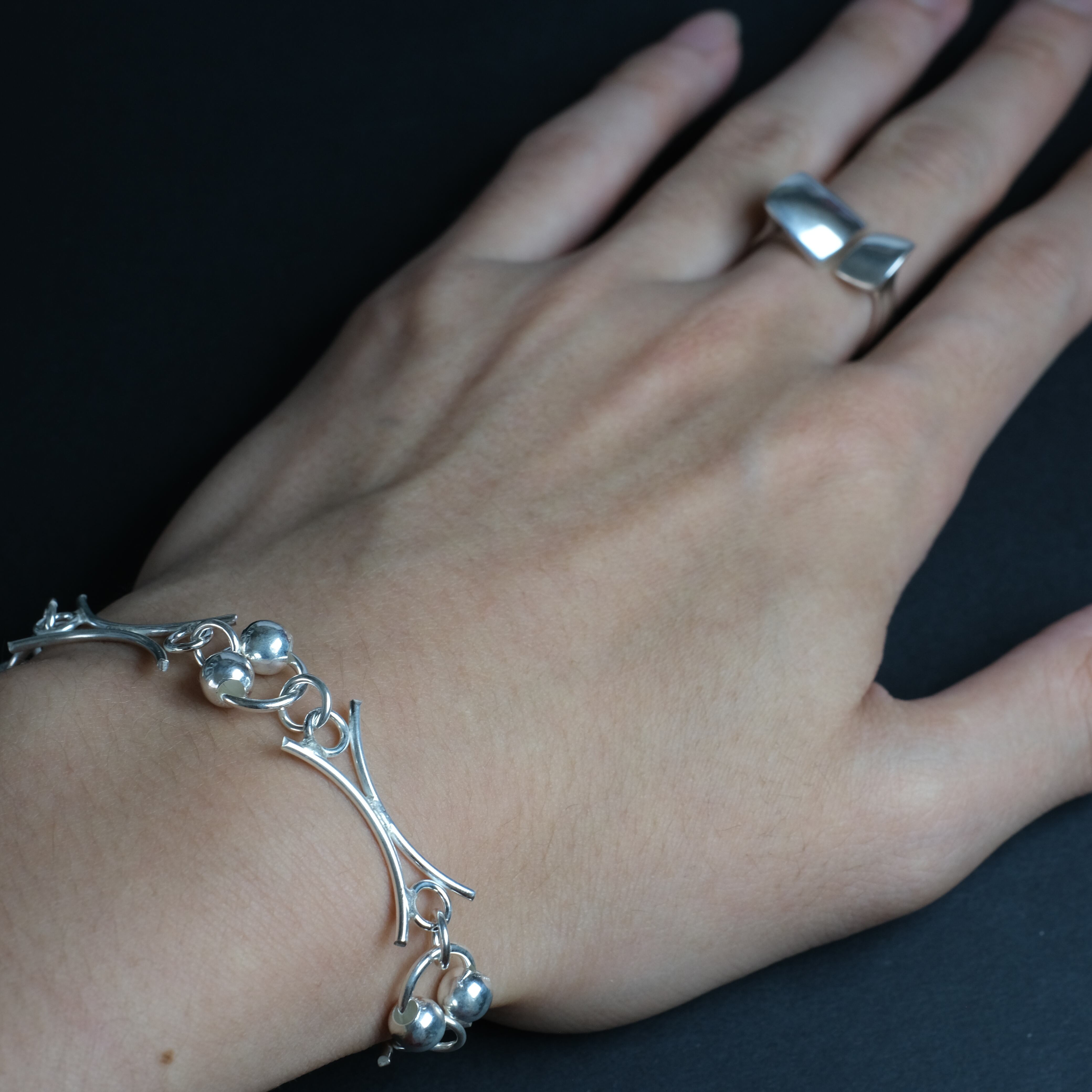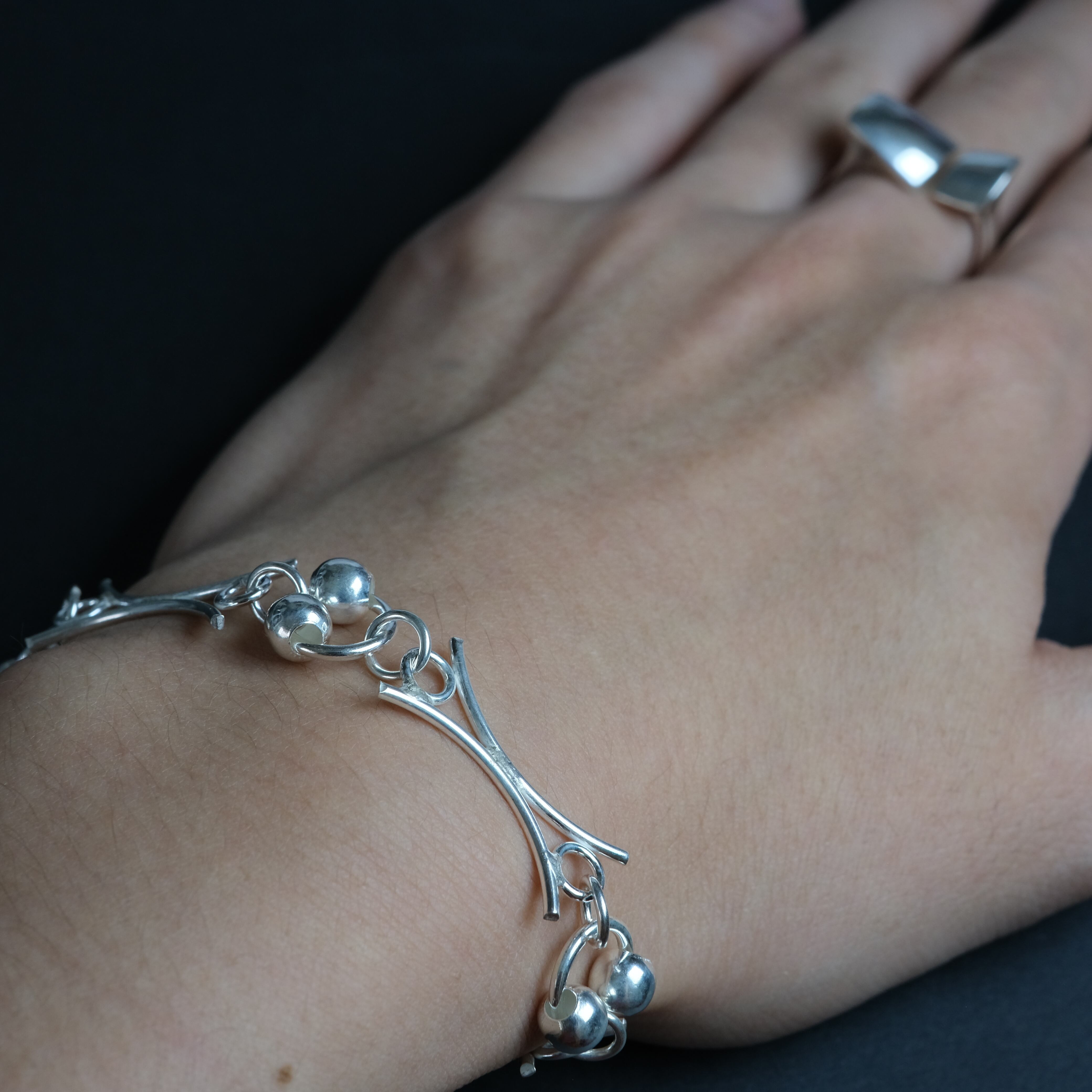 様々な形状のパーツが用いられており、ユニーク性の高いシルバーブレスレットになります。