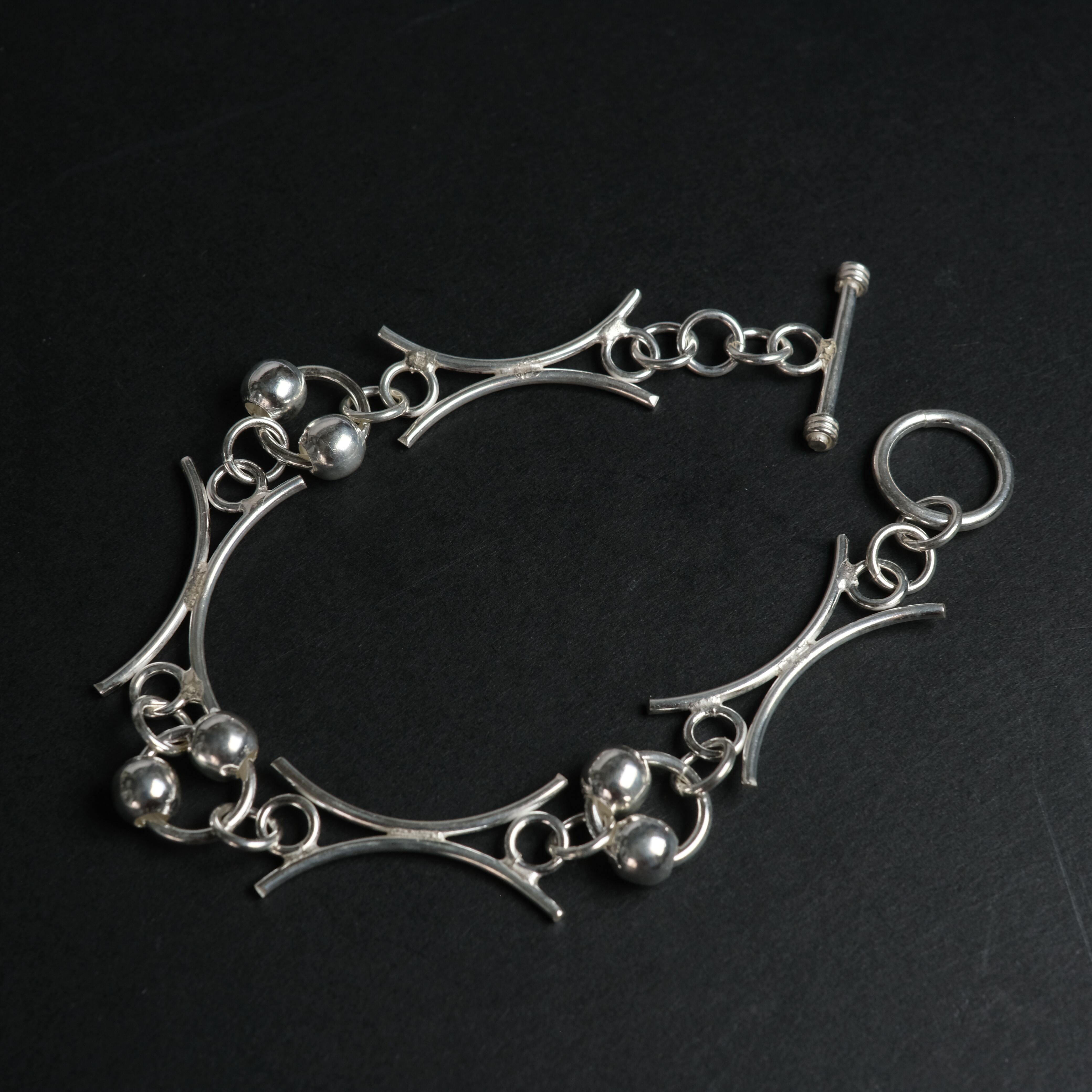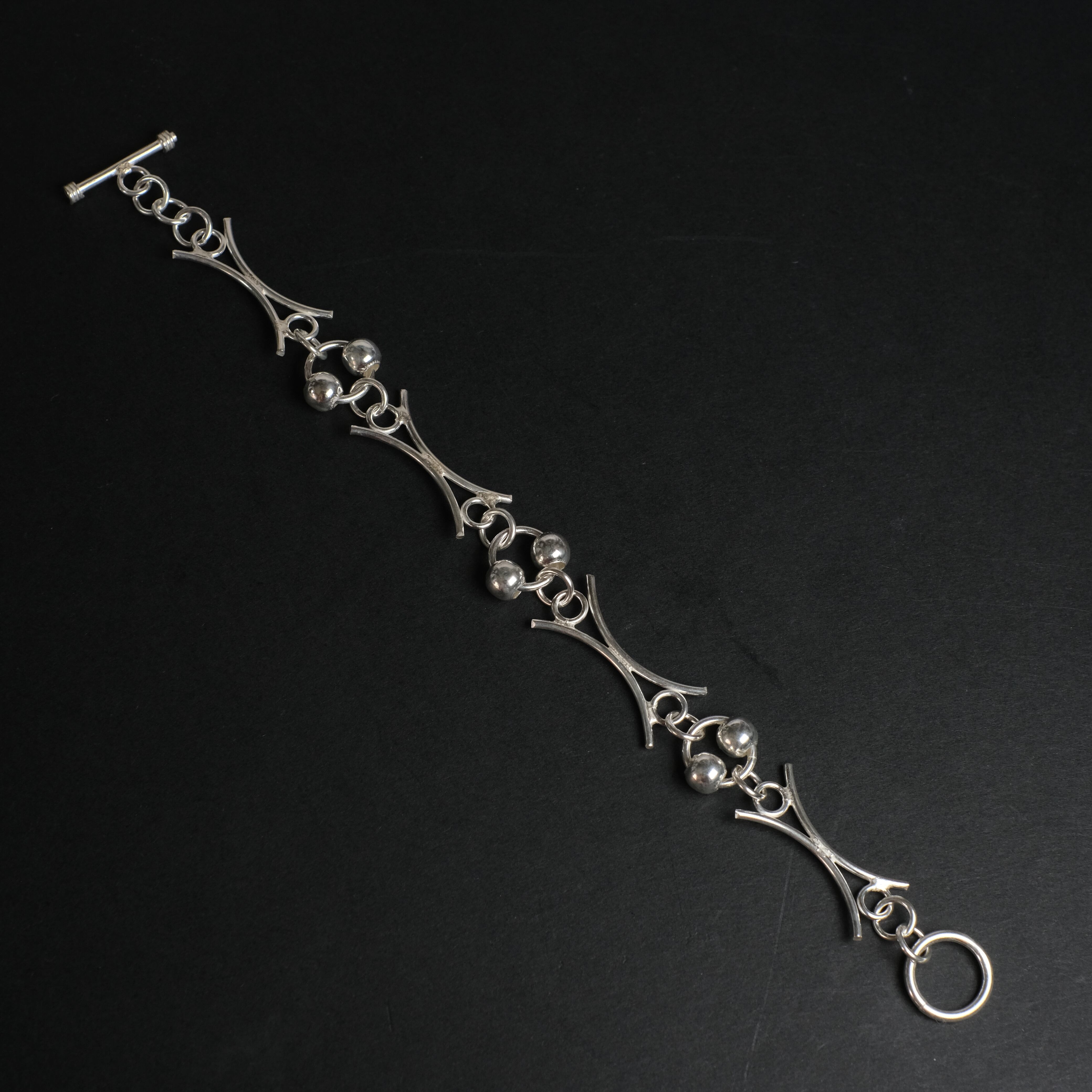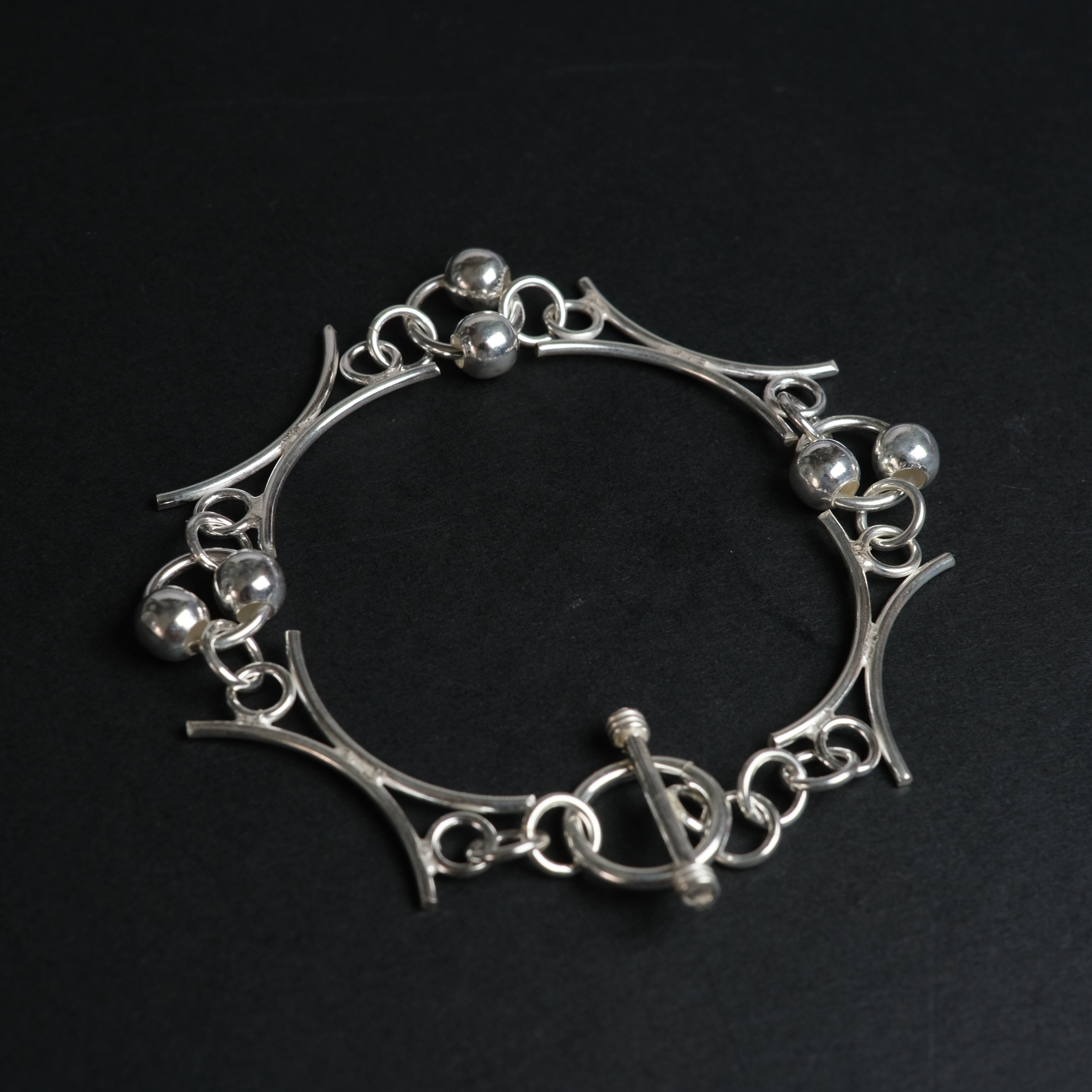 メキシコ タスコ製 Taxco シルバー925 ユニークチェーンブレスレット/軽研磨仕上げ