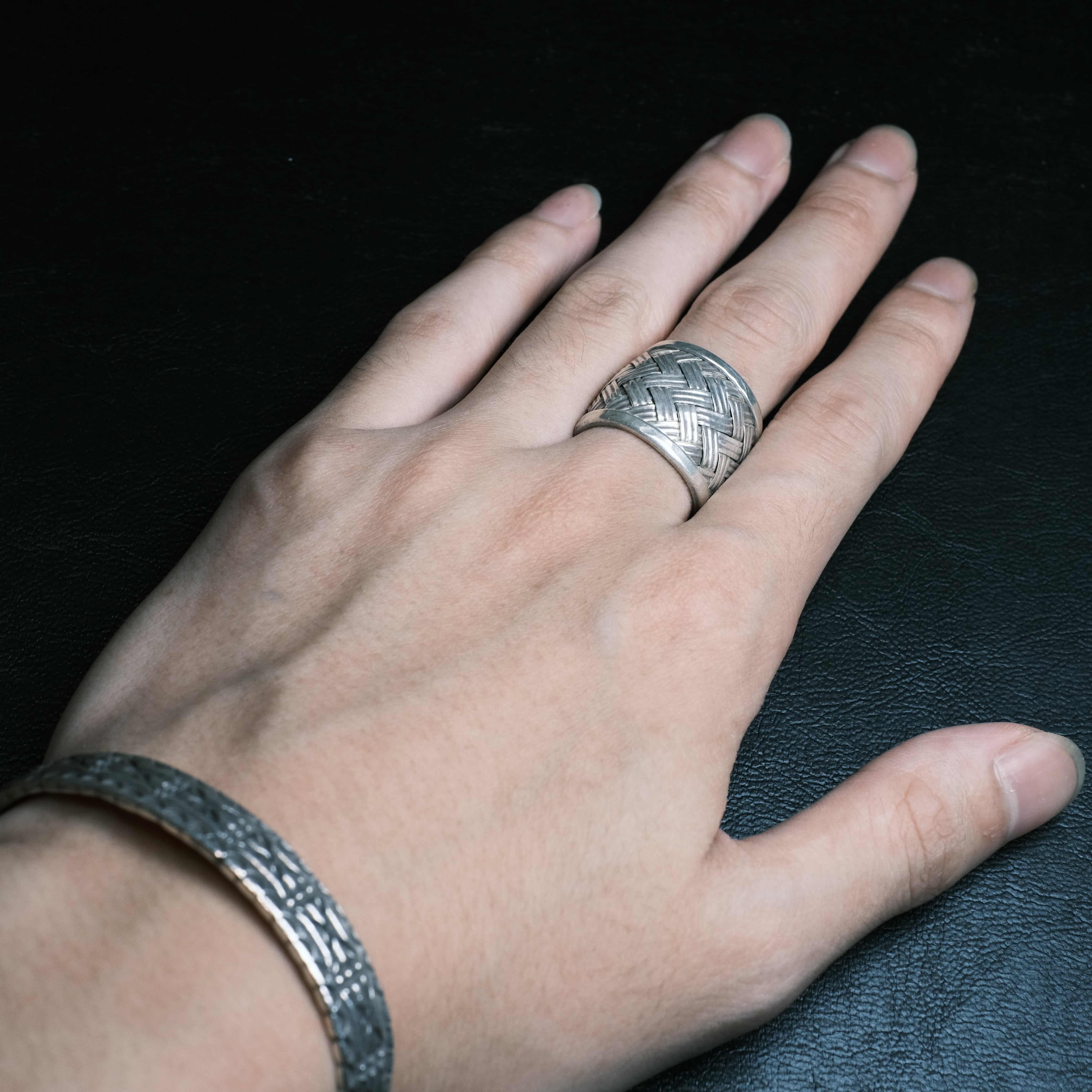 カレンシルバー シルバー950 編み込み甲丸リング/軽研磨仕上げ