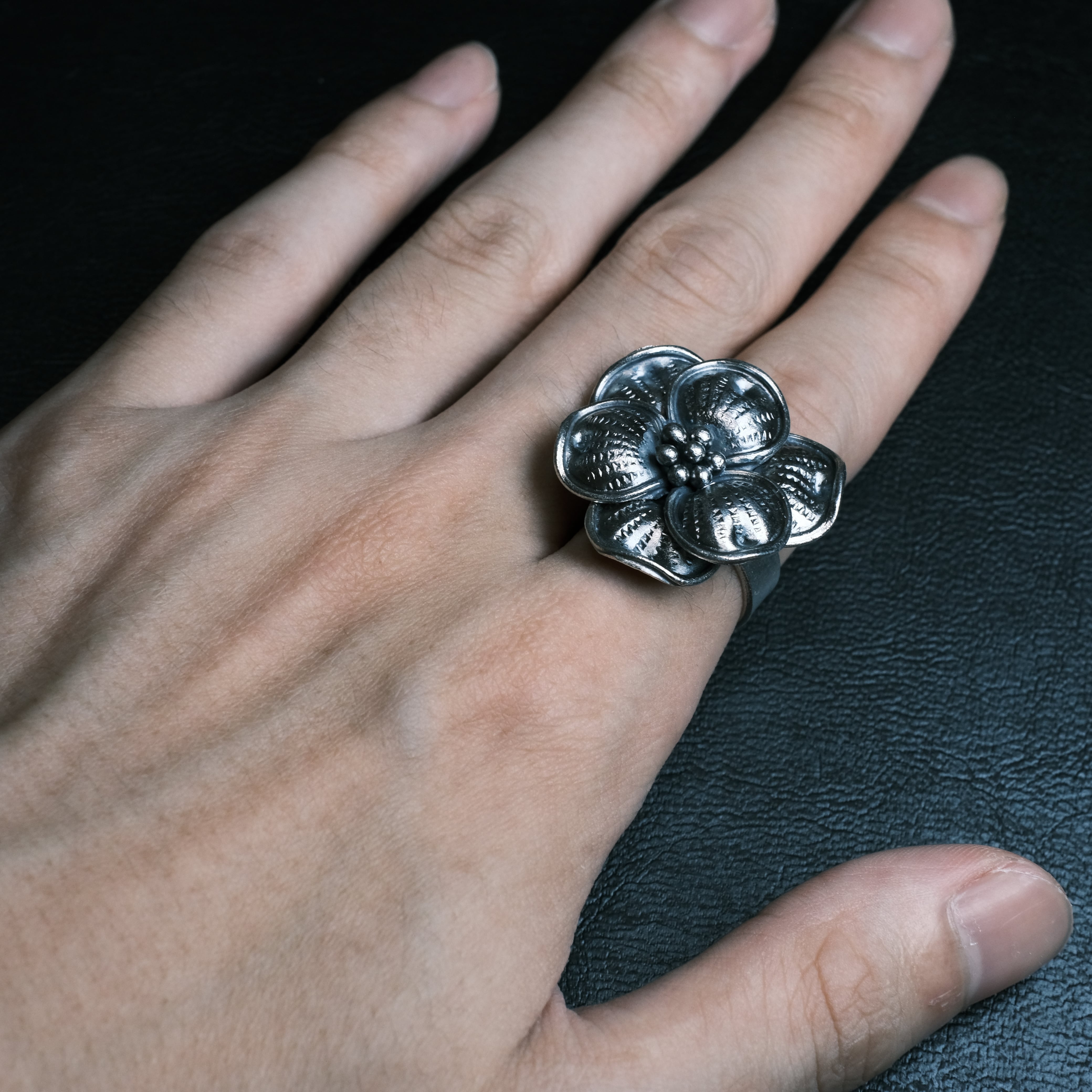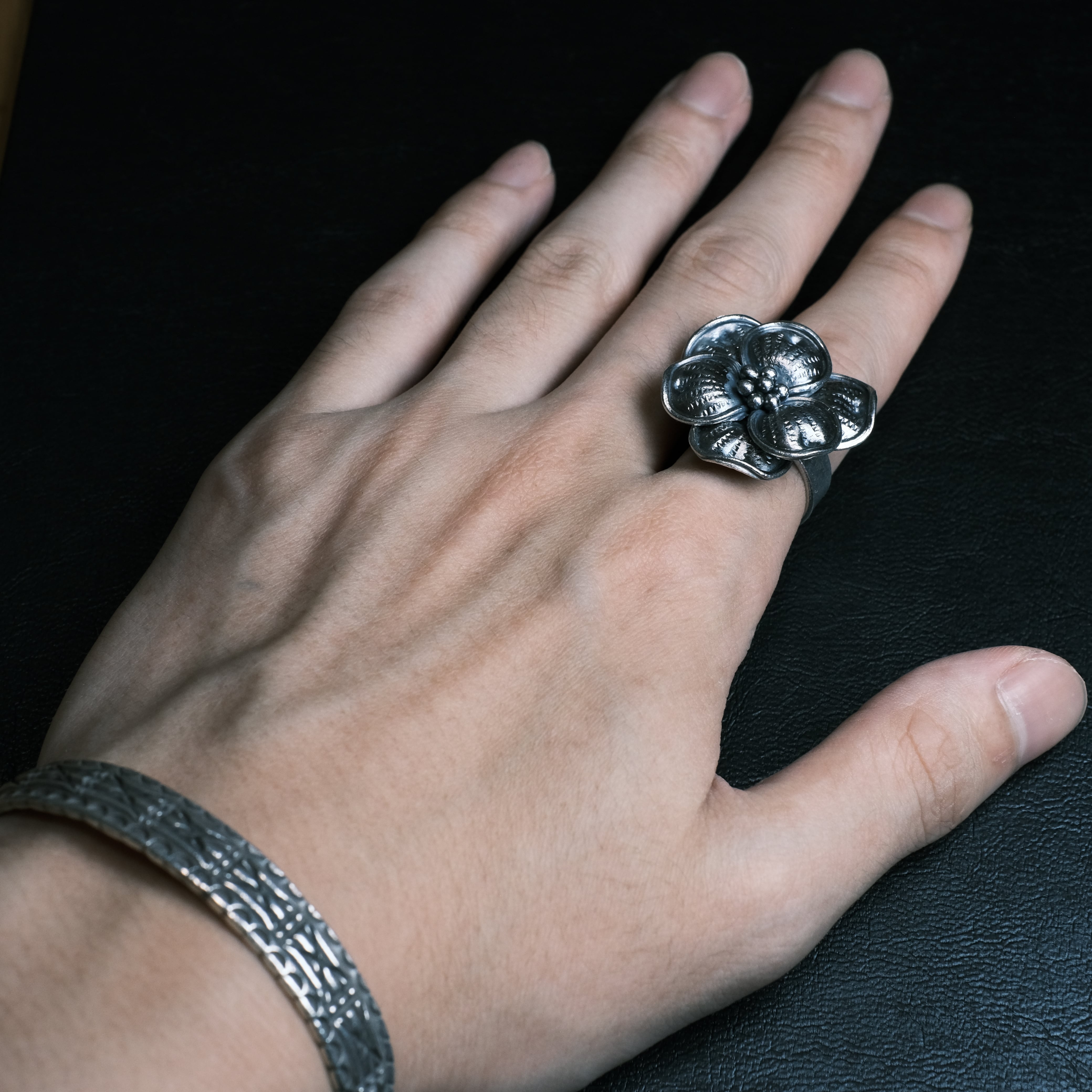 カレンシルバー シルバー950 燻しワイドフラワーリング