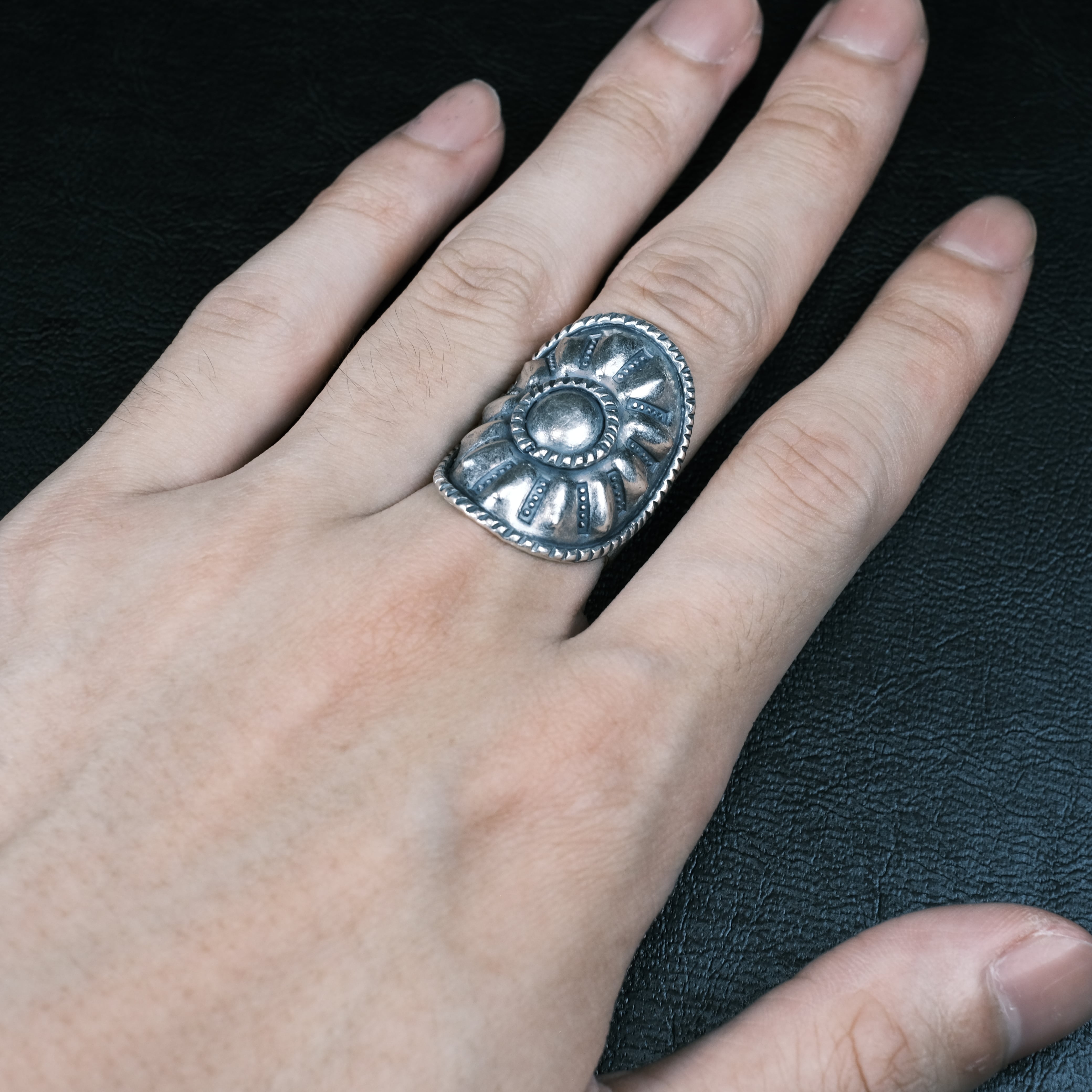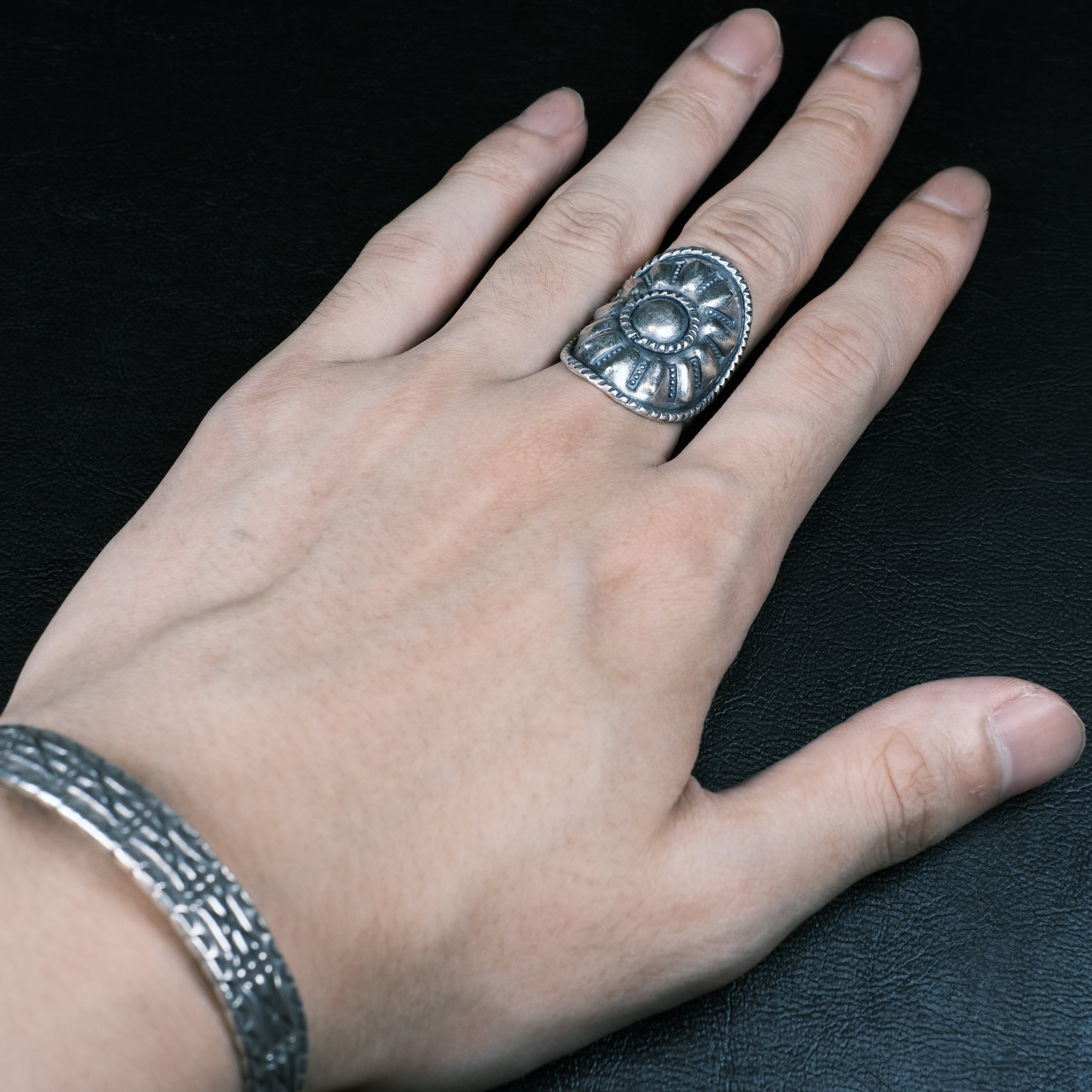 カレンシルバー シルバー950 ワイドプレートリング/表面燻し仕上げ
