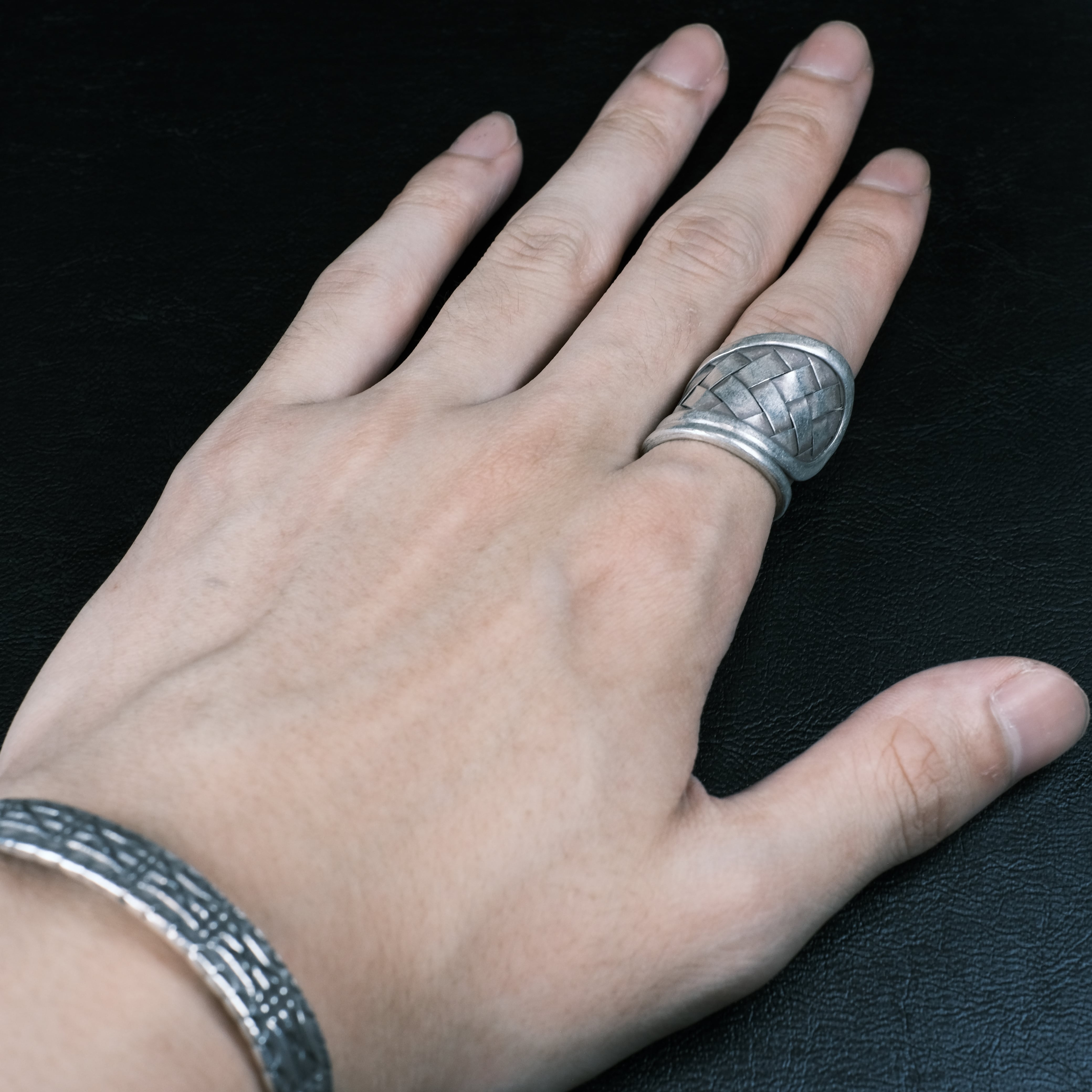 カレンシルバー シルバー950 編み込みアシンメトリーリング/軽研磨仕上げ