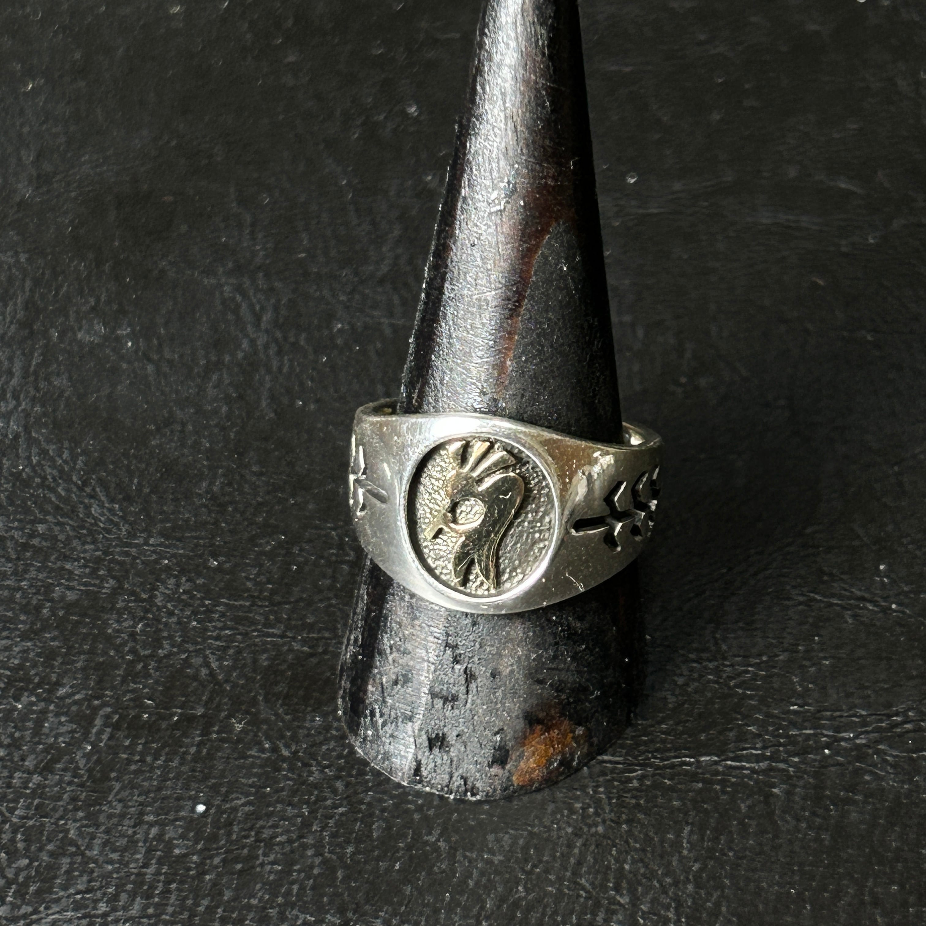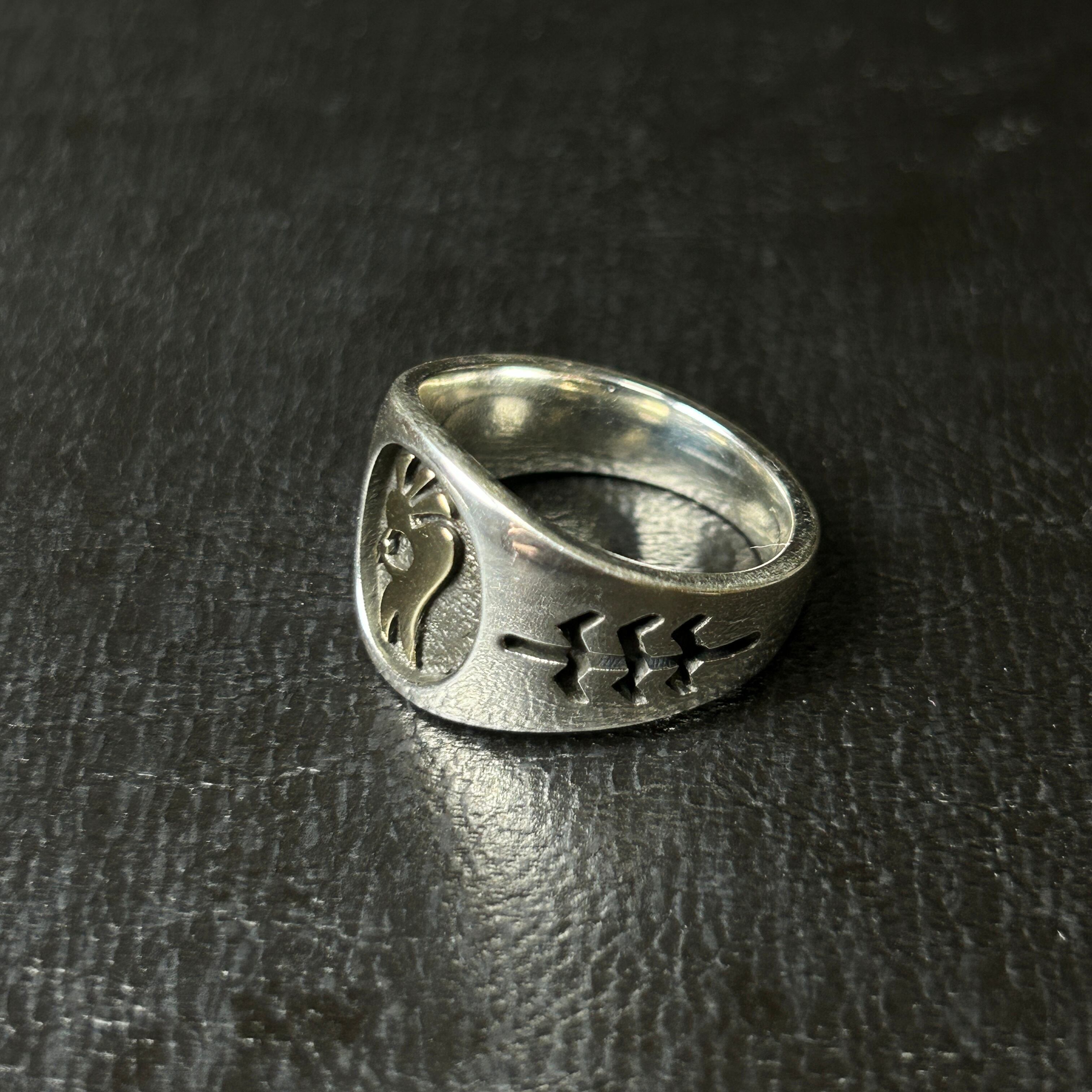 ココペリ部分はゴールド(素材はシルバー925)、そのバックには燻を利かされており、陰影がはっきりとしたシルバーリングになります。