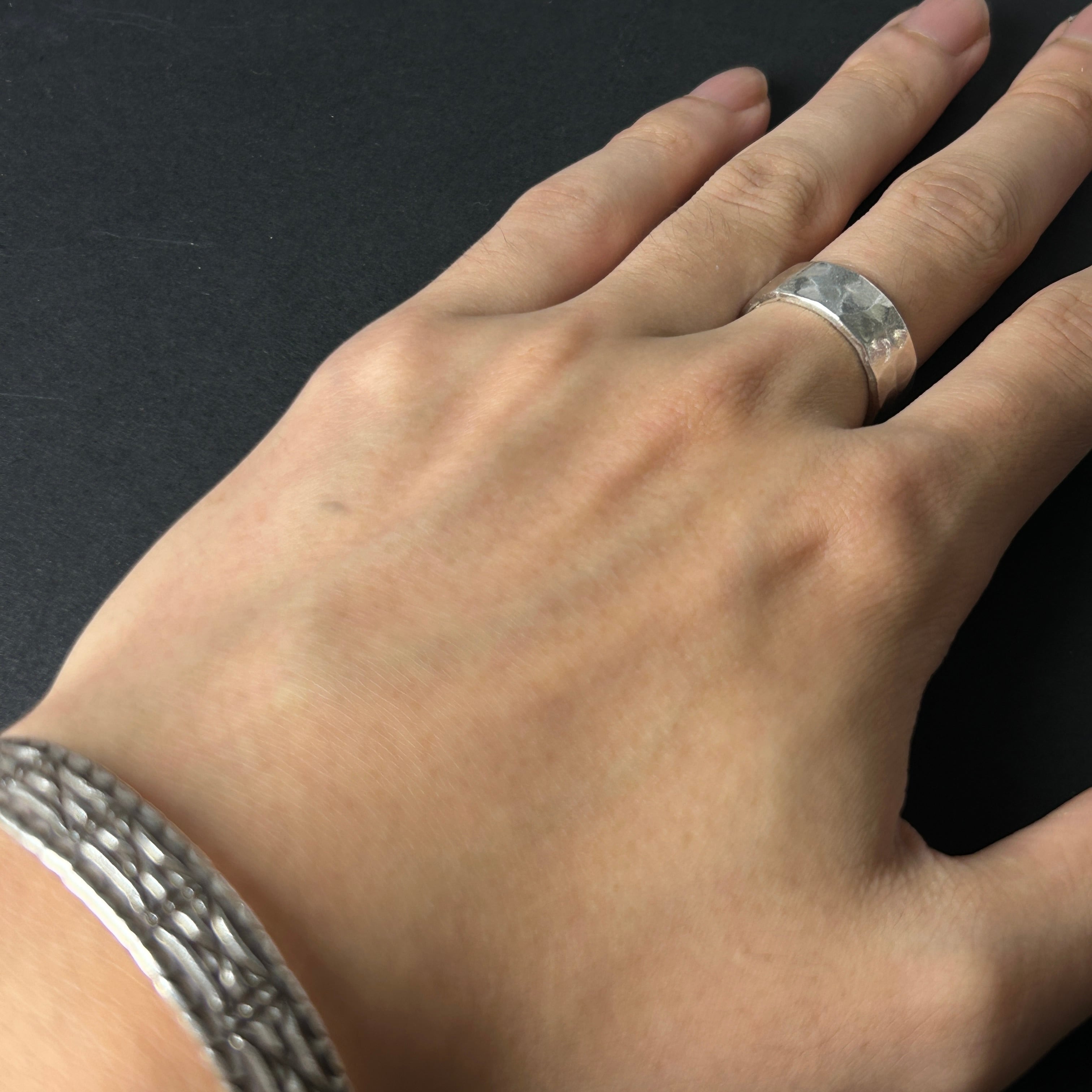 カレンシルバー シルバー950 タタキデザインリング/ワイド/軽研磨仕上げ/18号