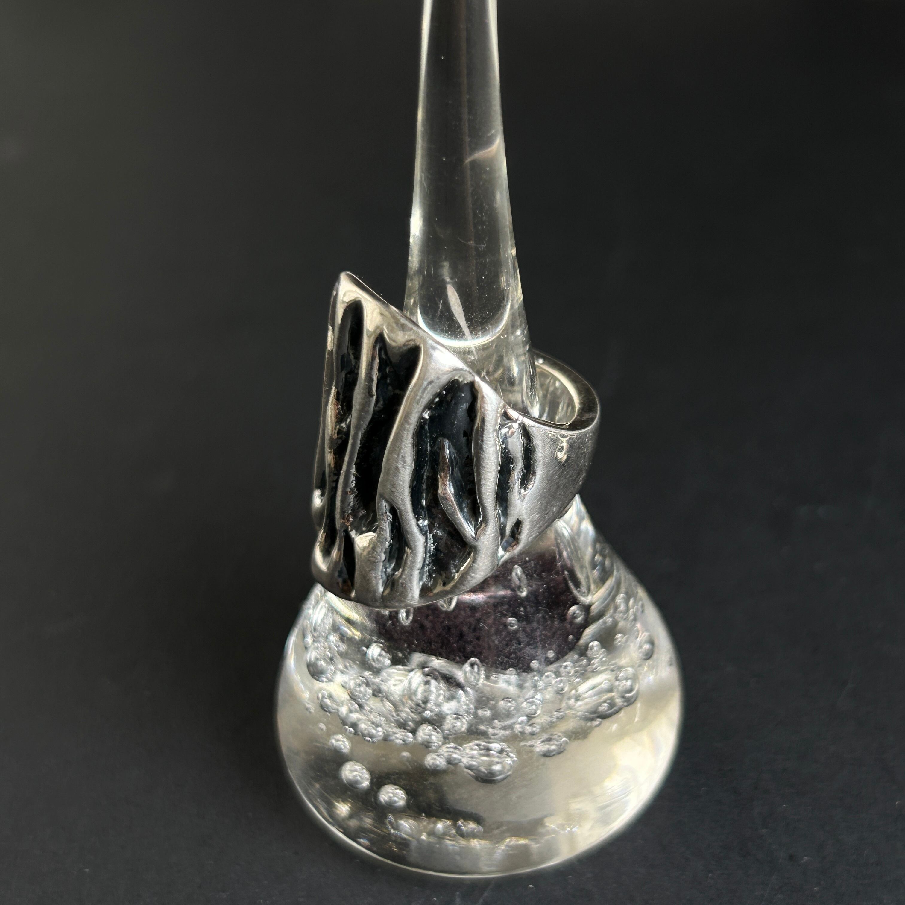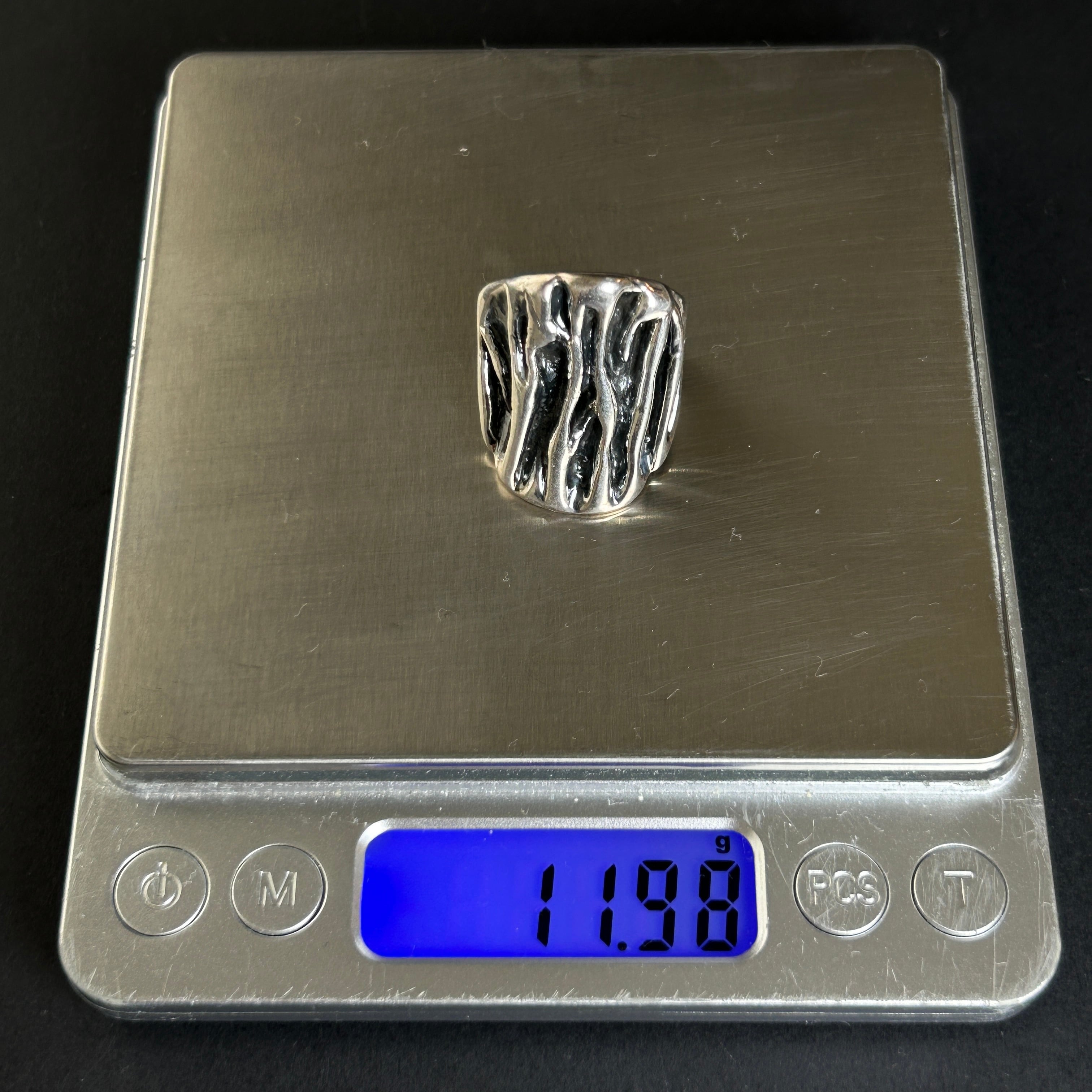 メキシコ タスコ製 Taxco シルバー925 燻彫りワイドリング/軽研磨仕上げ/15号