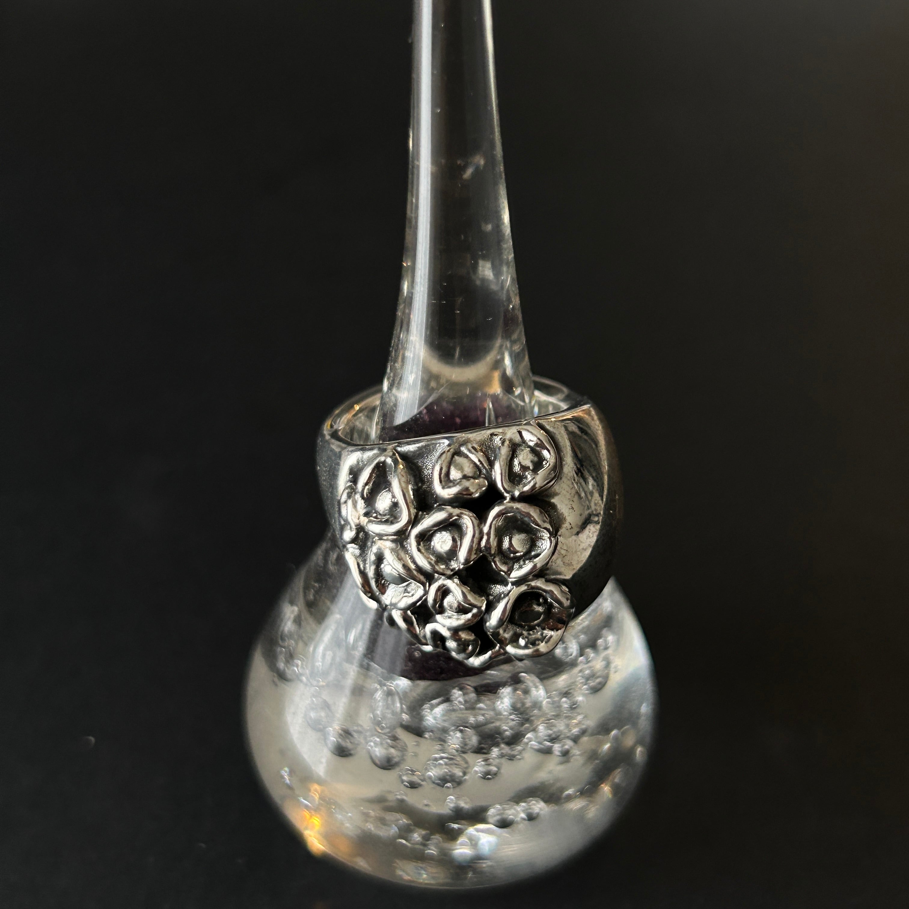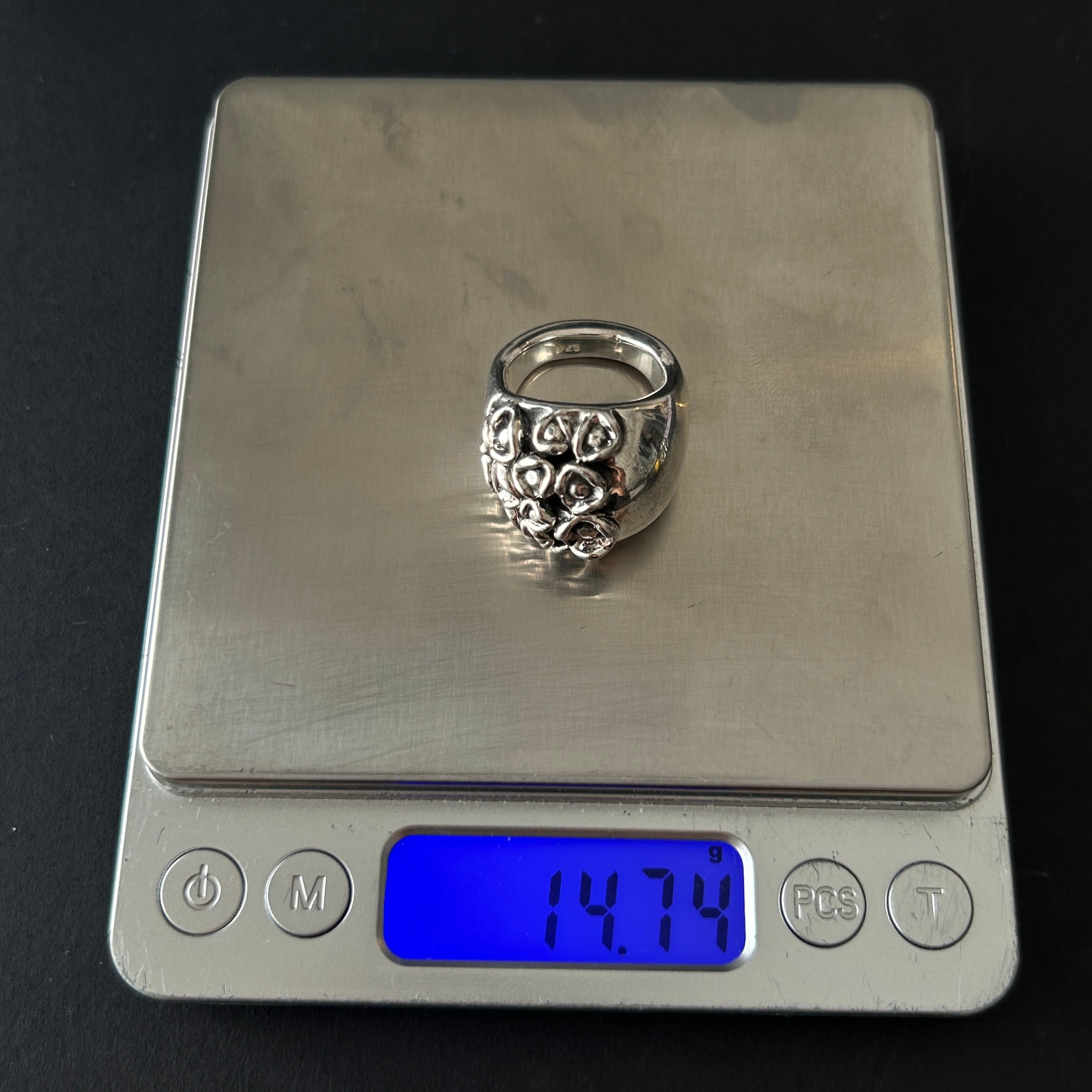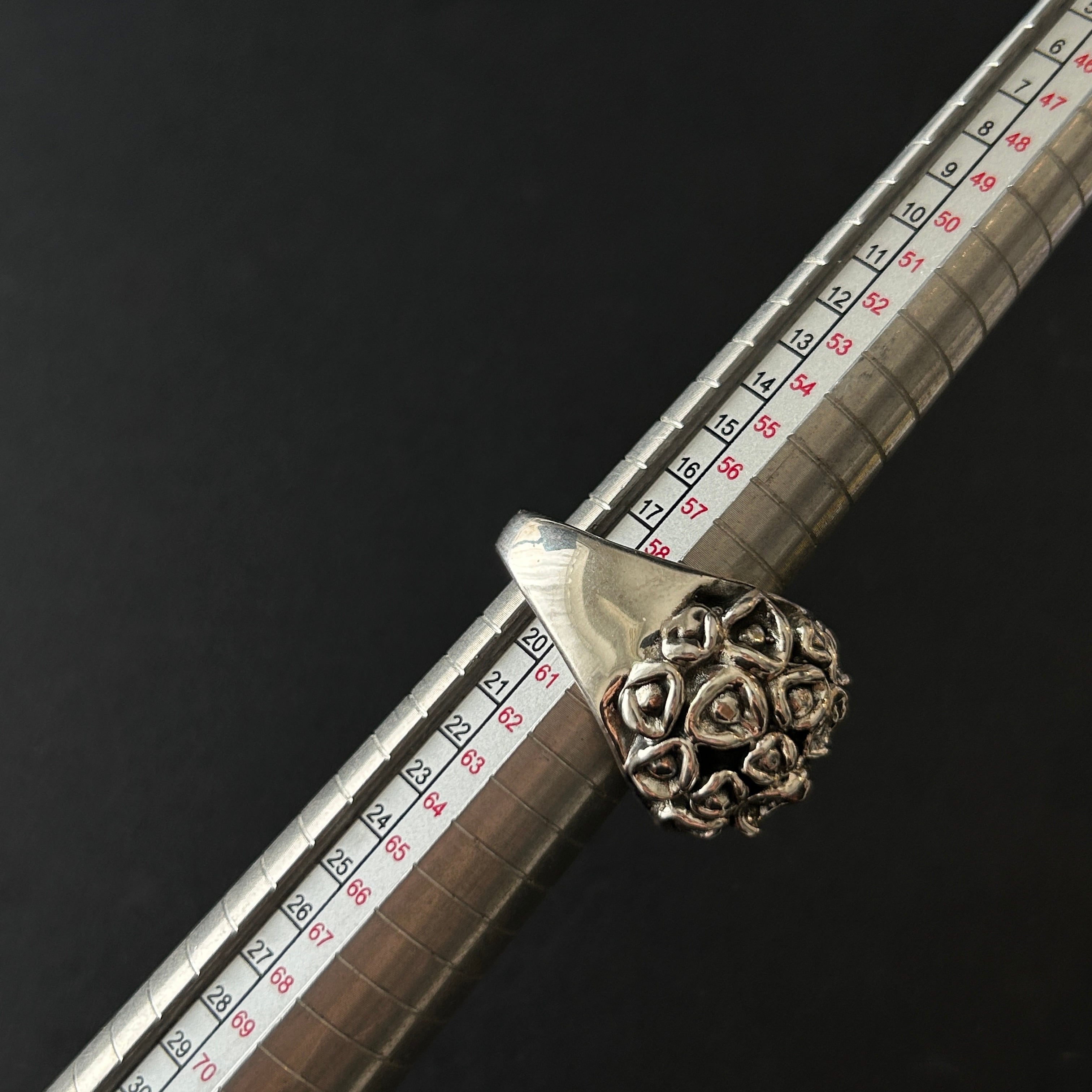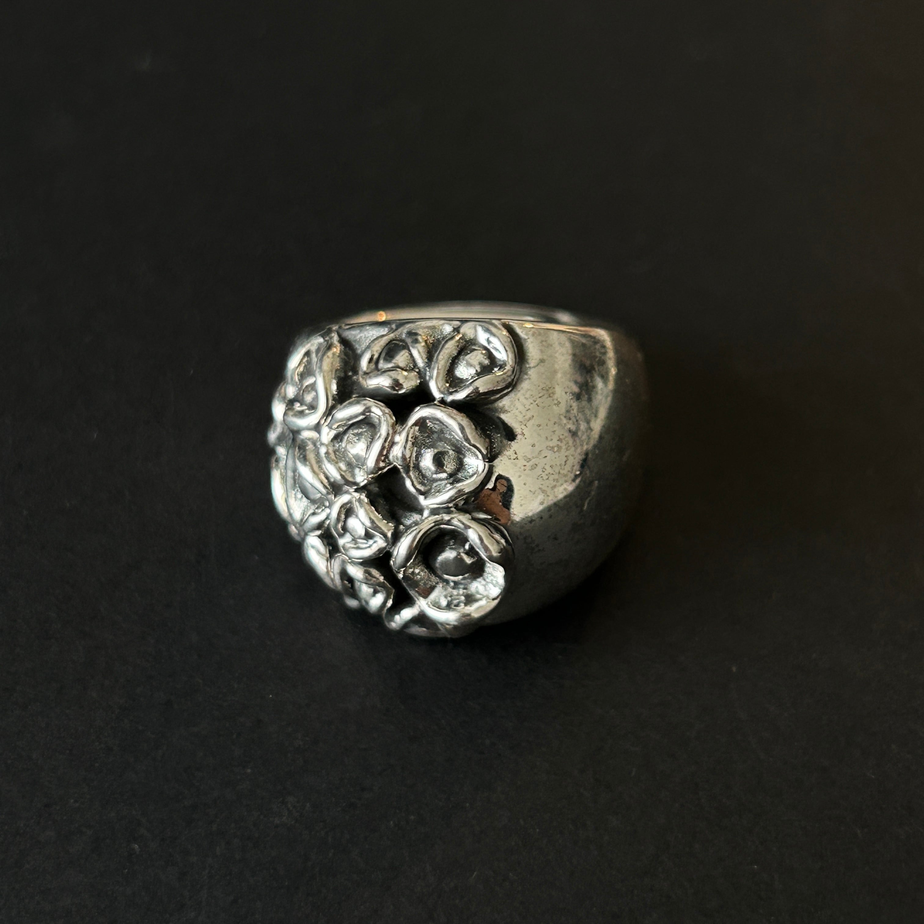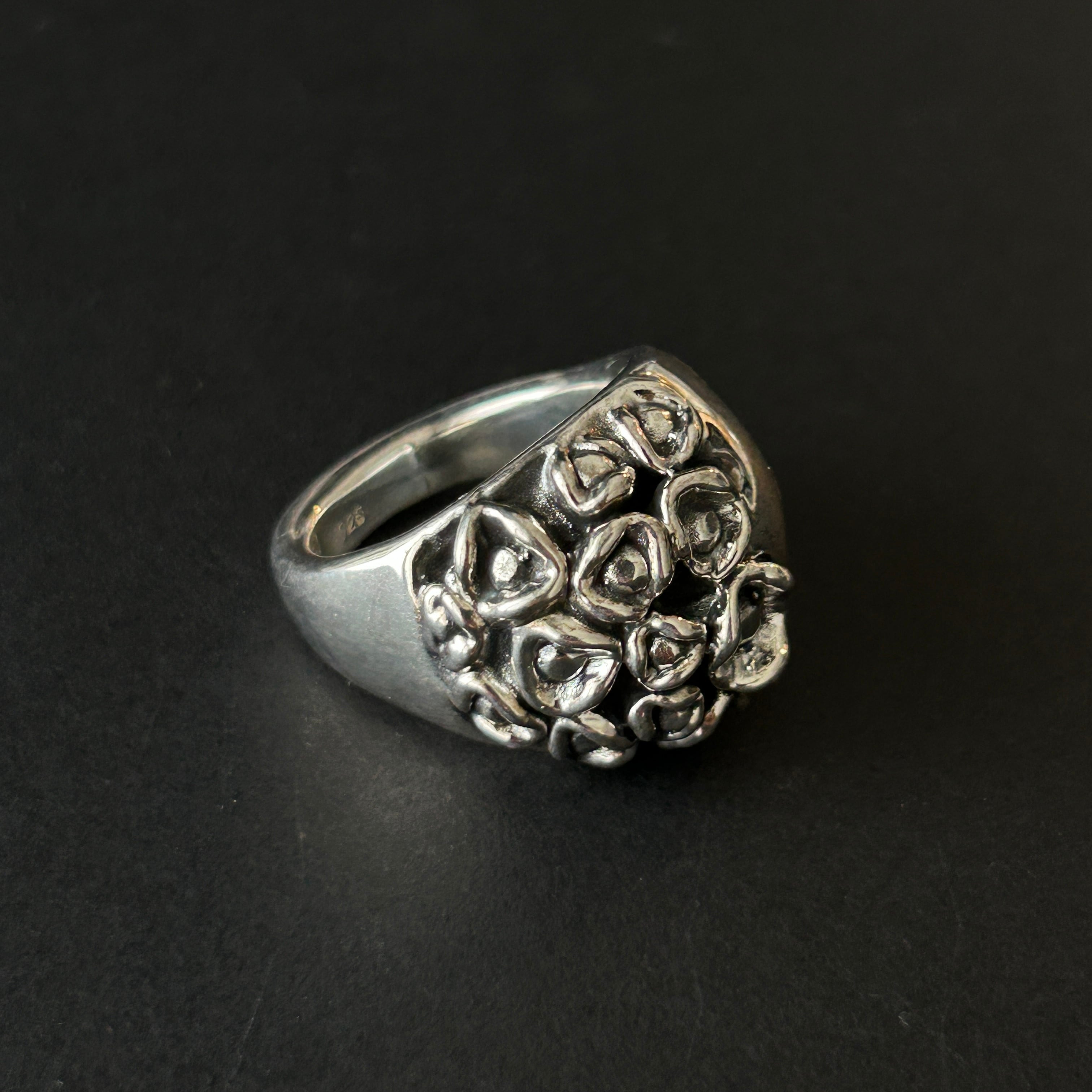 メキシコ タスコ製 Taxco シルバー925 フラワーアシンメトリーリング/軽研磨仕上げ/18.5号