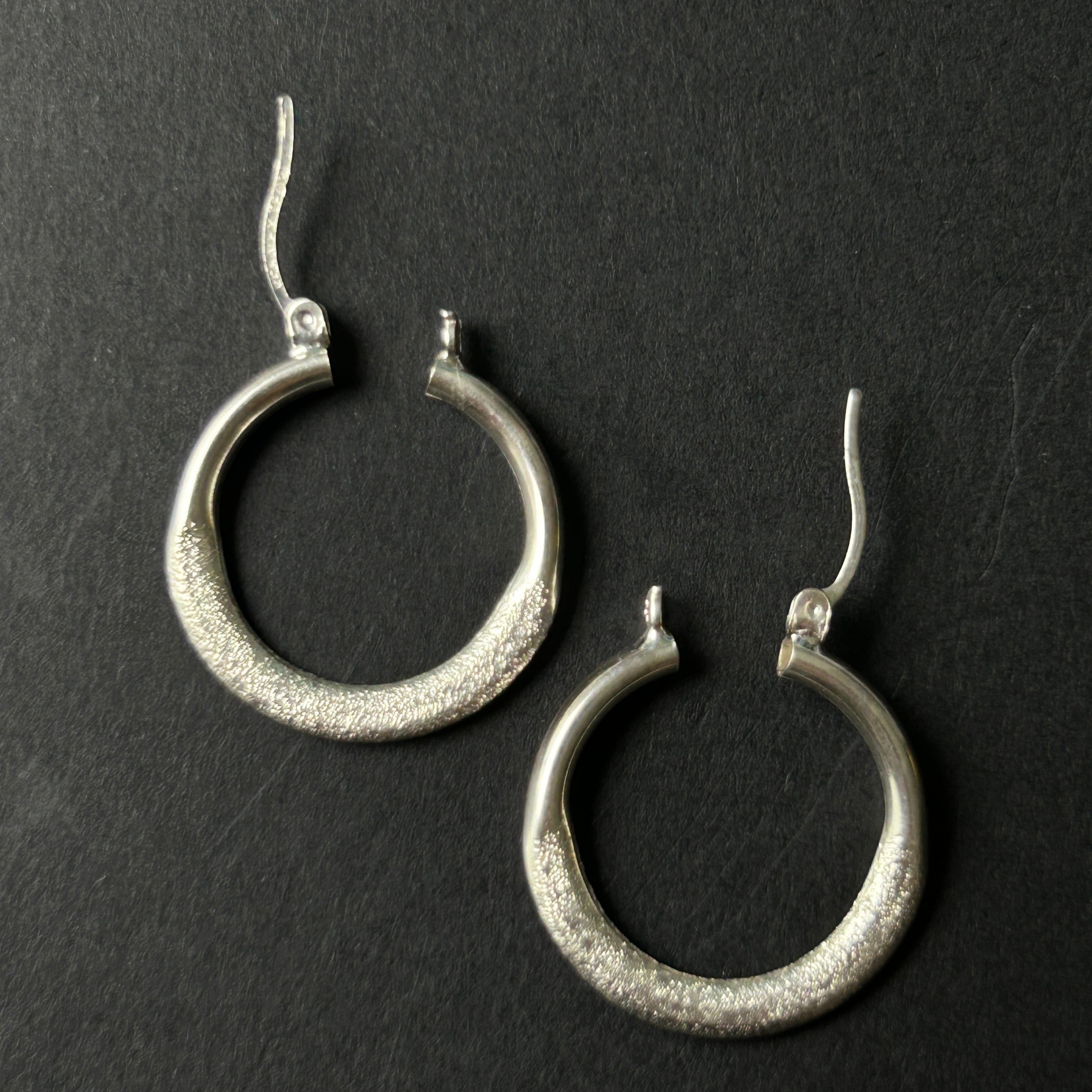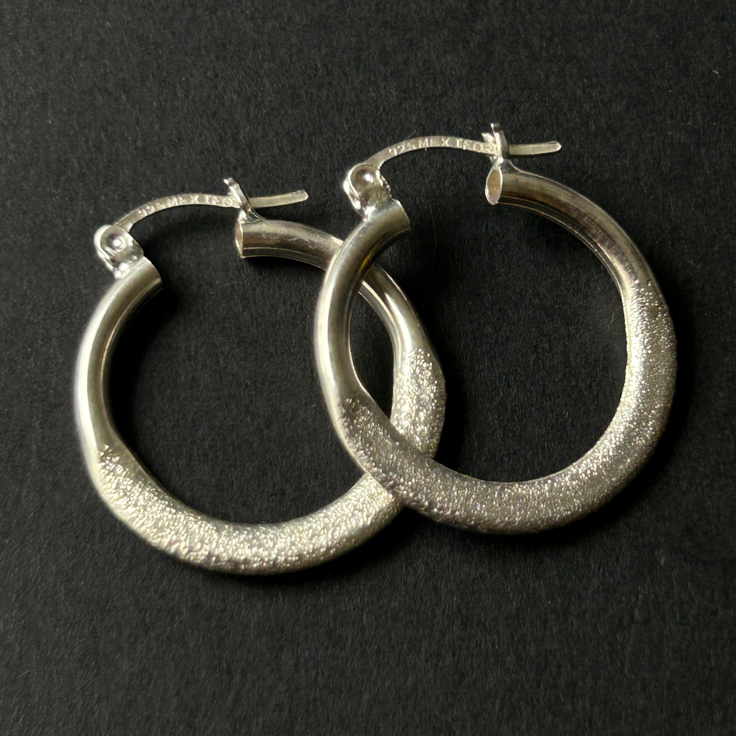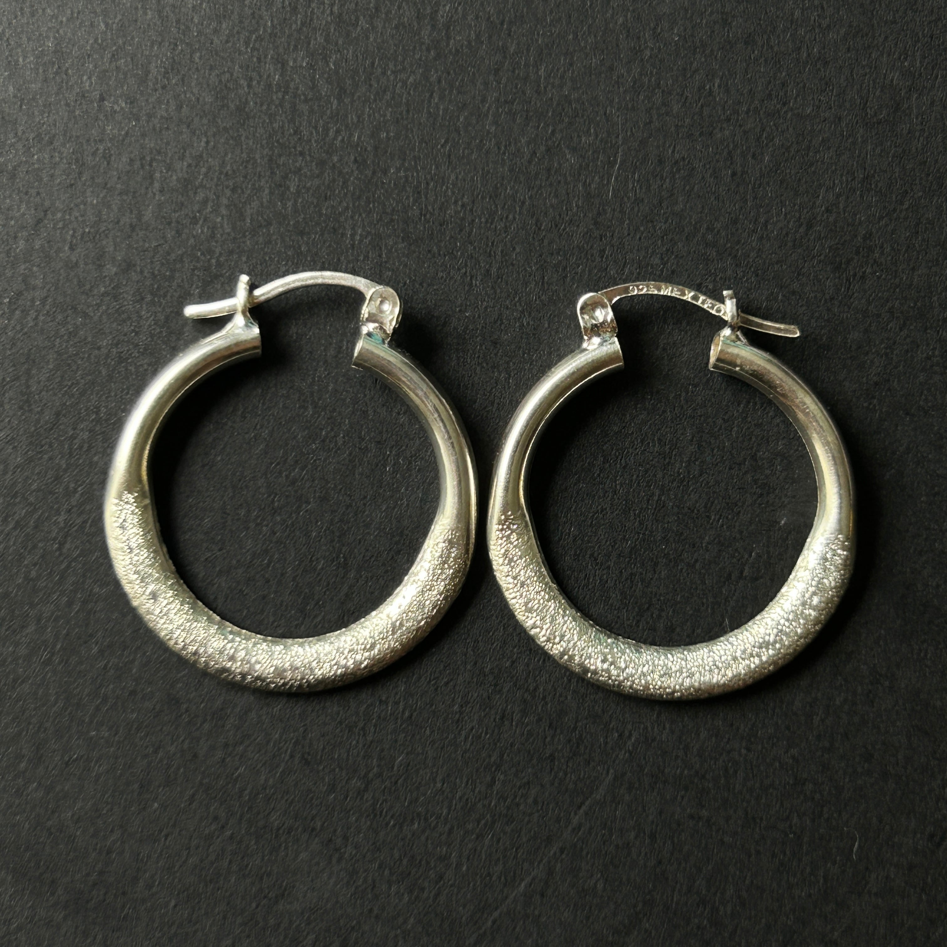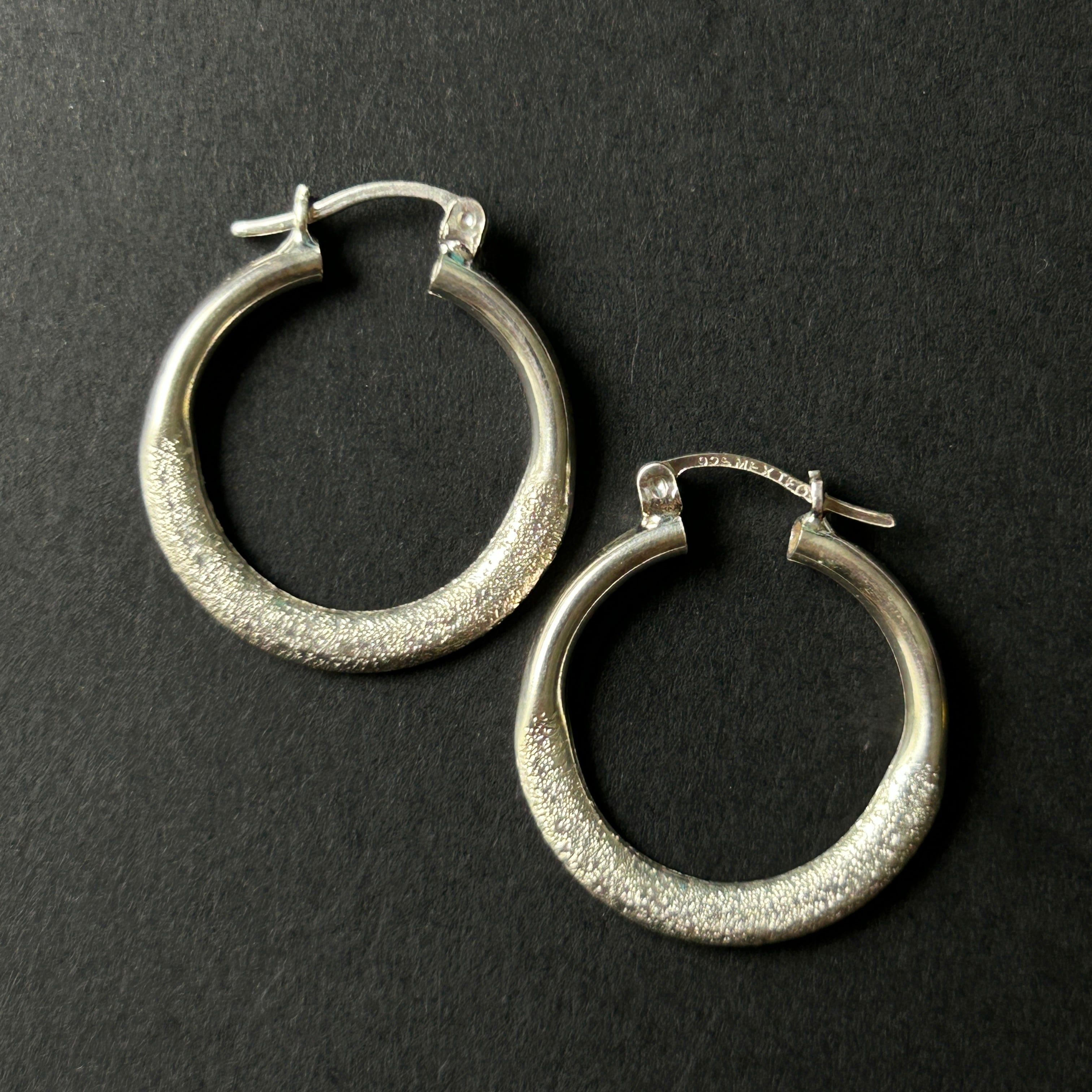メキシコ タスコ製 Taxco シルバー925 ざらめフープピアス/軽研磨仕上げ/両耳