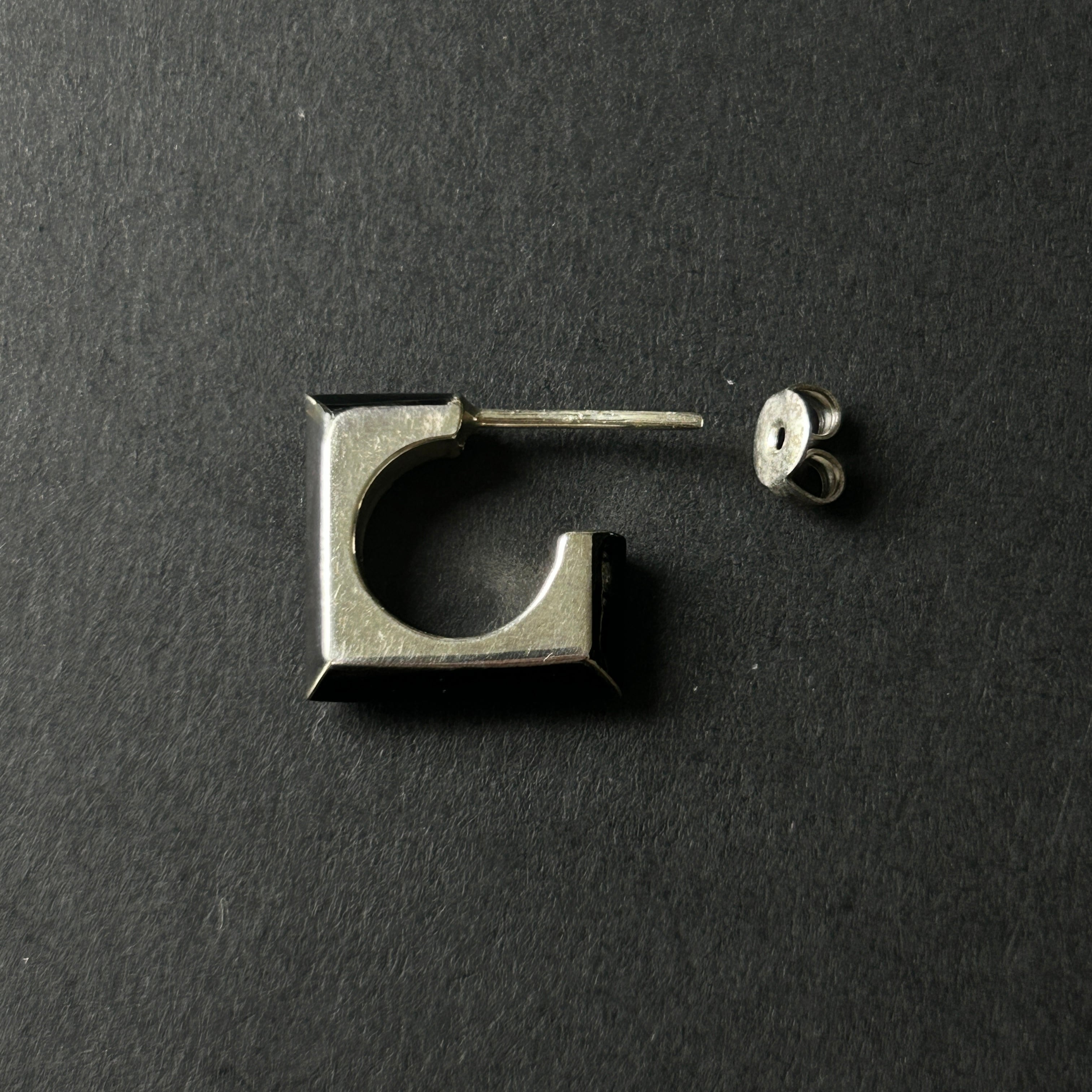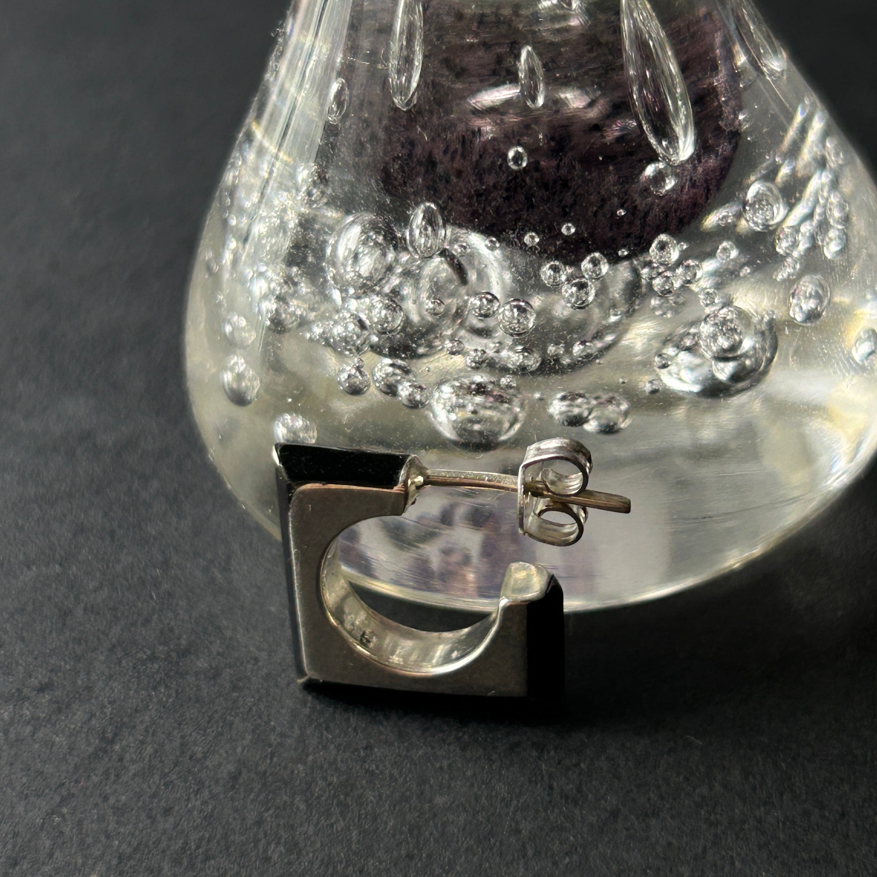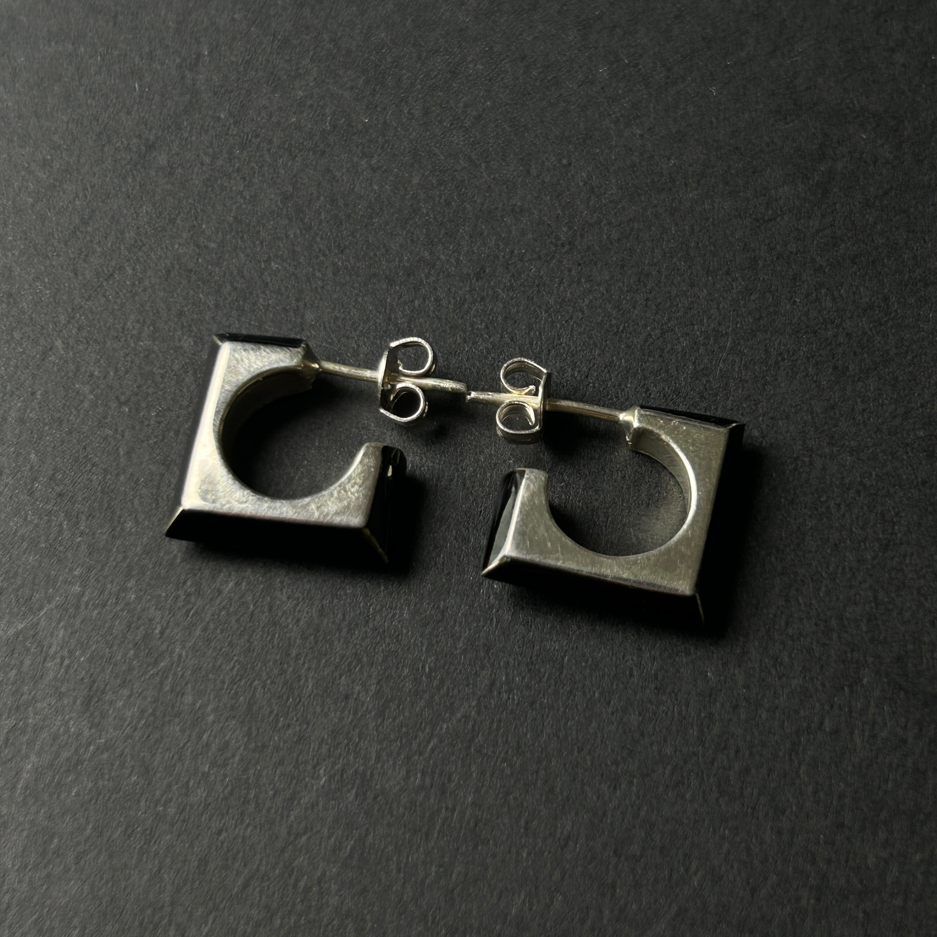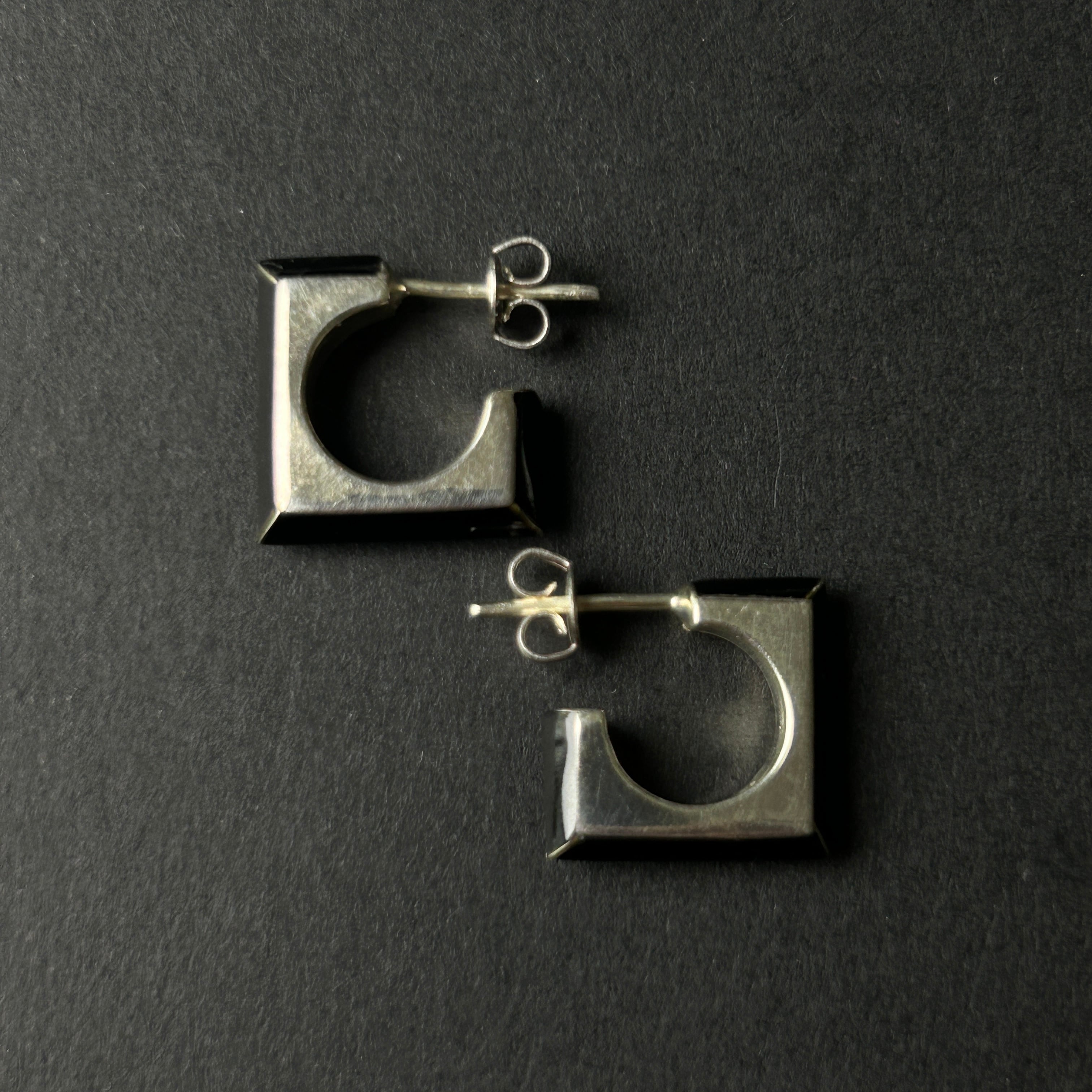 メキシコ タスコ製 Taxco シルバー925 ブラックスクエアフープピアス/軽研磨仕上げ/両耳