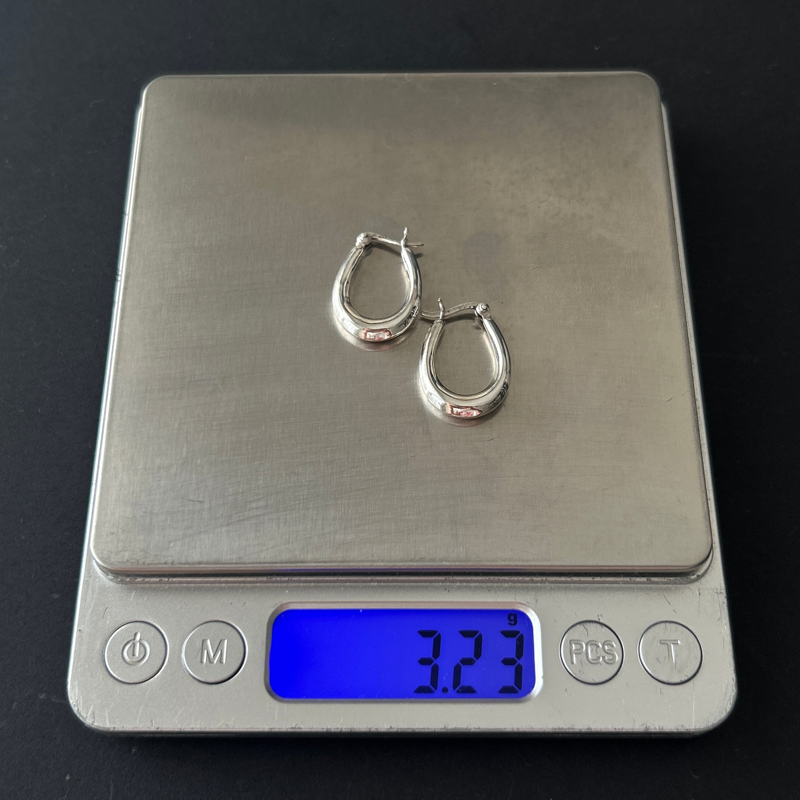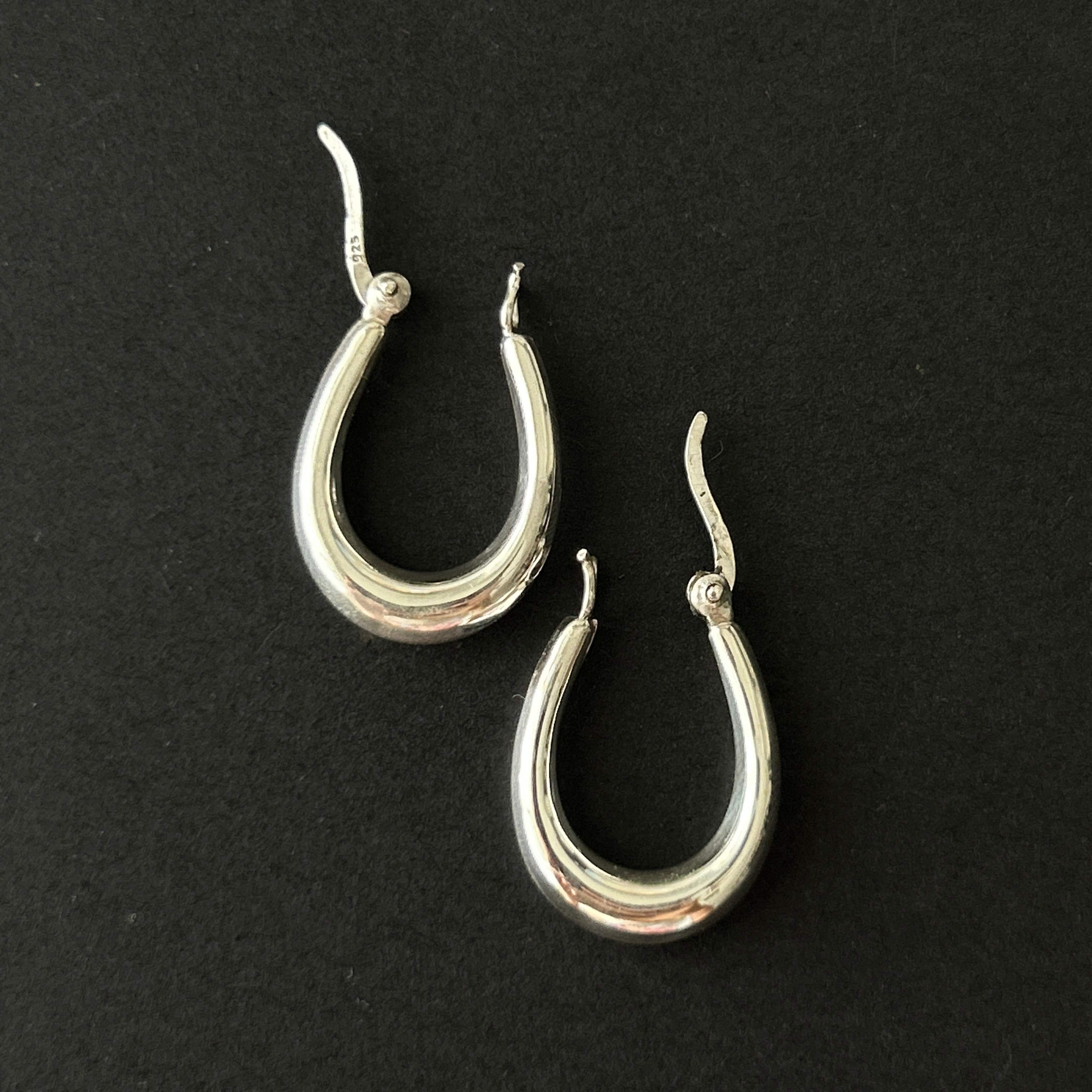 シルバー925 silver オーバルフープピアス/軽研磨仕上げ/両耳