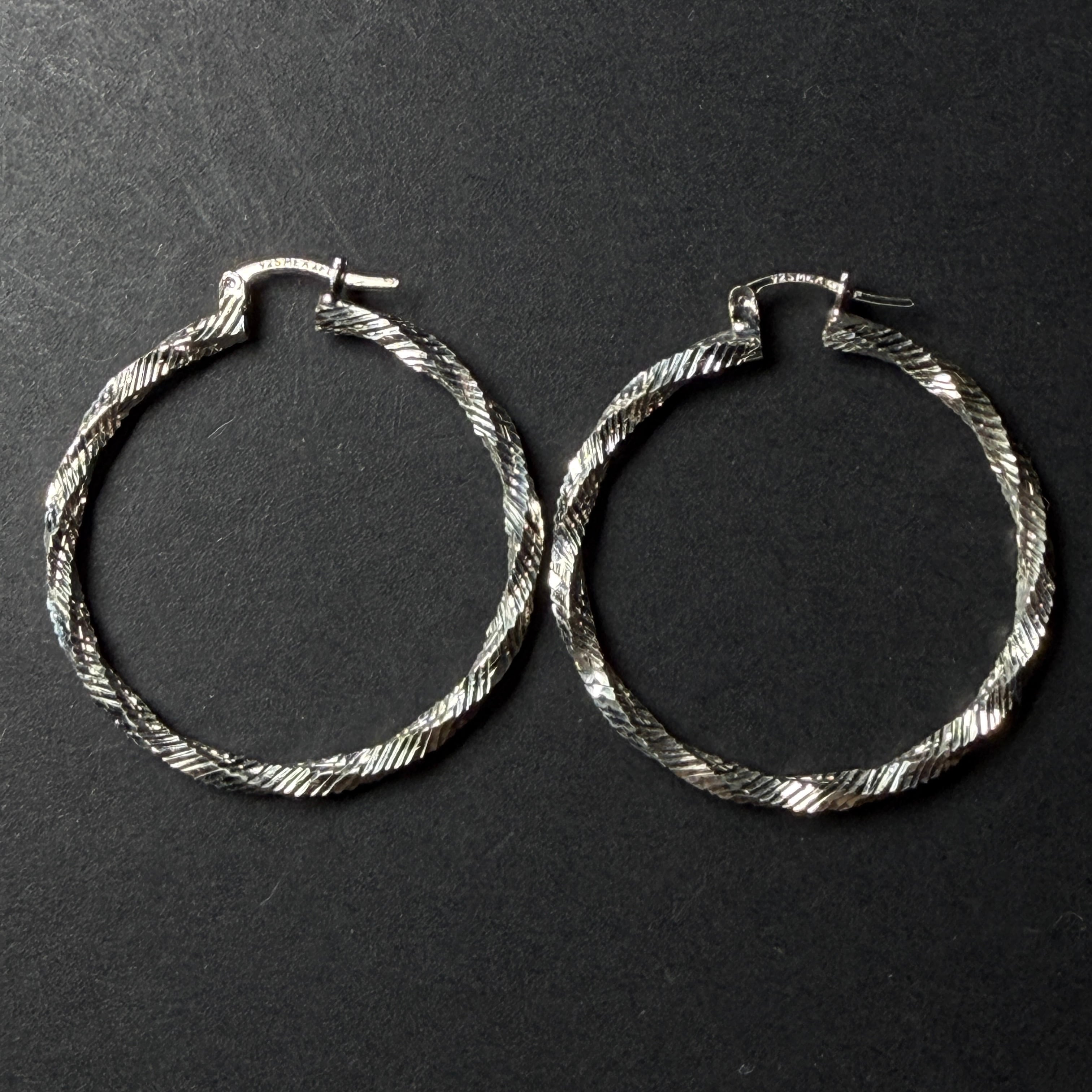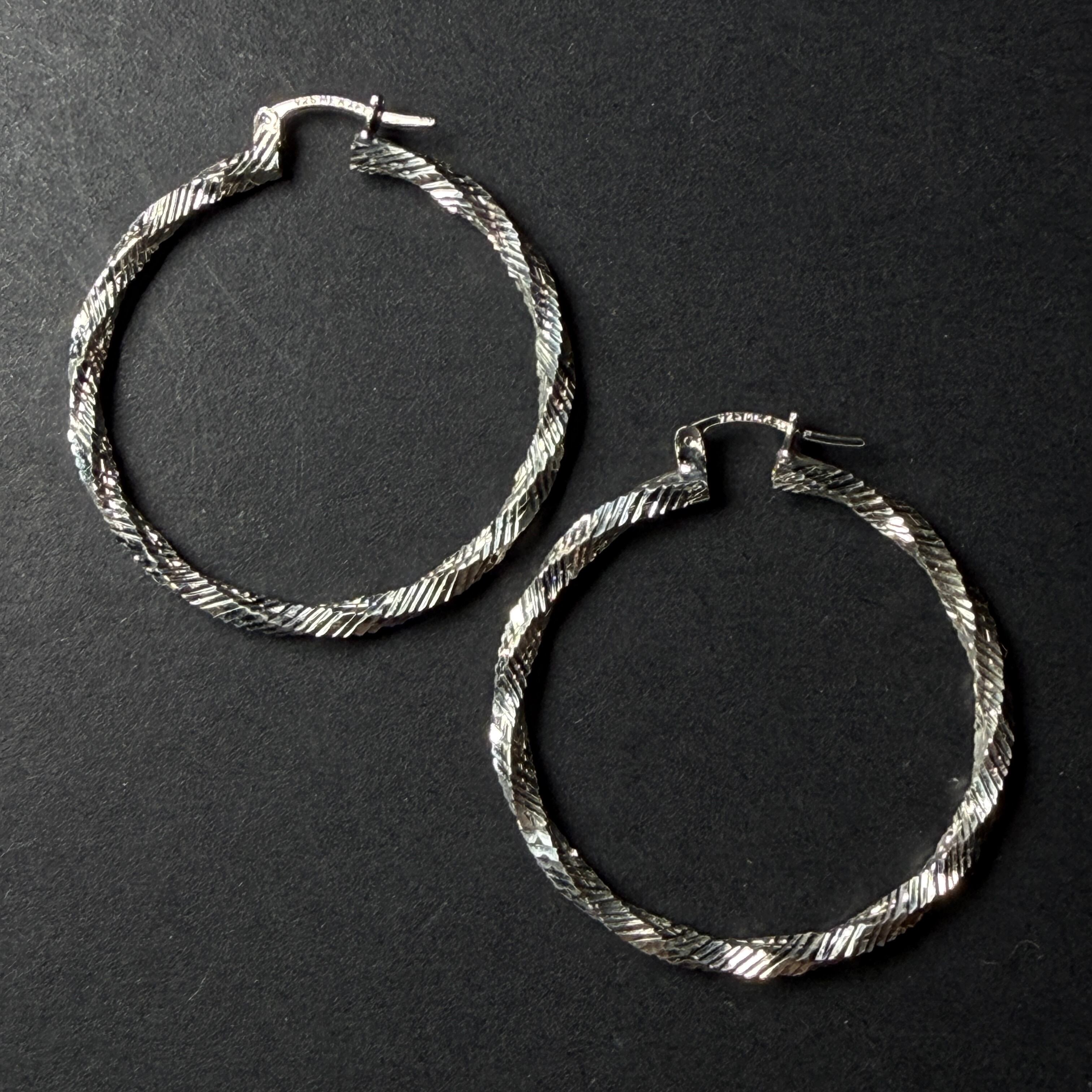 メキシコ タスコ製 Taxco デザインツイストフープピアス/スーパーワイド/軽研磨仕上げ