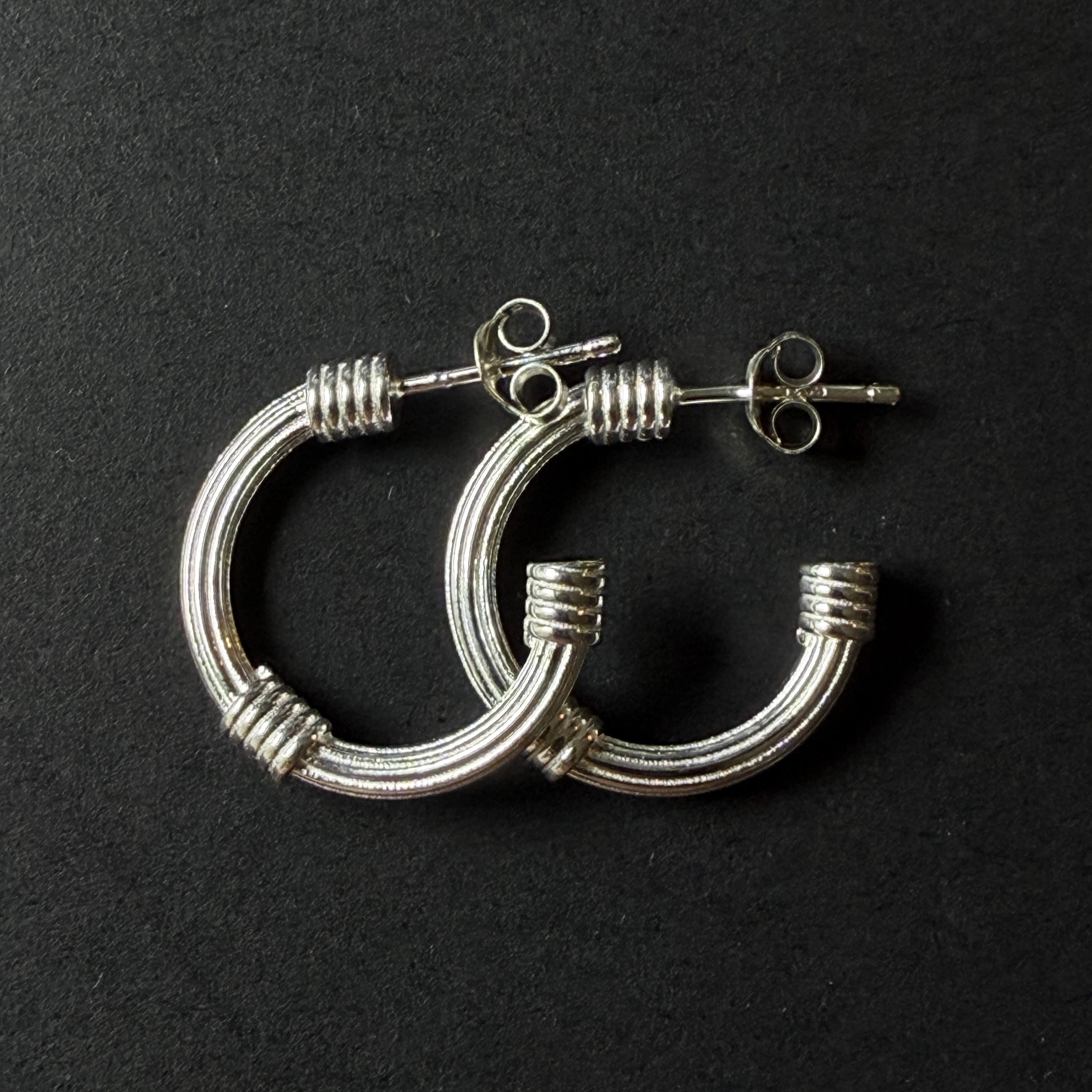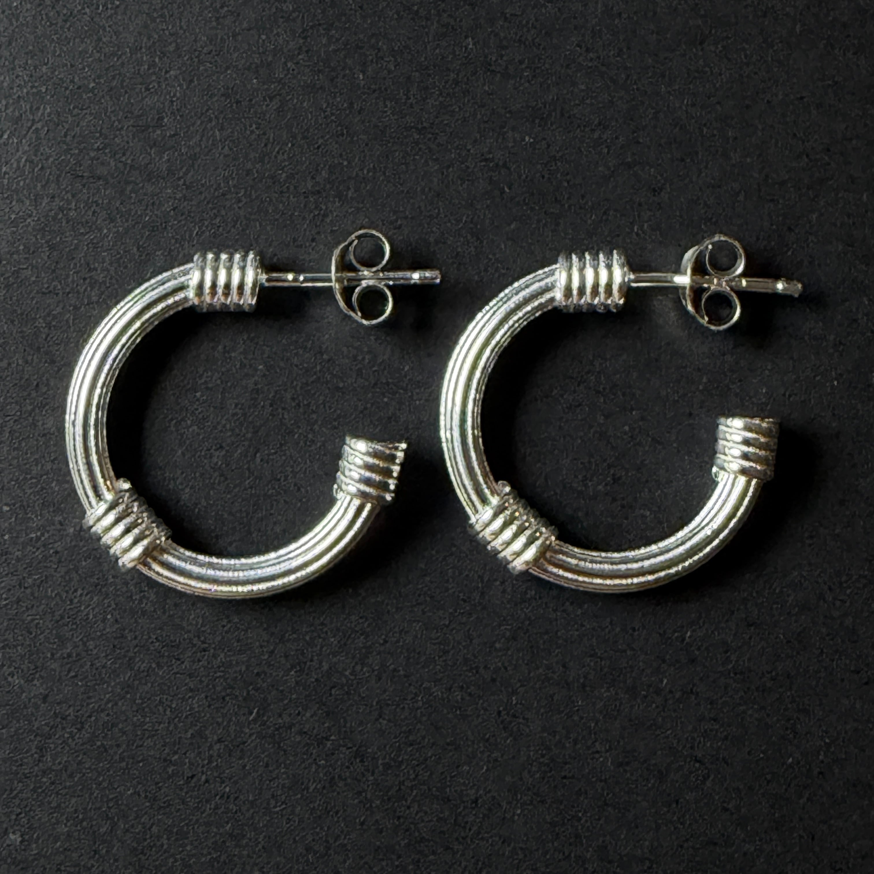 シルバー925 silver ポイントデザインフープピアス/軽研磨仕上げ/両耳