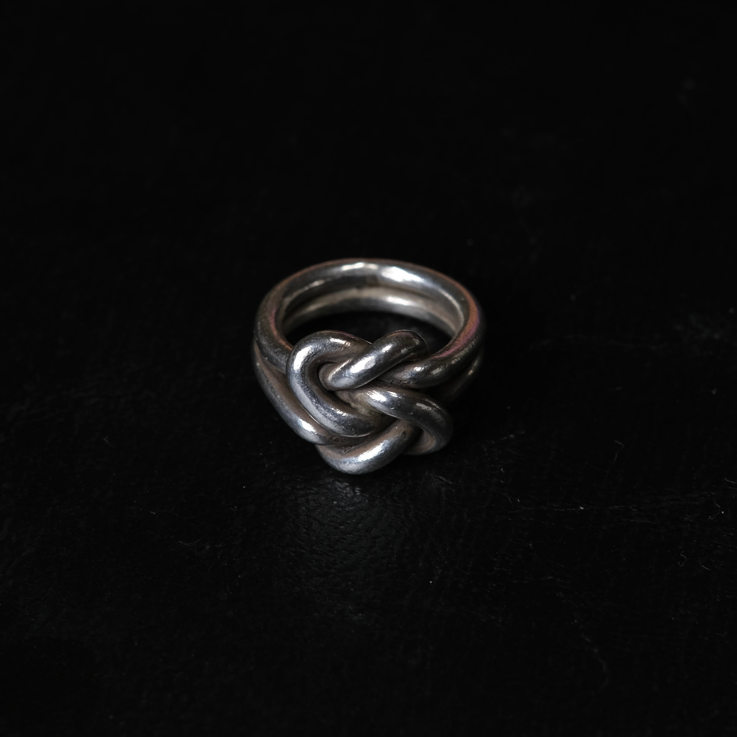 純度の高いカレンシルバーを使用した結び目デザインリングになります。