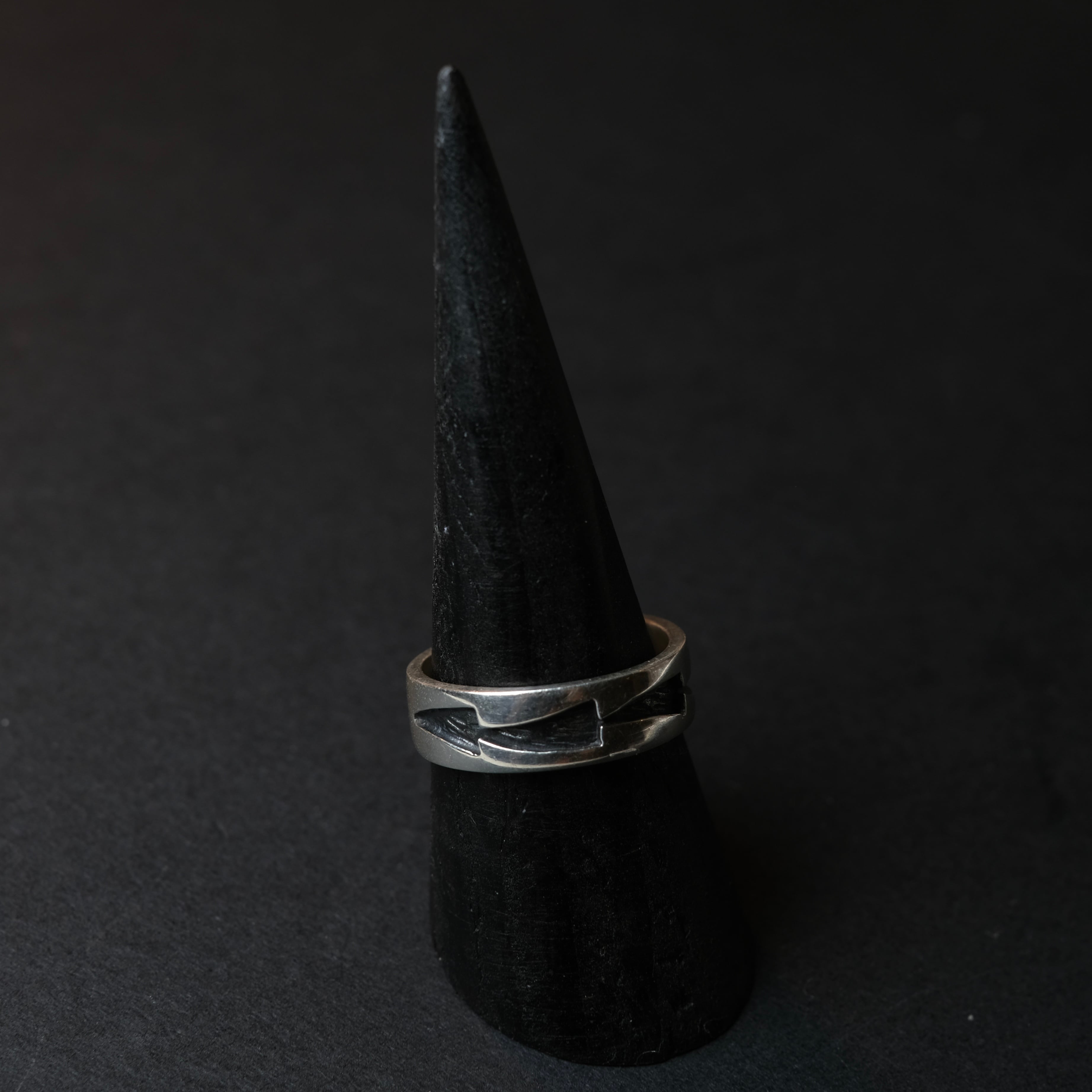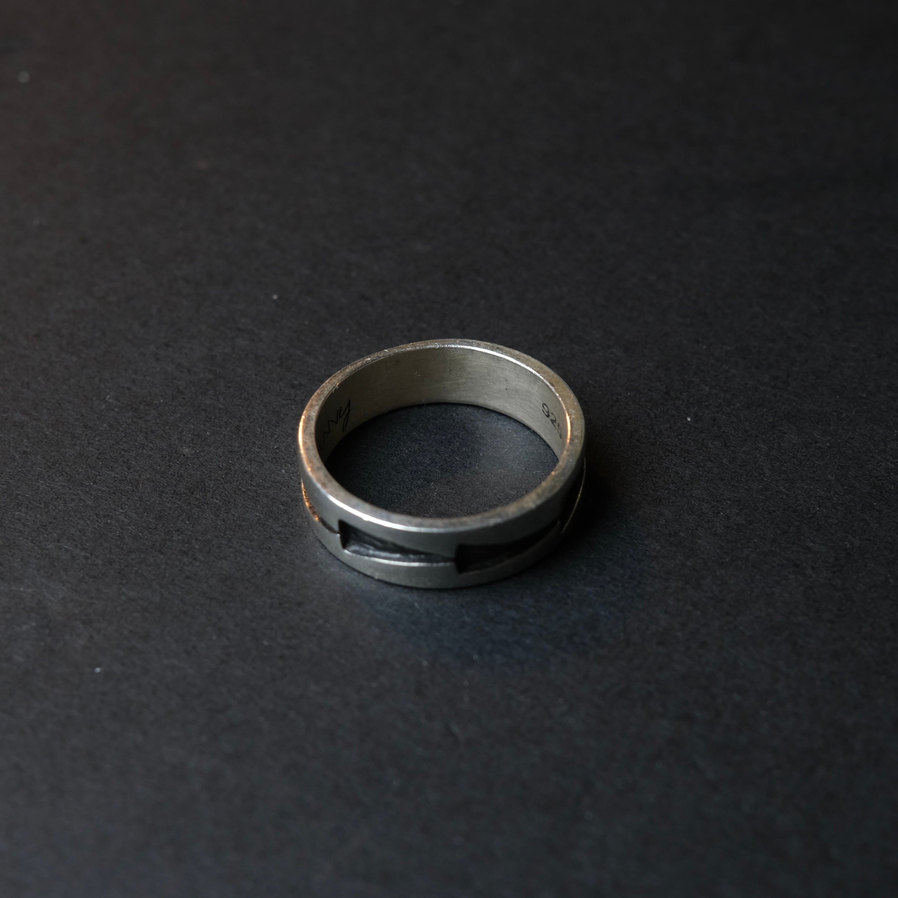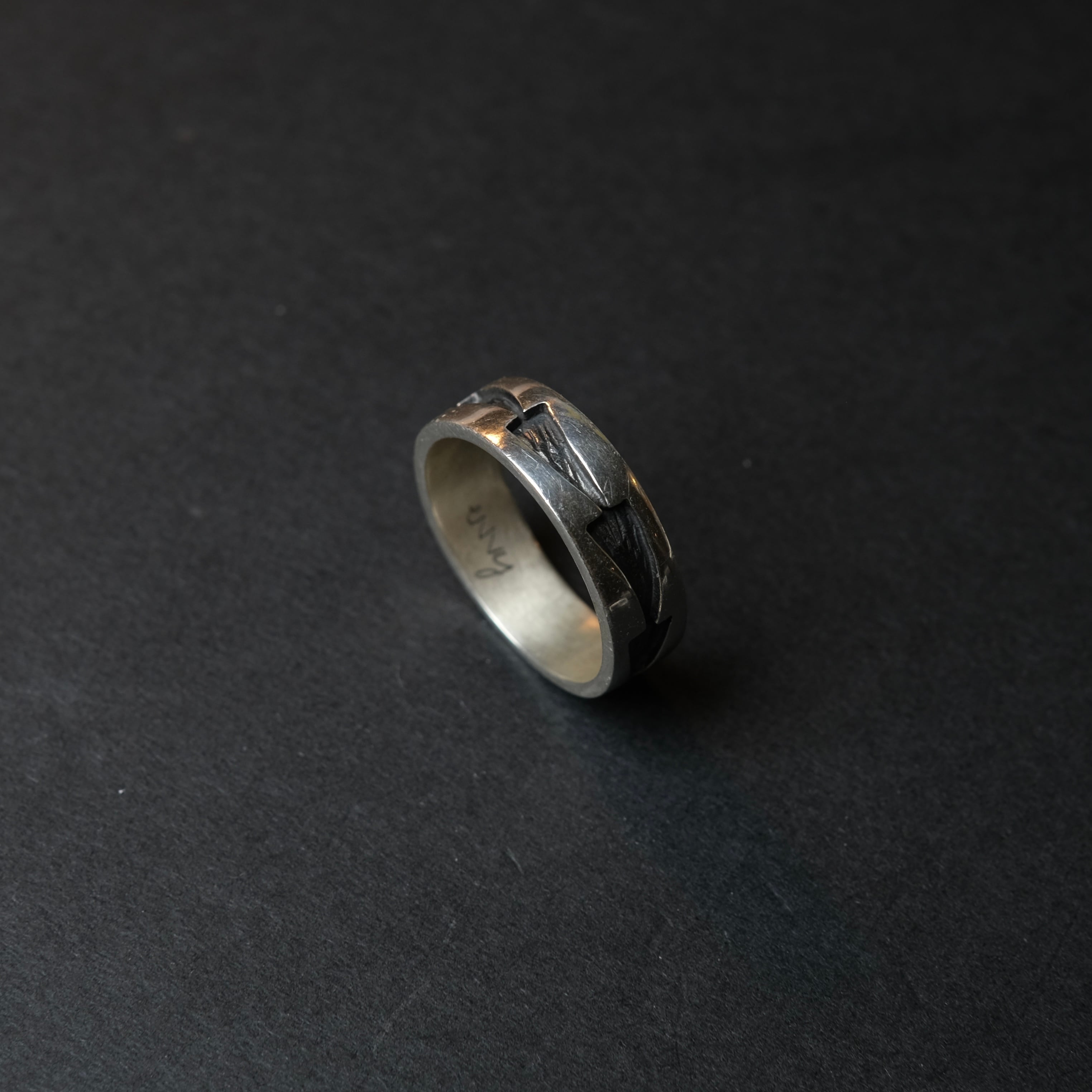 シンプルな彫りデザインが刻まれた、別注シルバーリングになります。