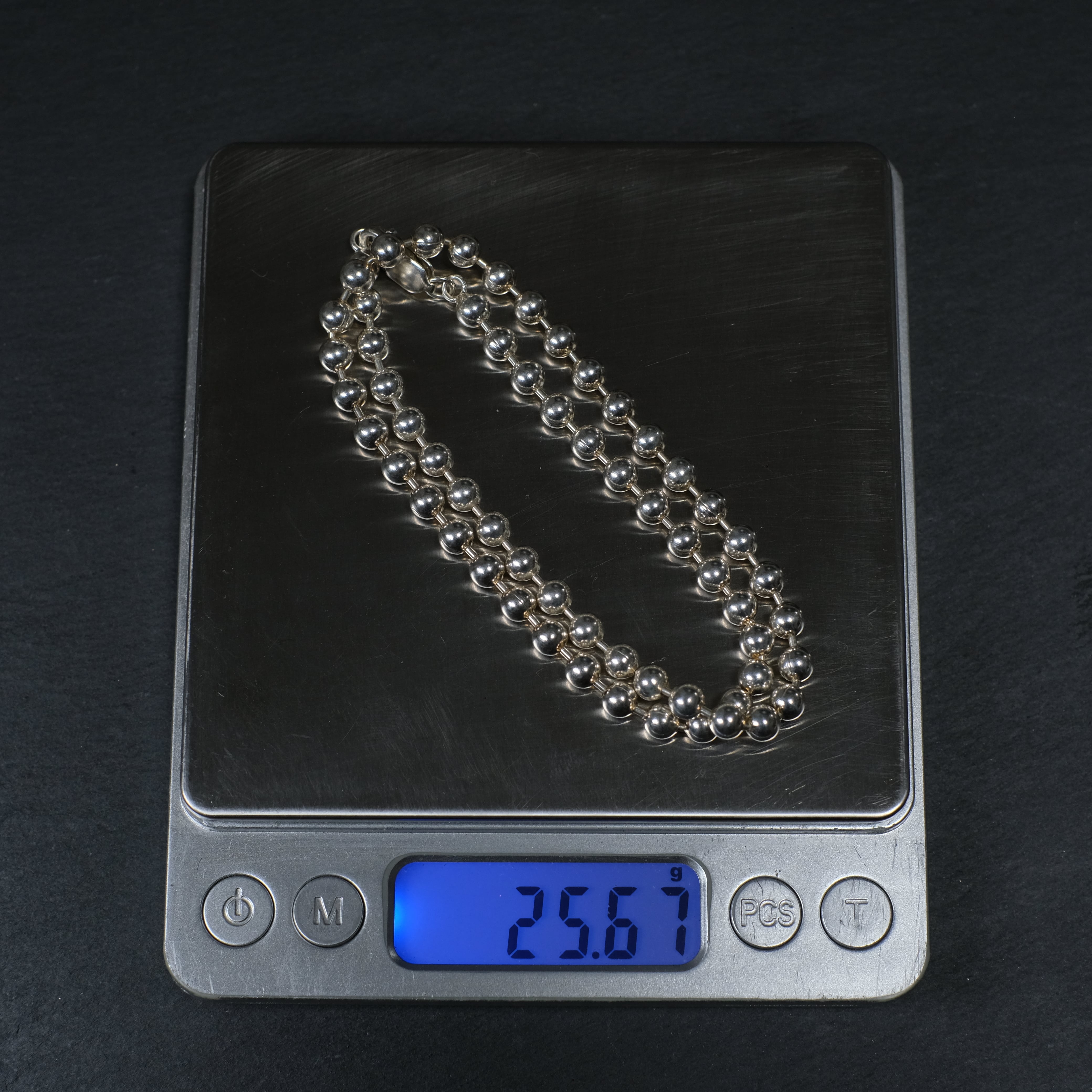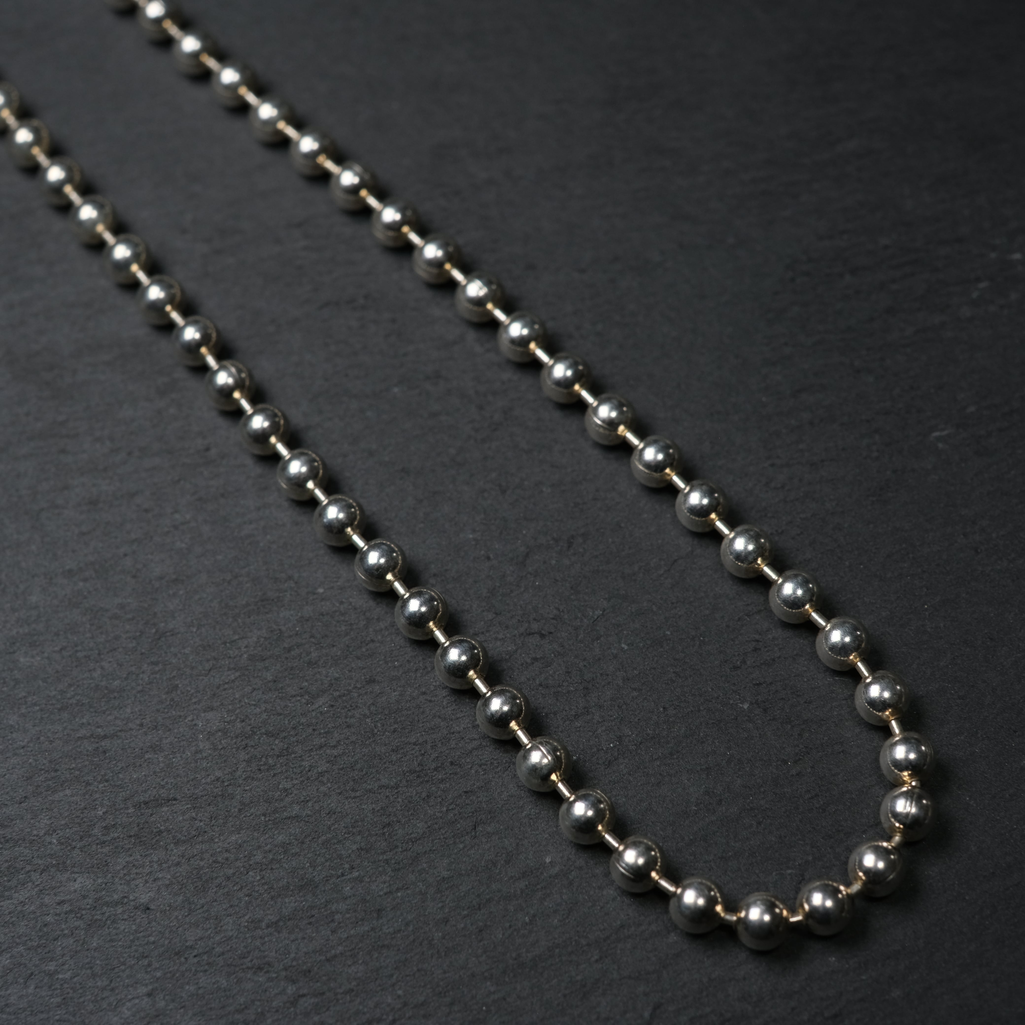直径5mmの大きめのシルバーボールが連なった、重厚感あるシルバーネックレスになります。