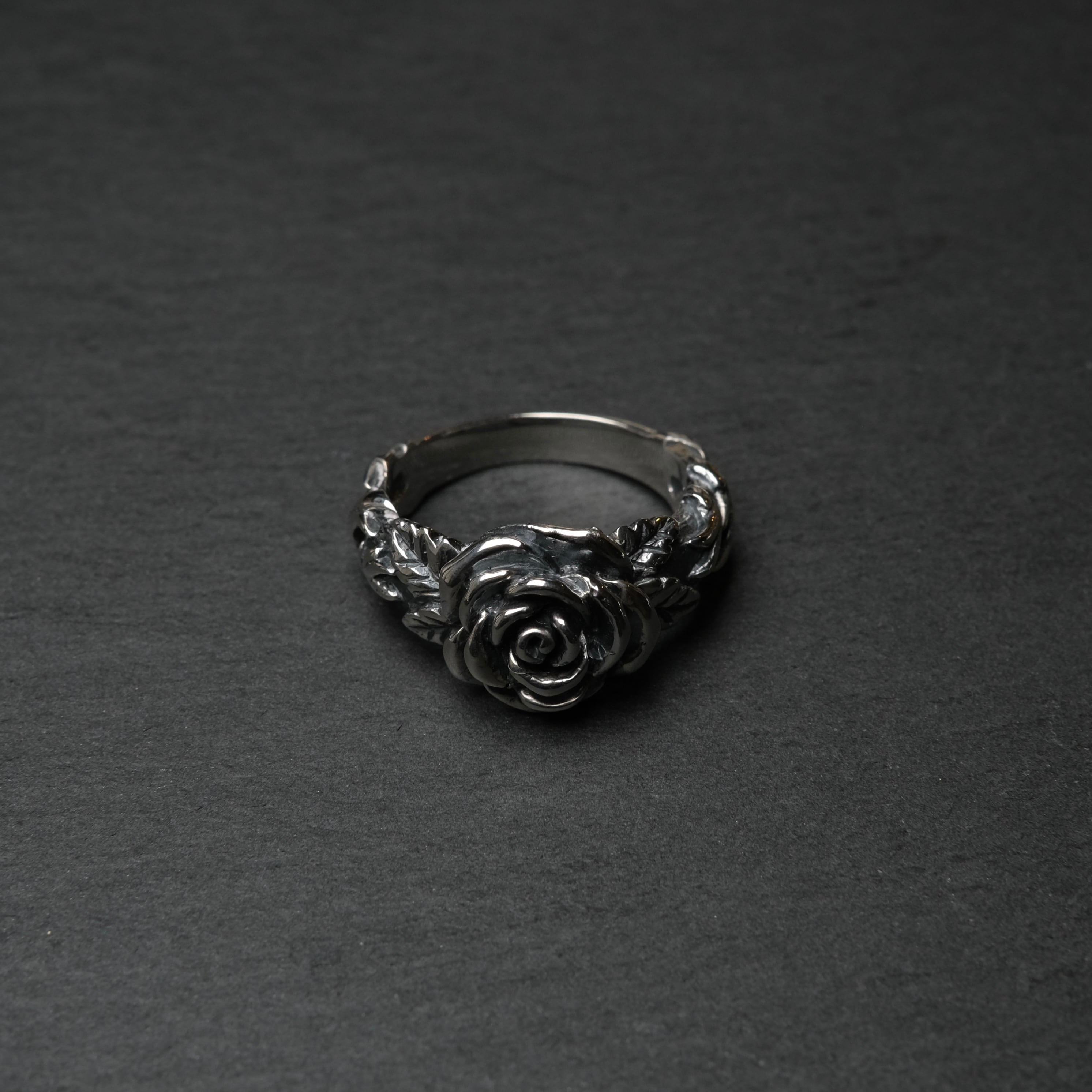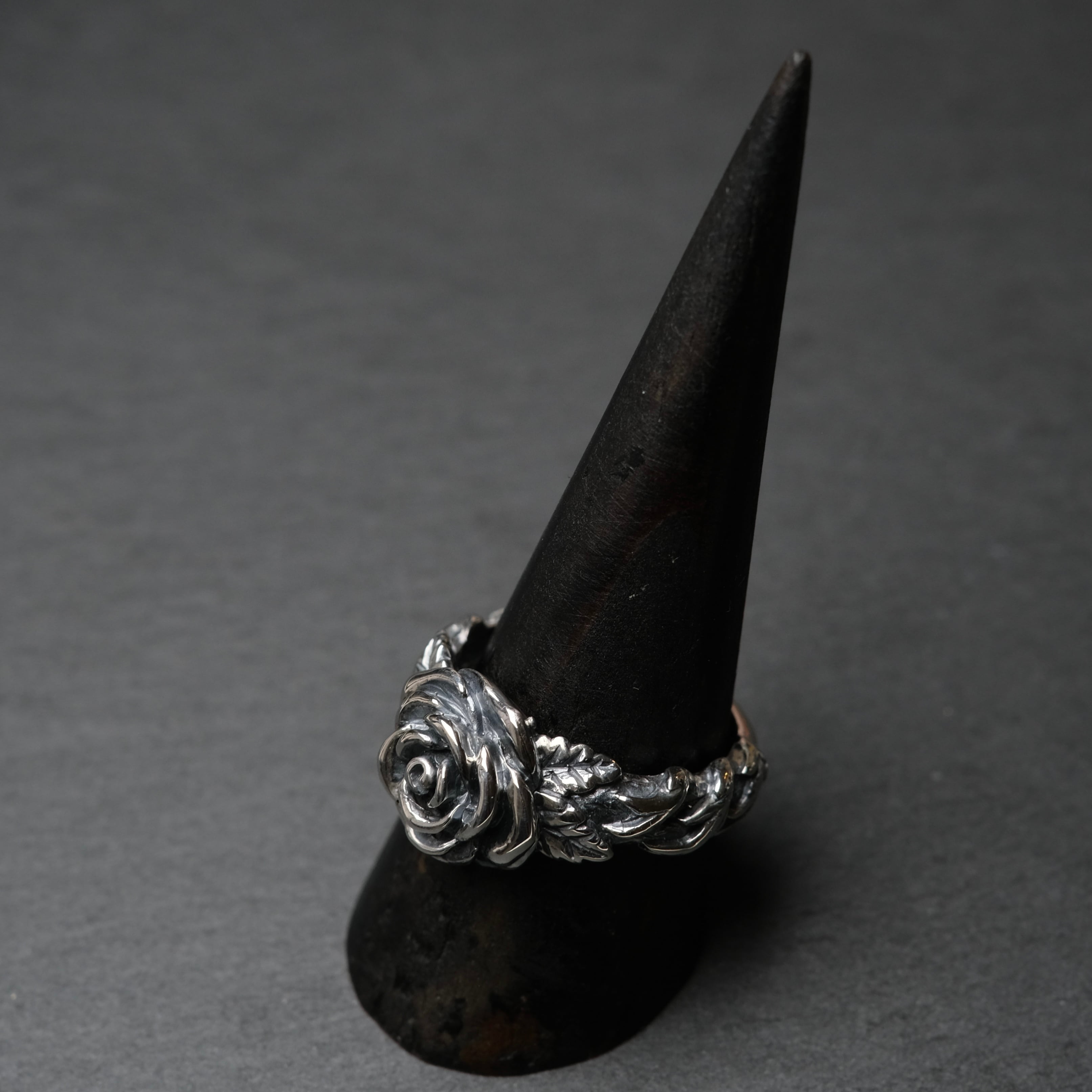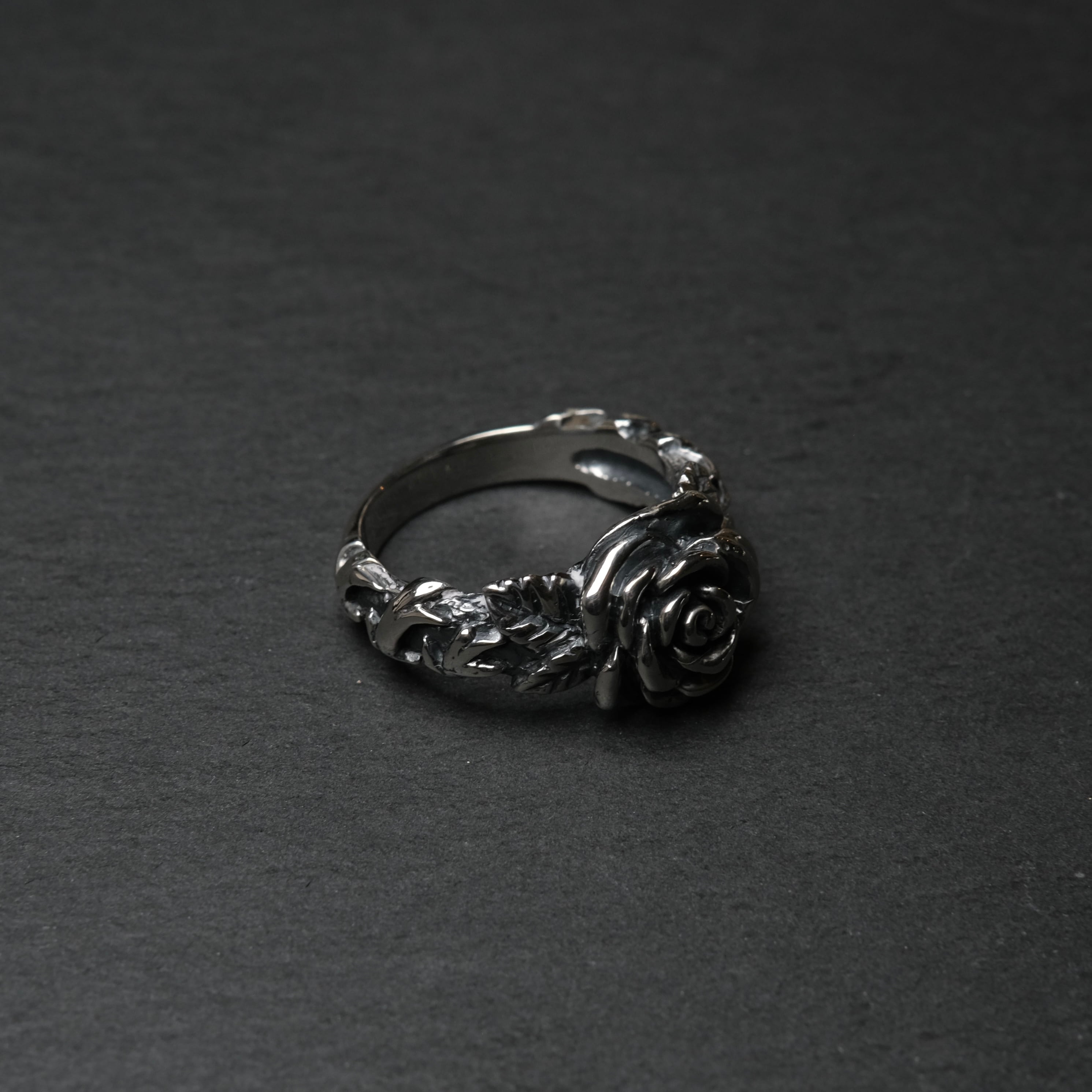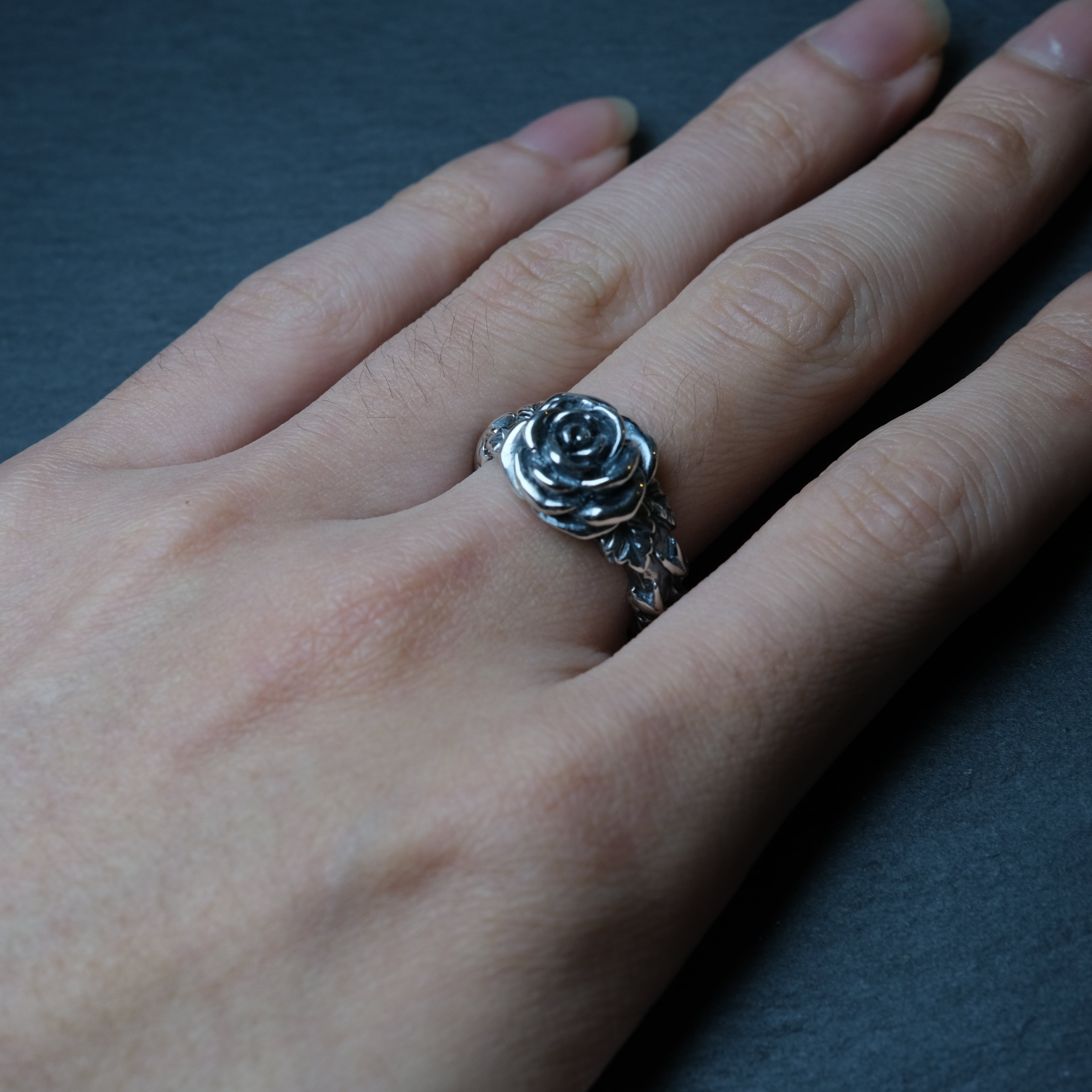 シルバー925 silver 燻し薔薇デザインリング/軽研磨仕上げ/19号
