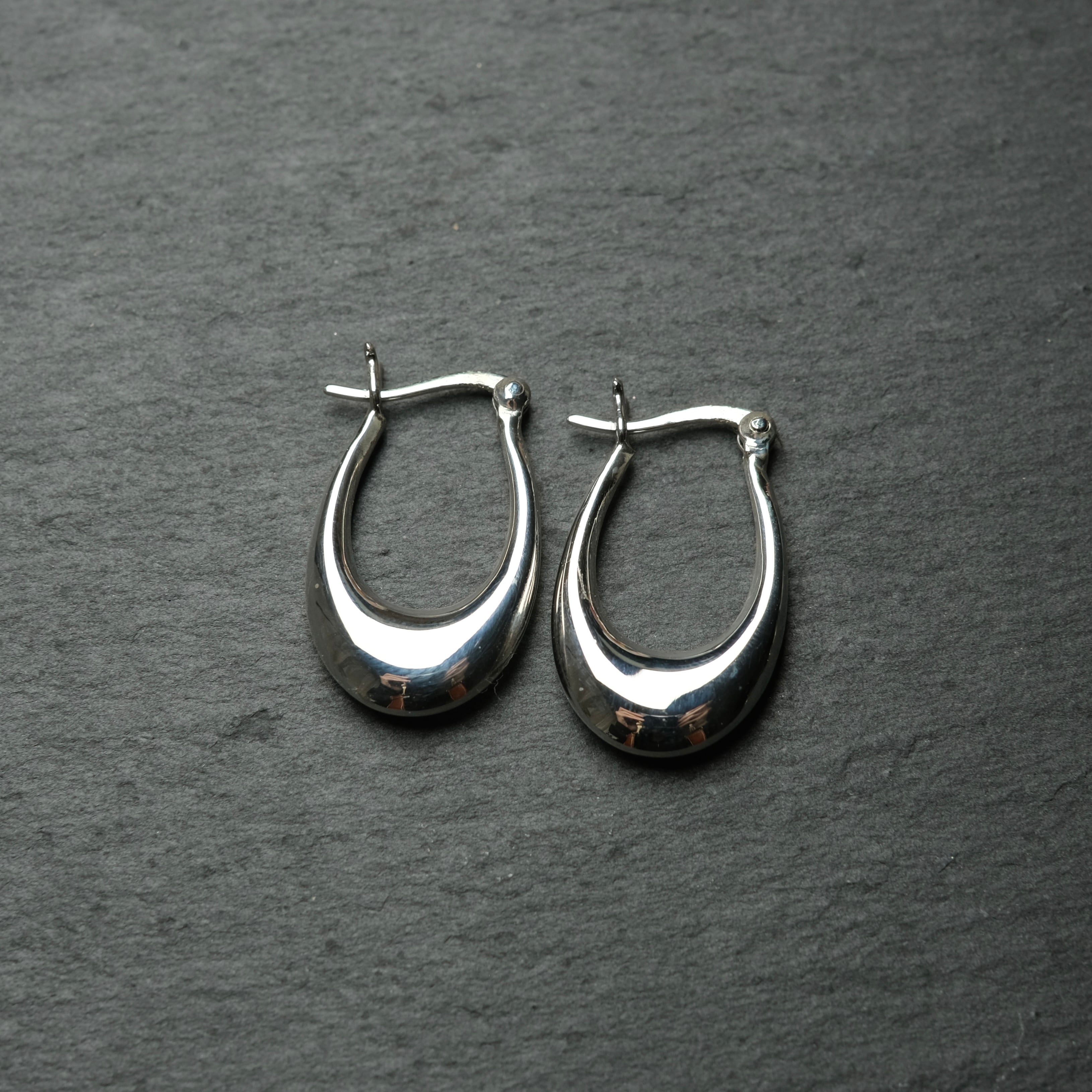 シルバー925 silver オーバルフープピアス/軽研磨仕上げ/両耳