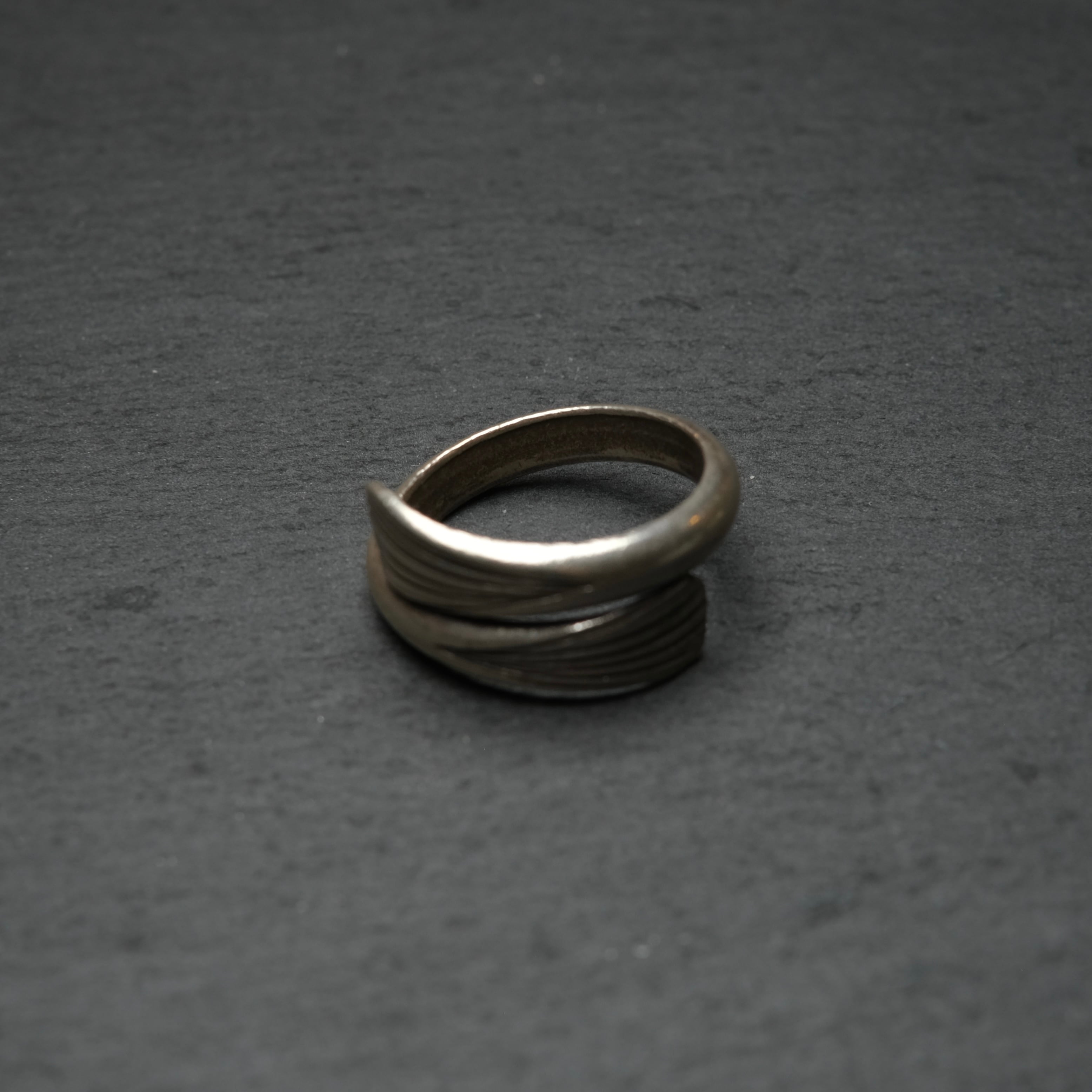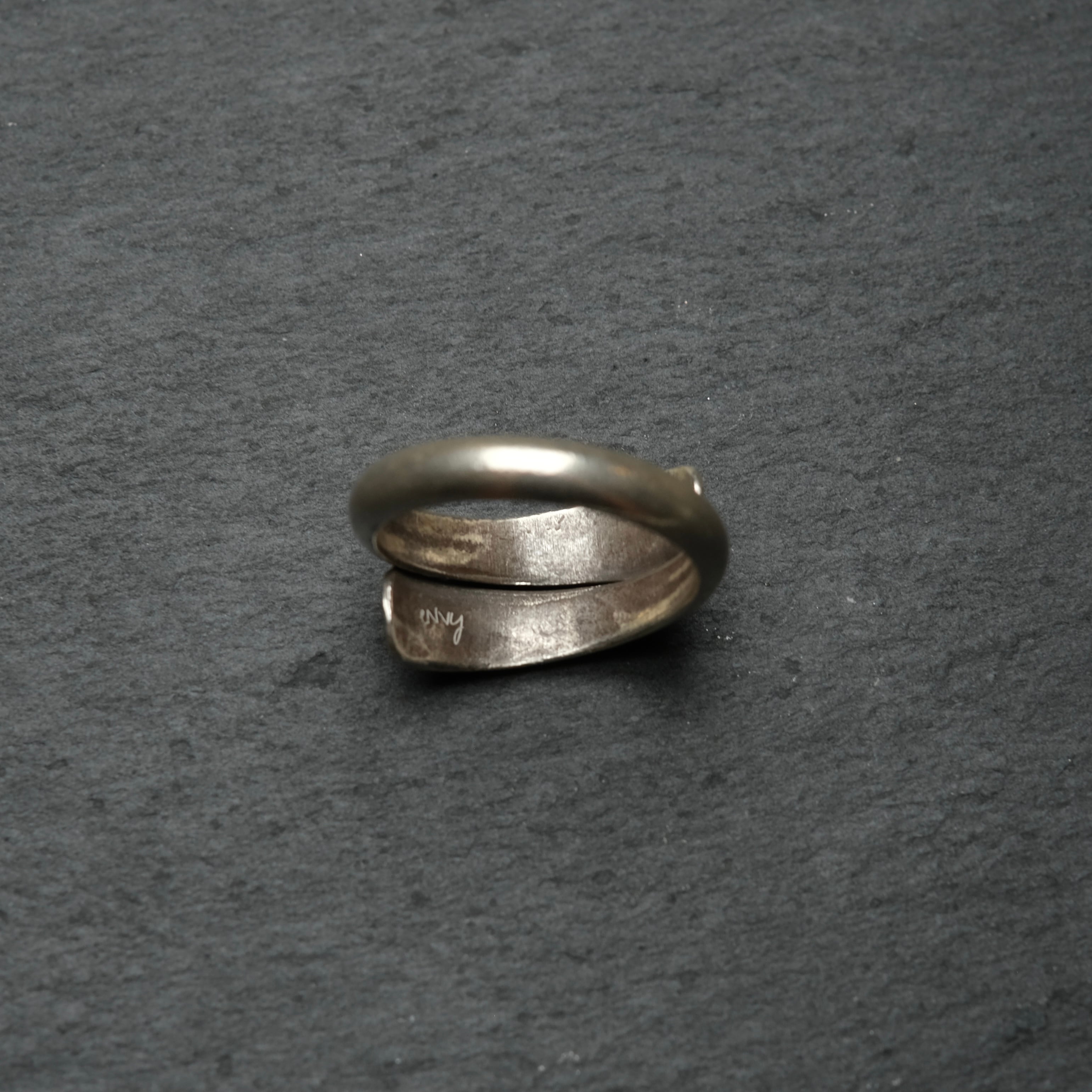 トップが2つに分かれたデザインの珍しいシルバーリングになります。