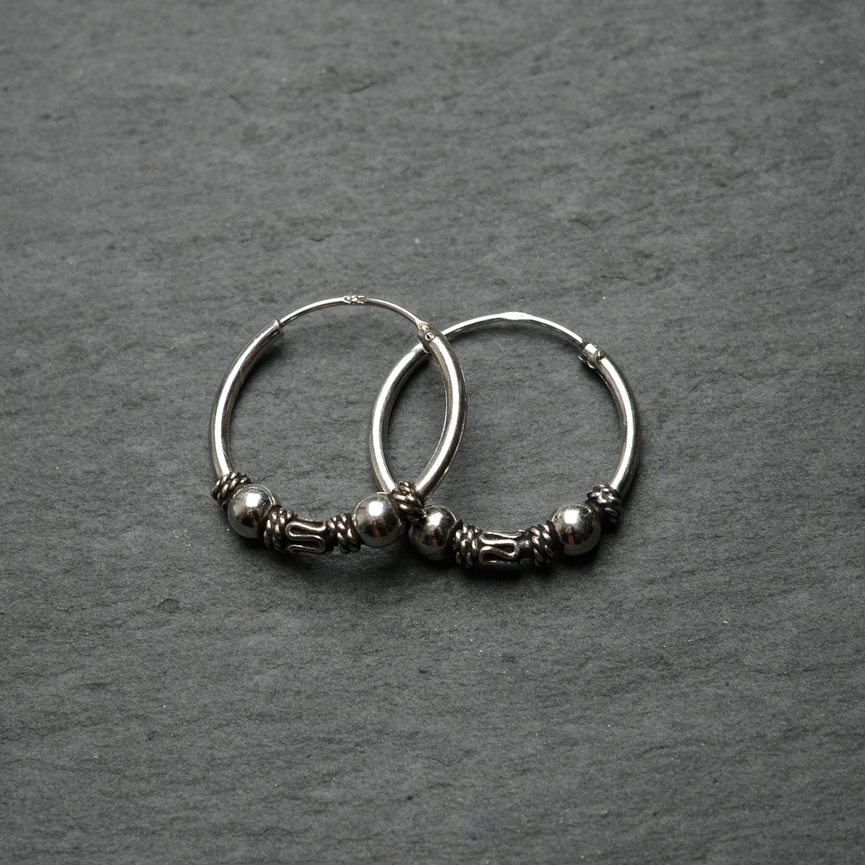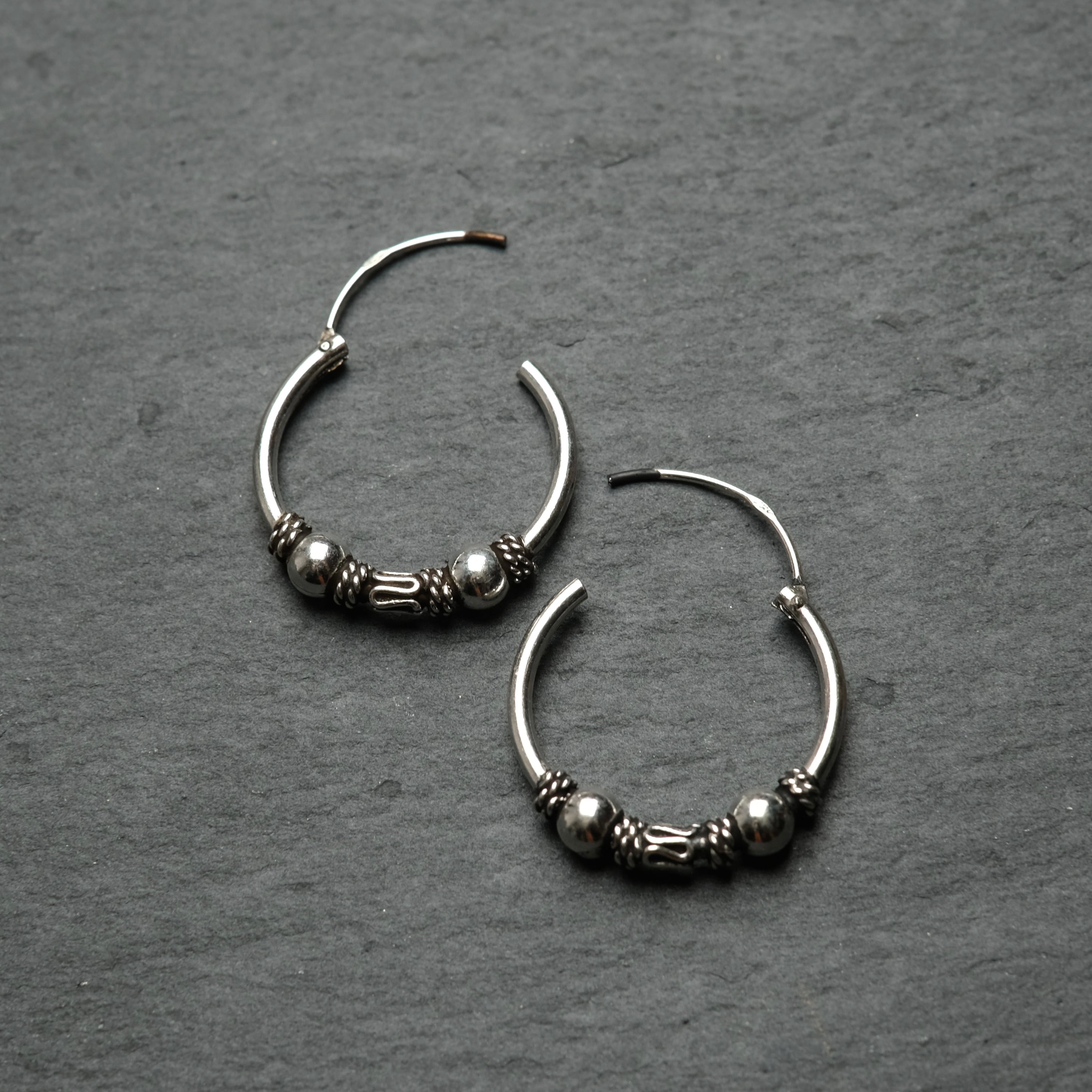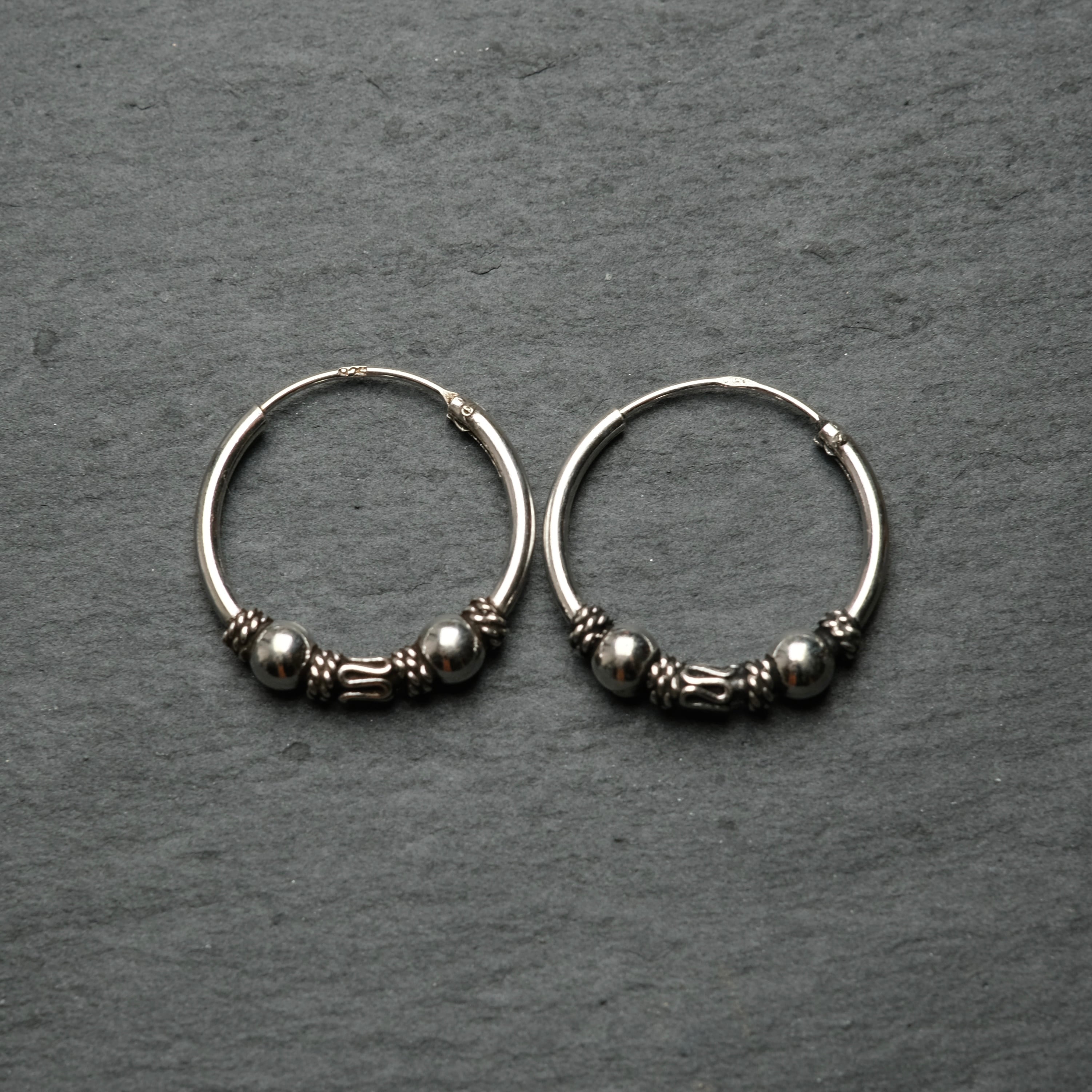シルバー925 silver トライバルデザインフープピアス/軽研磨仕上げ/両耳
