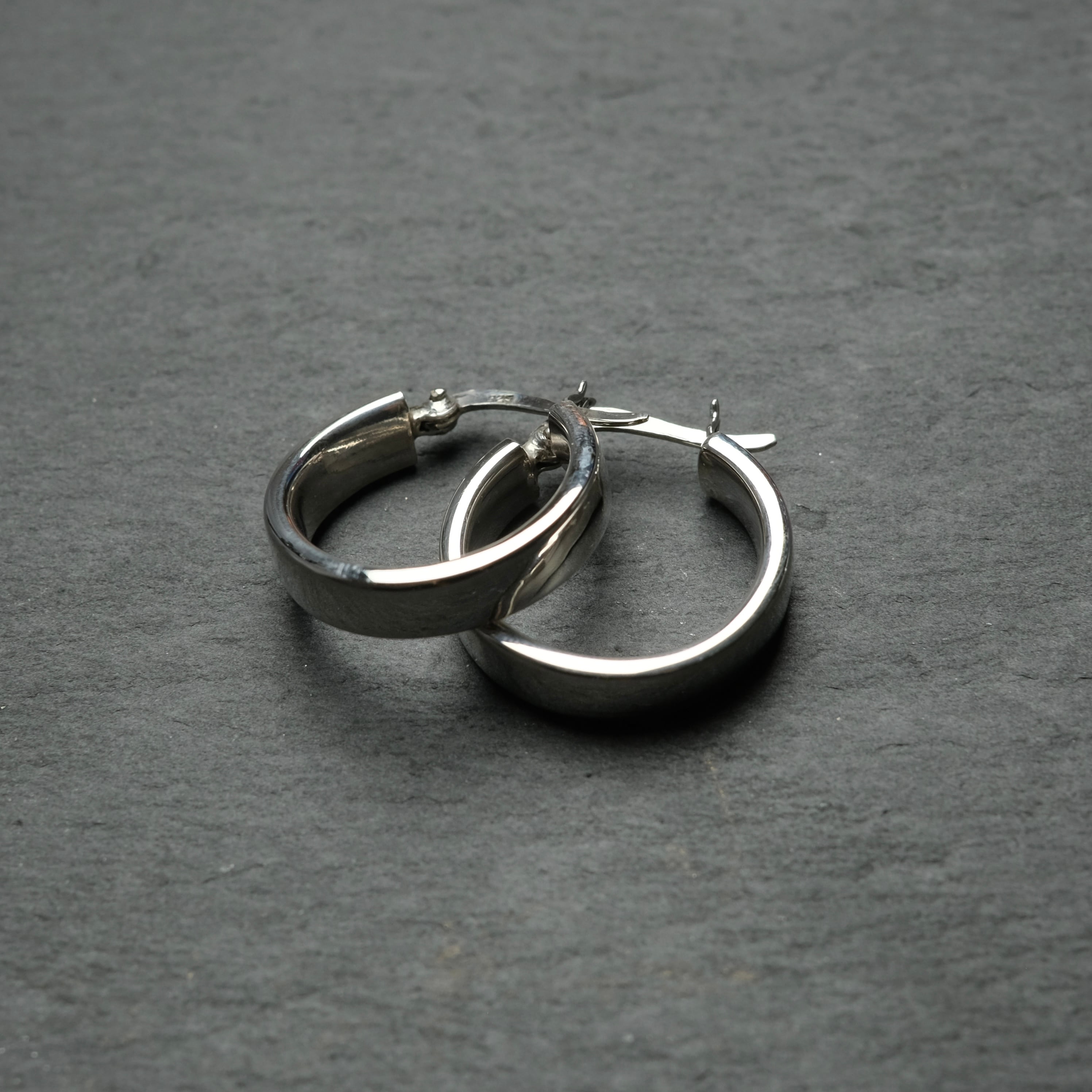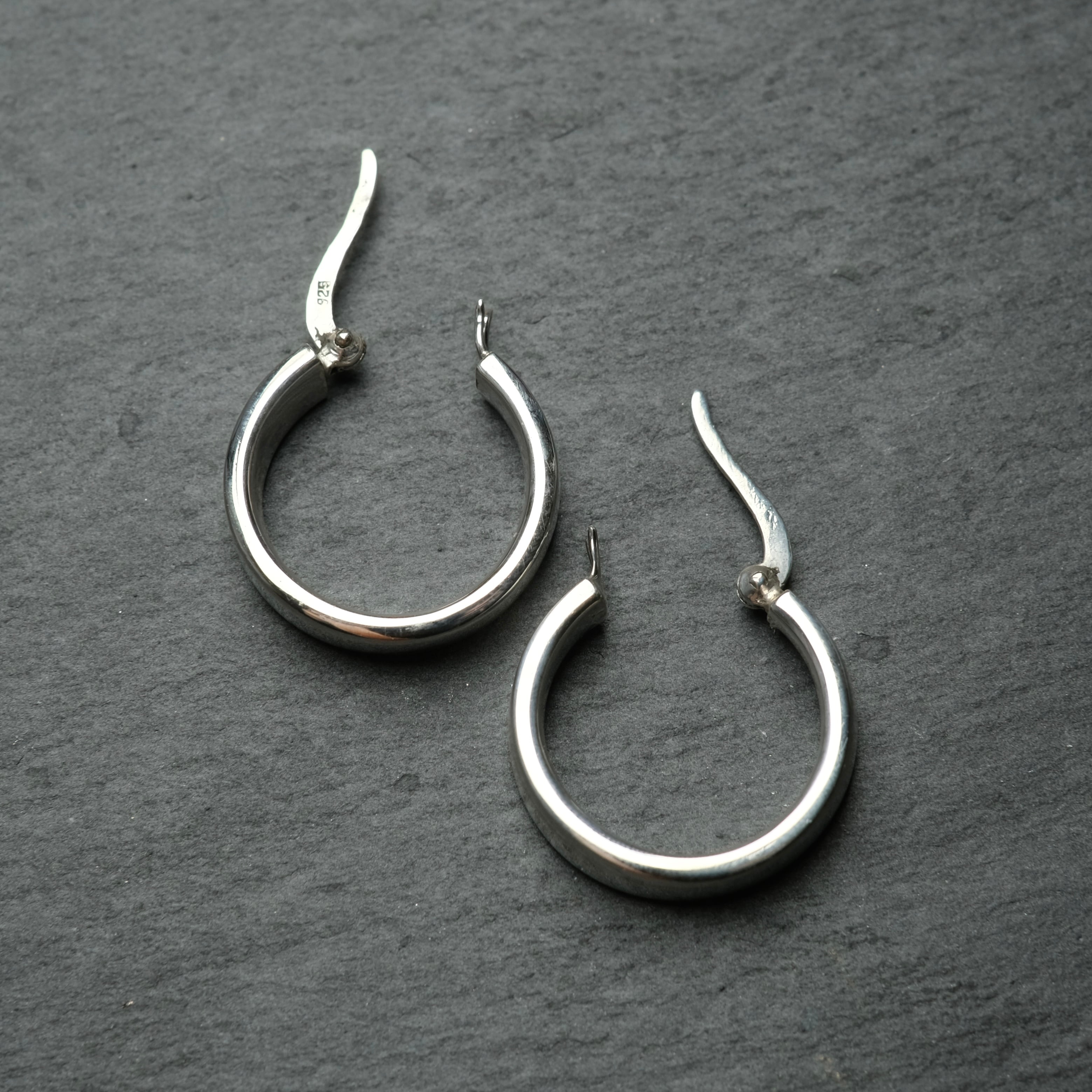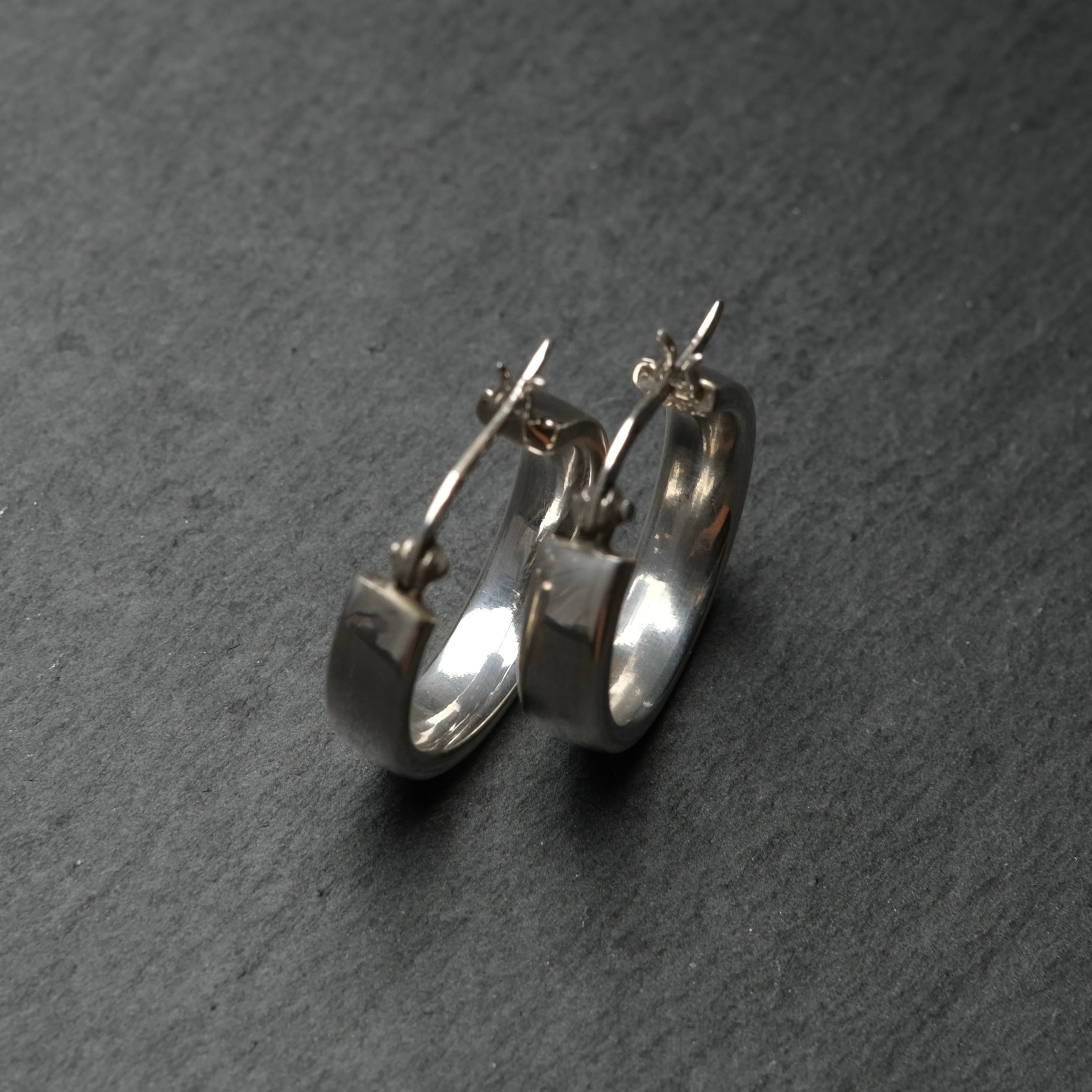 シルバー925 silver シンプルフラットワイドフープピアス/軽研磨仕上げ
