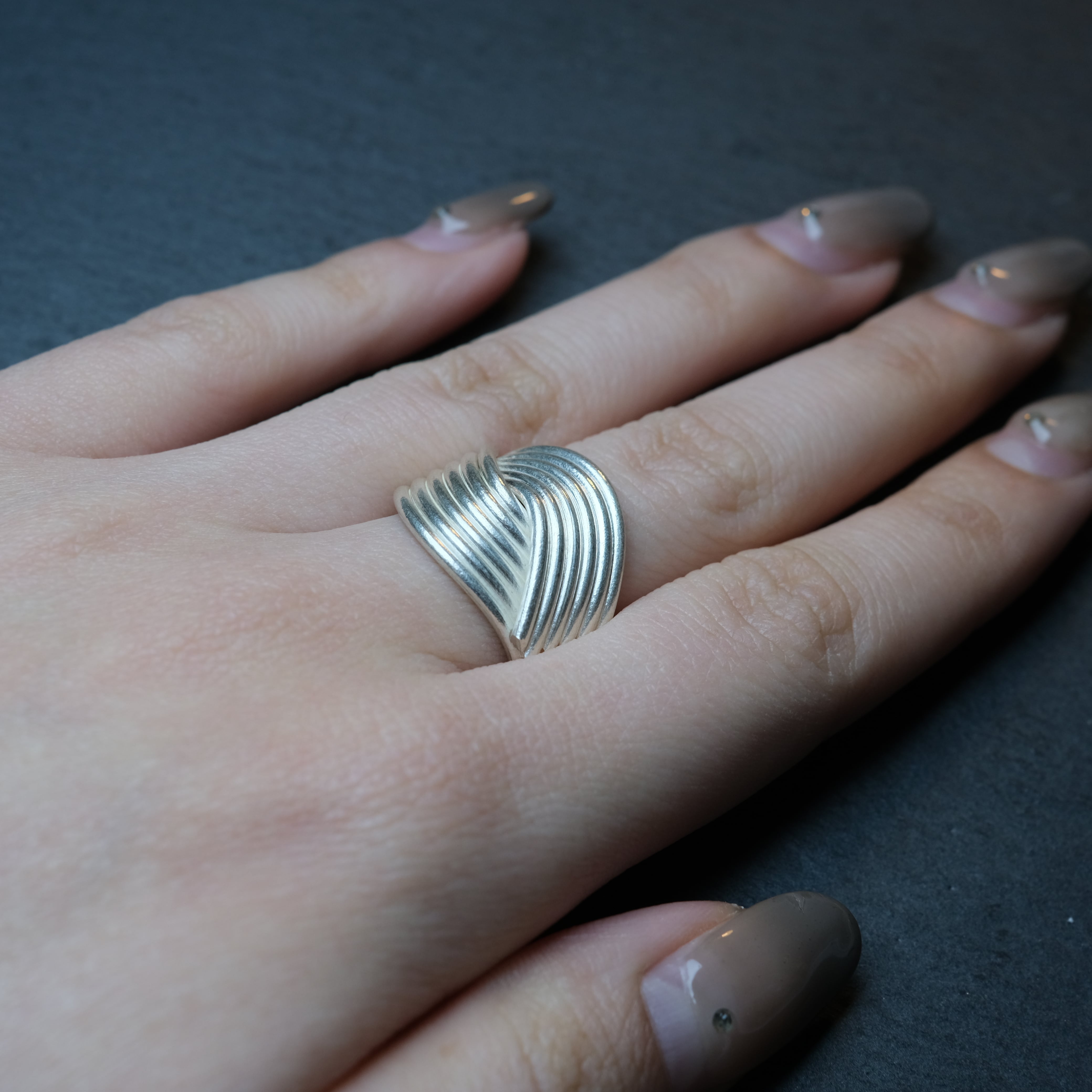 全体的にデザインが施され、丸みを帯びたカレンシルバーリングになります。