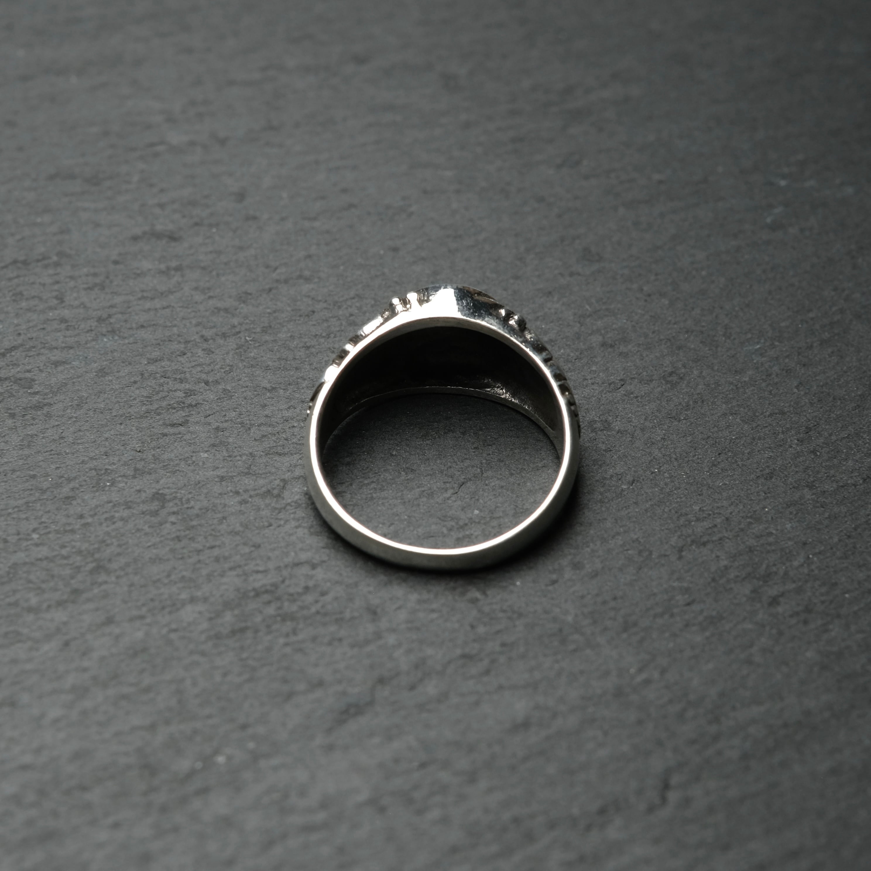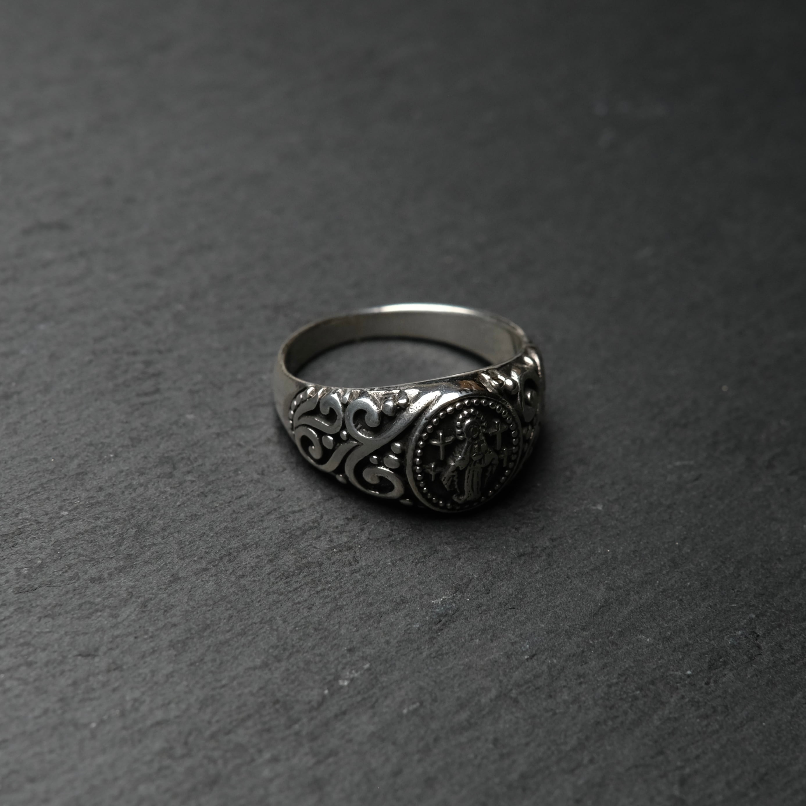 トップに聖母マリア、サイドには唐草模様を用いたシルバーリングになります。