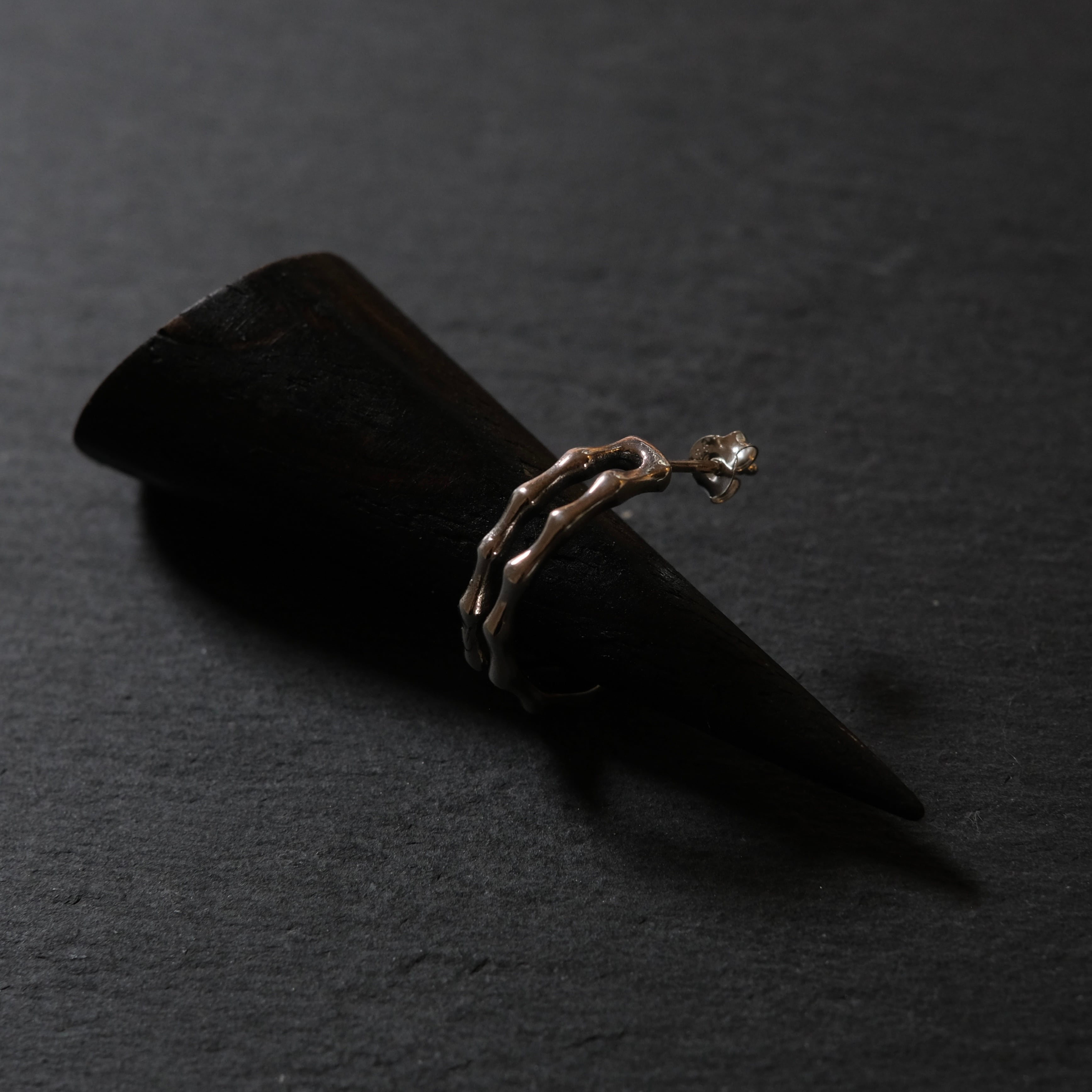 骨が繋がっているように見えるユニークなデザインが印象的で、全体に広がる凹凸の反射が洗練された雰囲気を演出します。