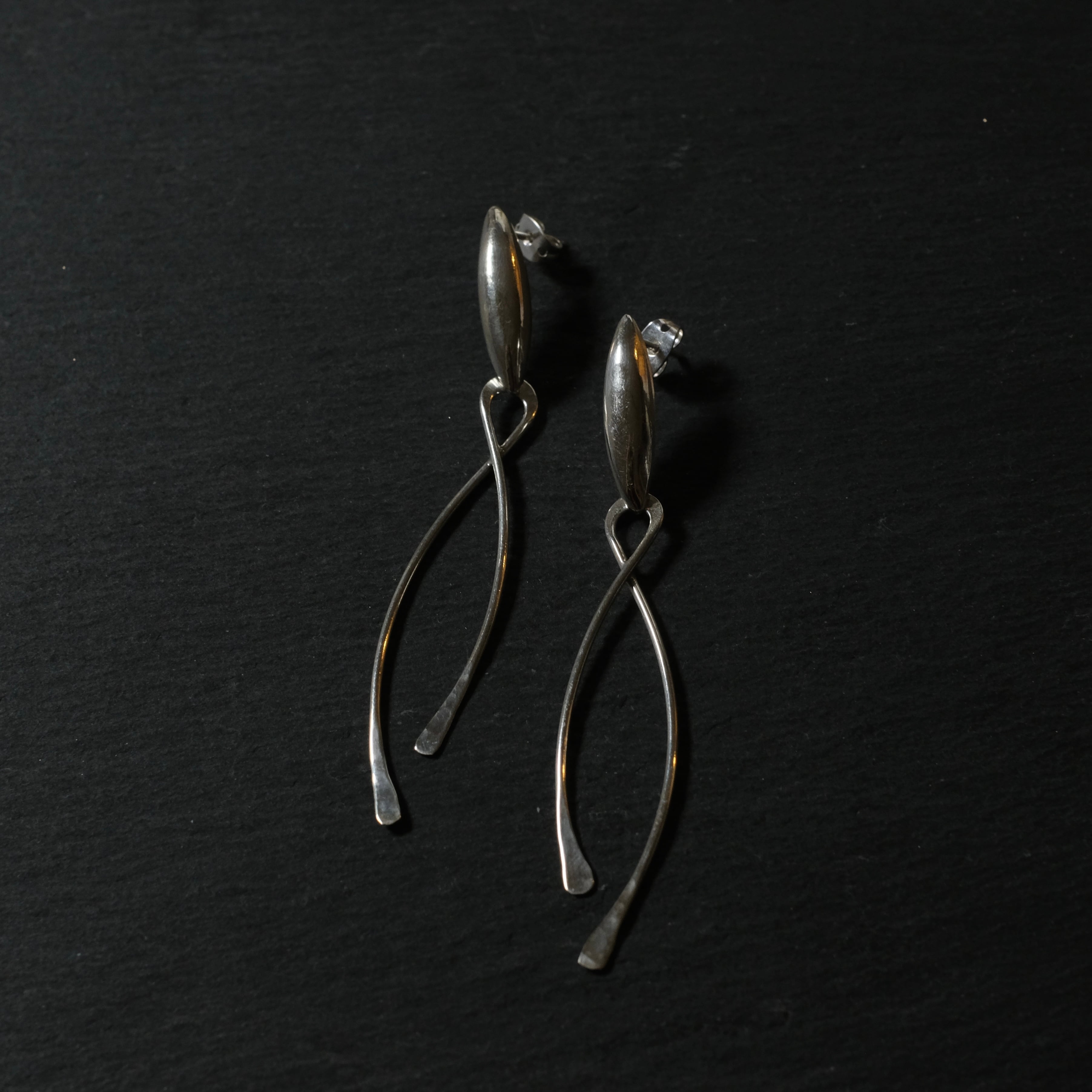 メキシコ タスコ製 Taxco シルバー925 ビッグ2Wayデザインピアス/軽研磨仕上げ/両耳