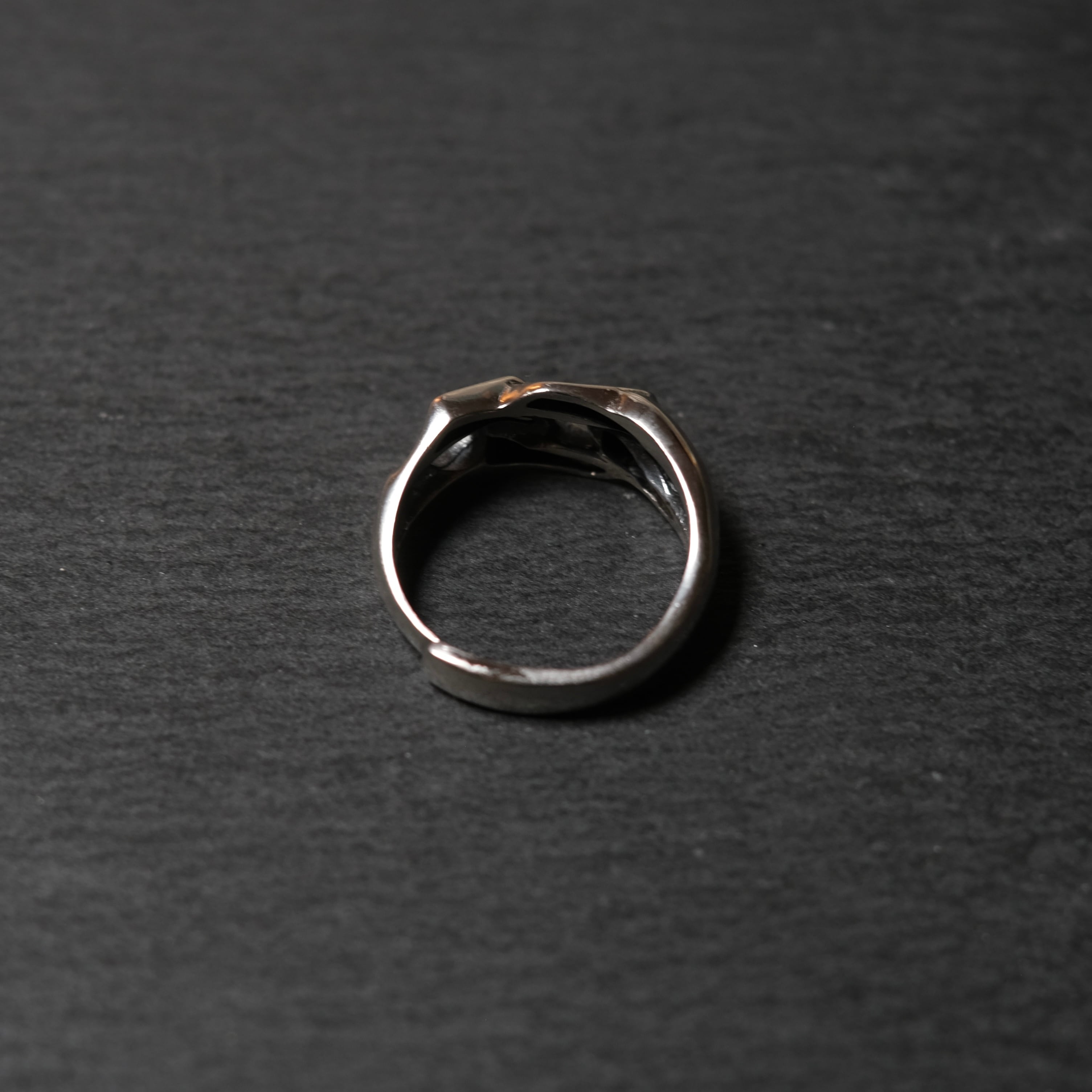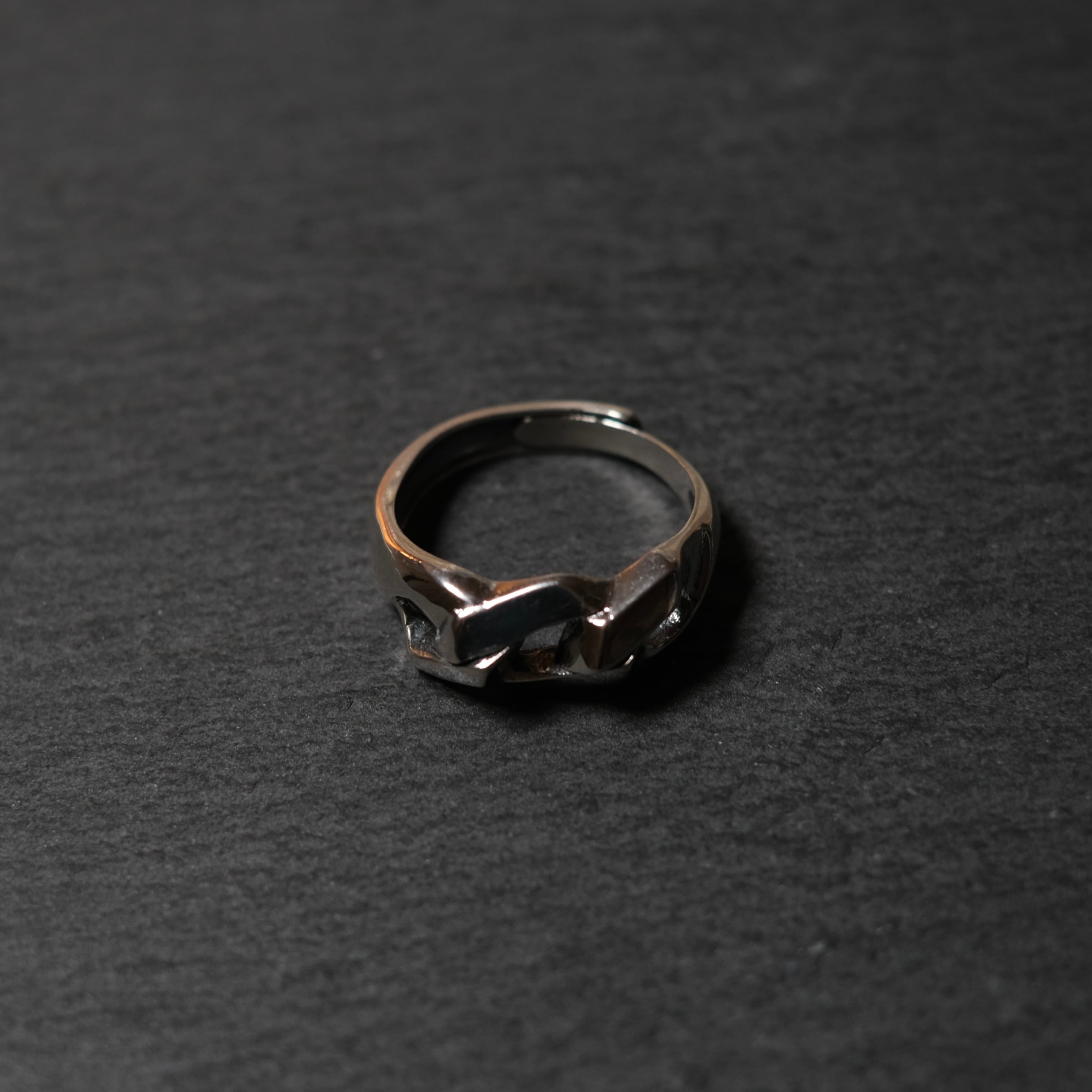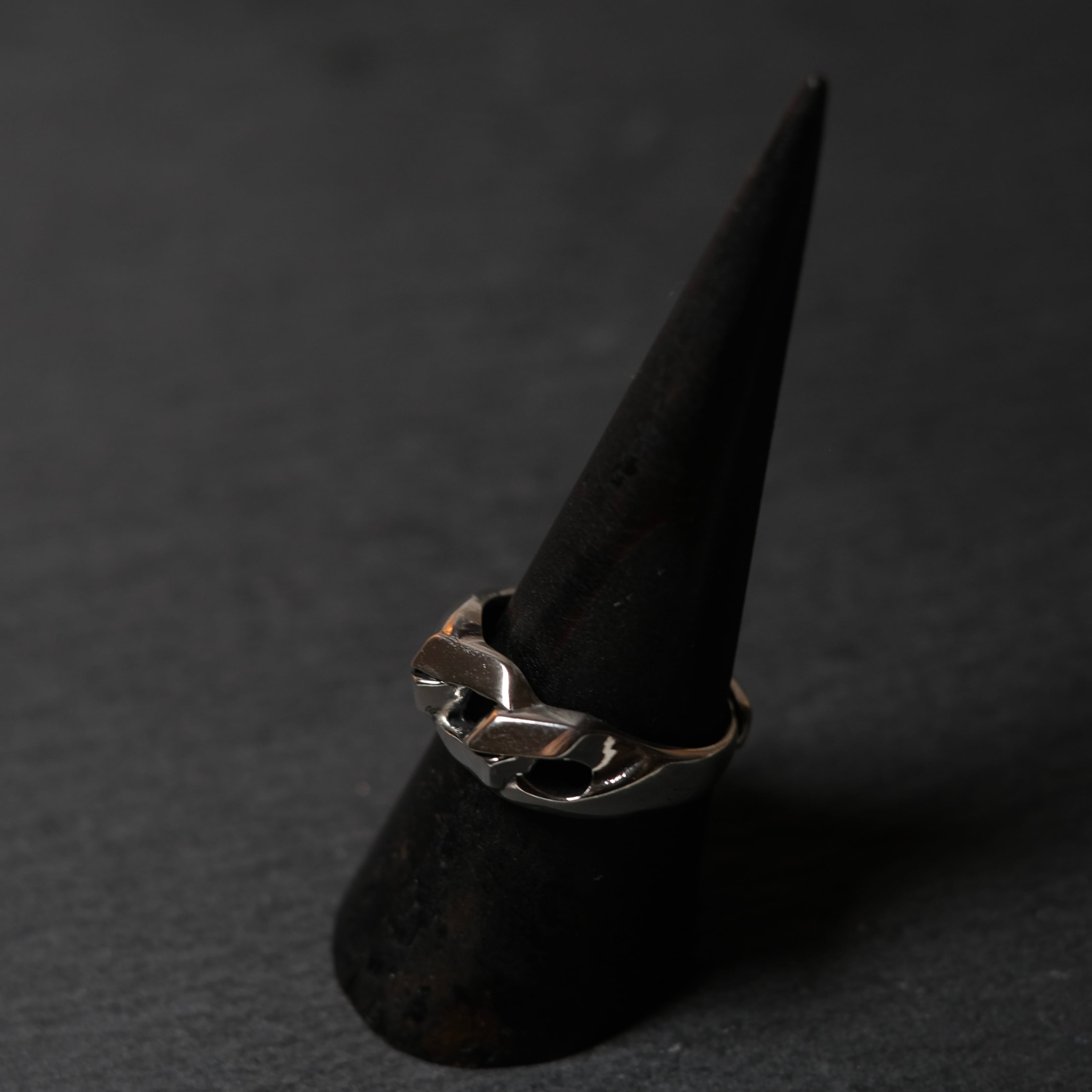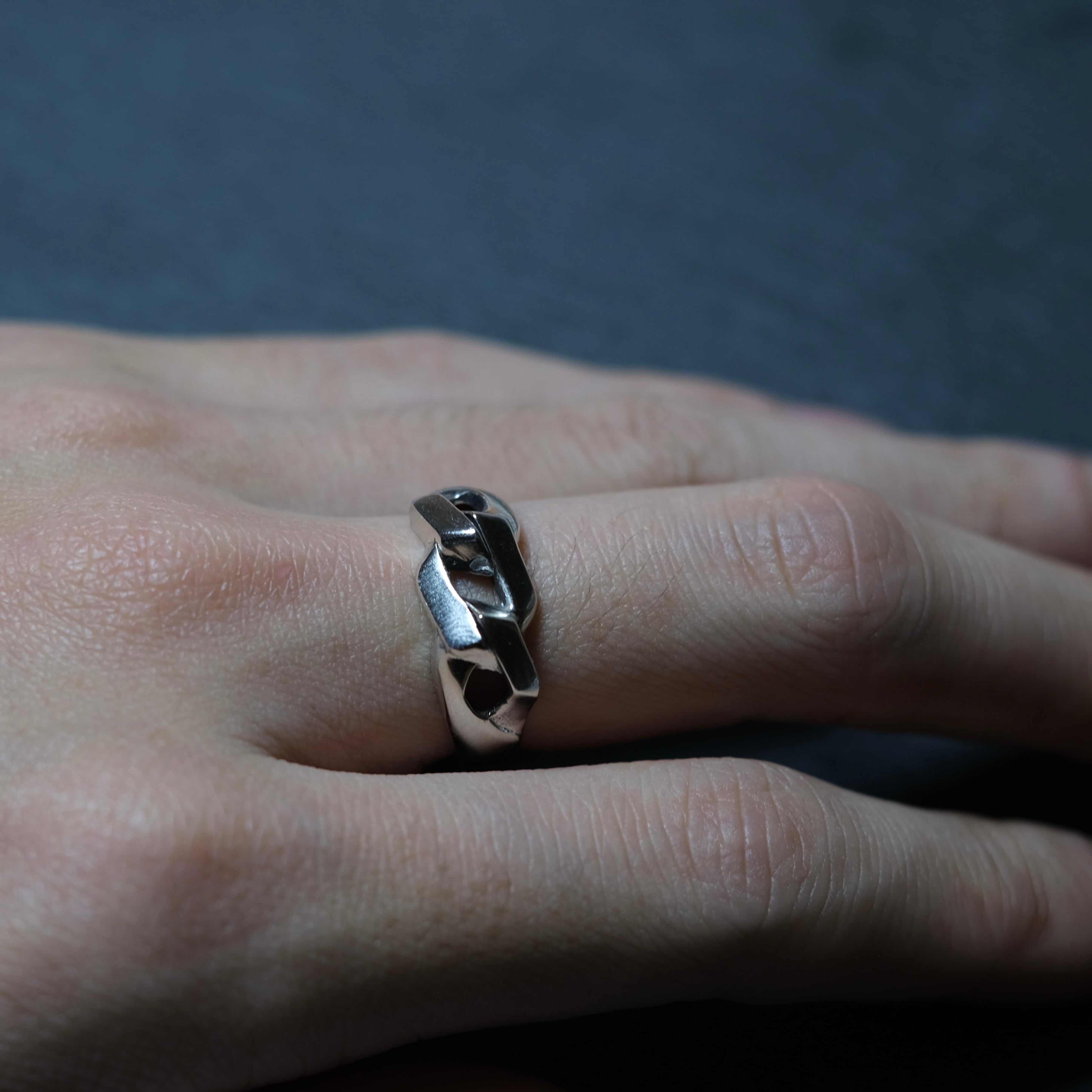 トップの大ぶりのチェーンデザインが魅せるインパクトがかっこいいリングでございます。