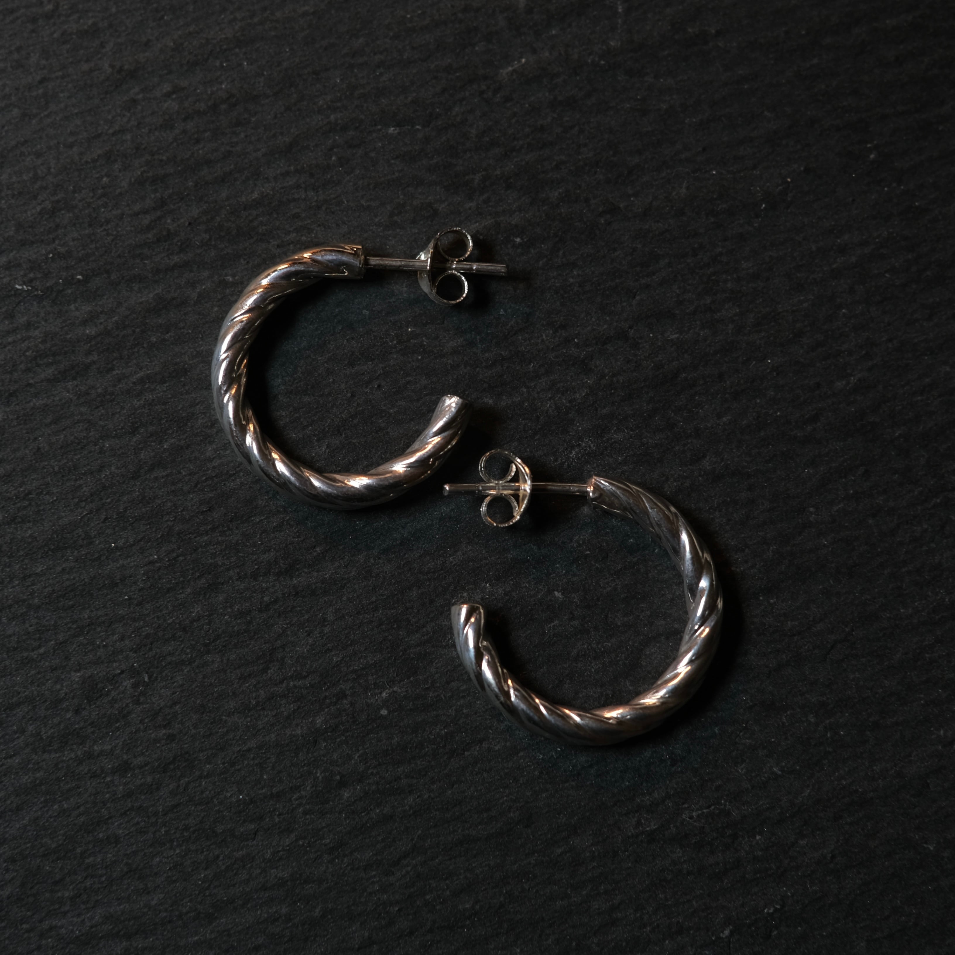 シルバー925 silver ツイストフープピアス/軽研磨仕上げ/両耳