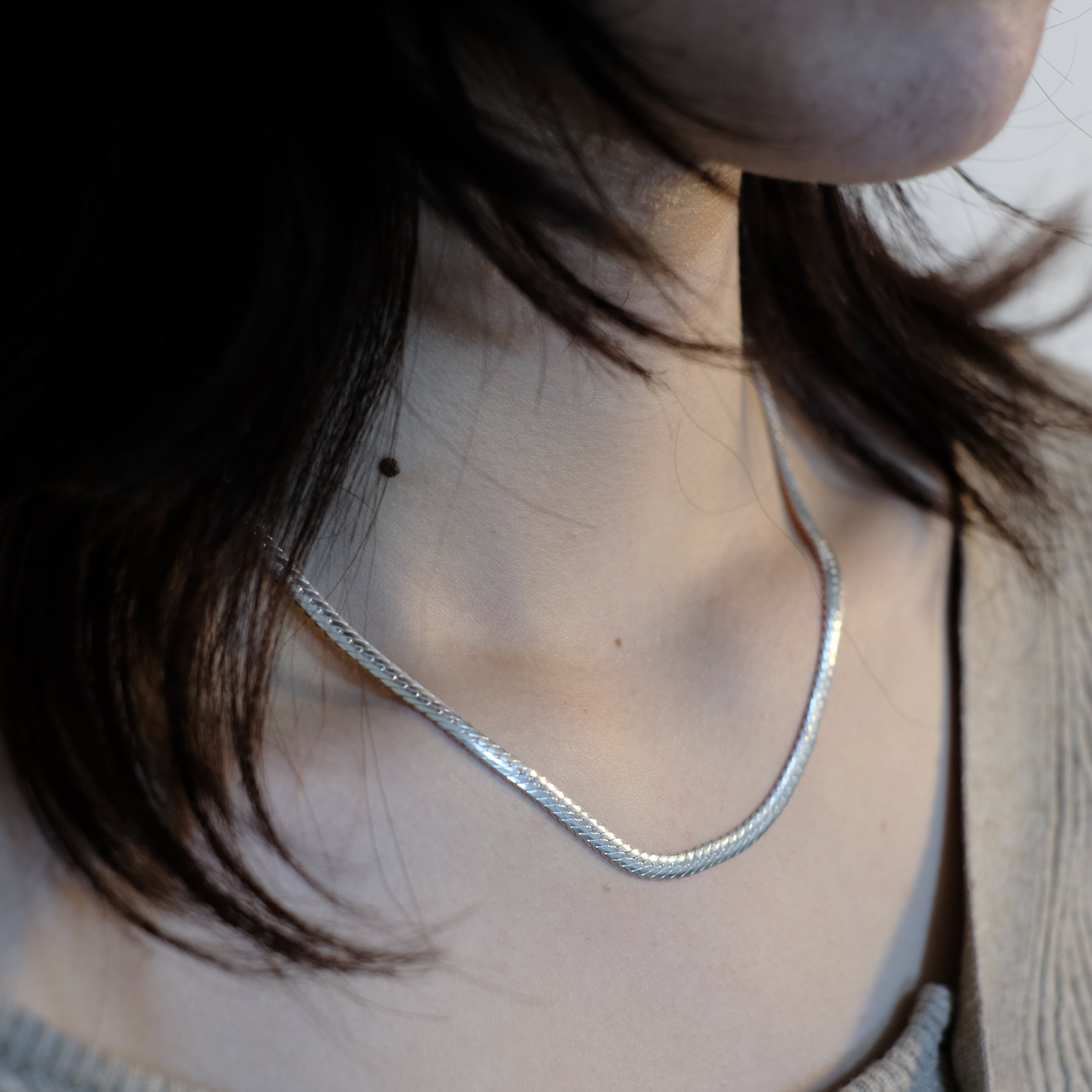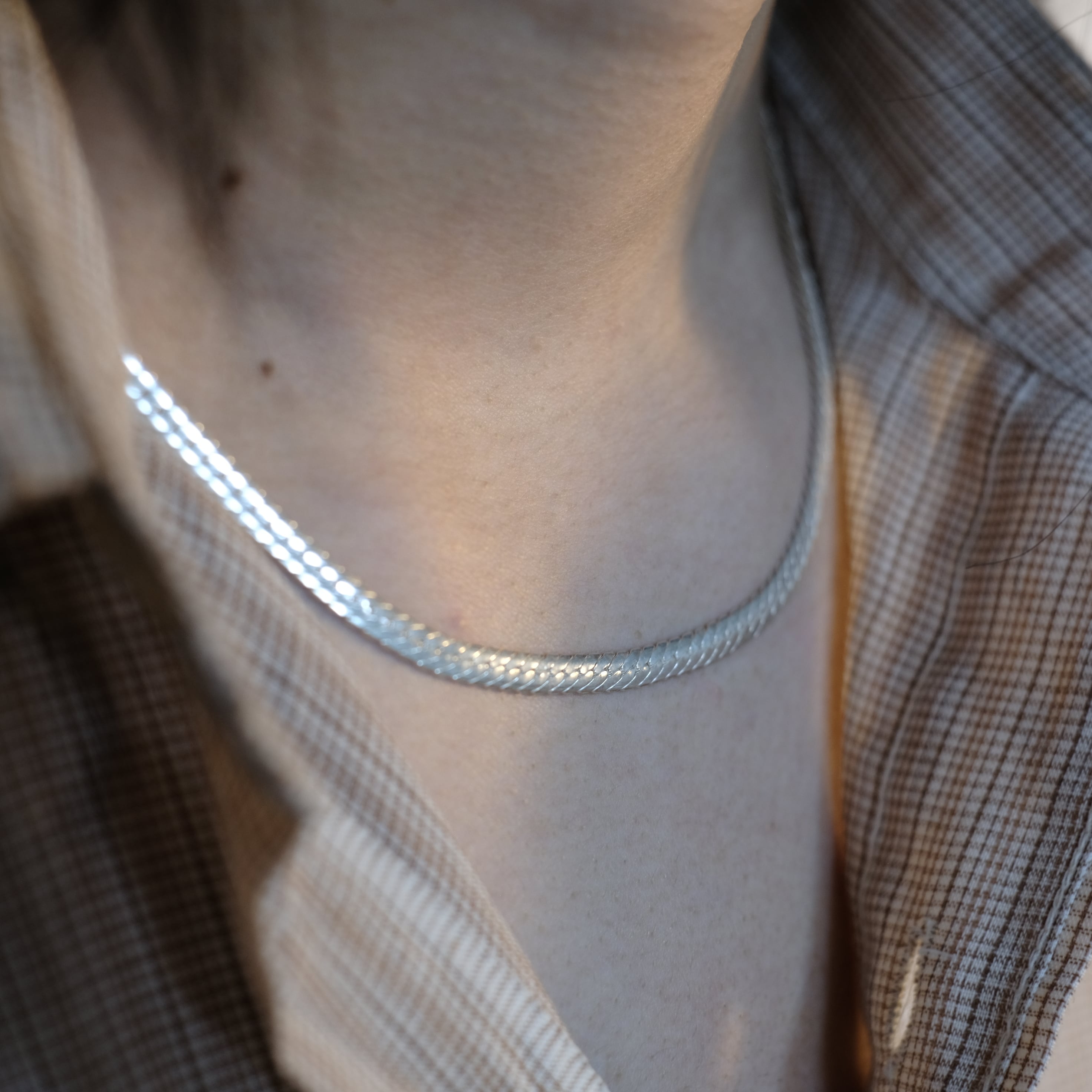 シルバー925 silver ワイドスネークチェーンネックレス/軽研磨仕上げ/45cm