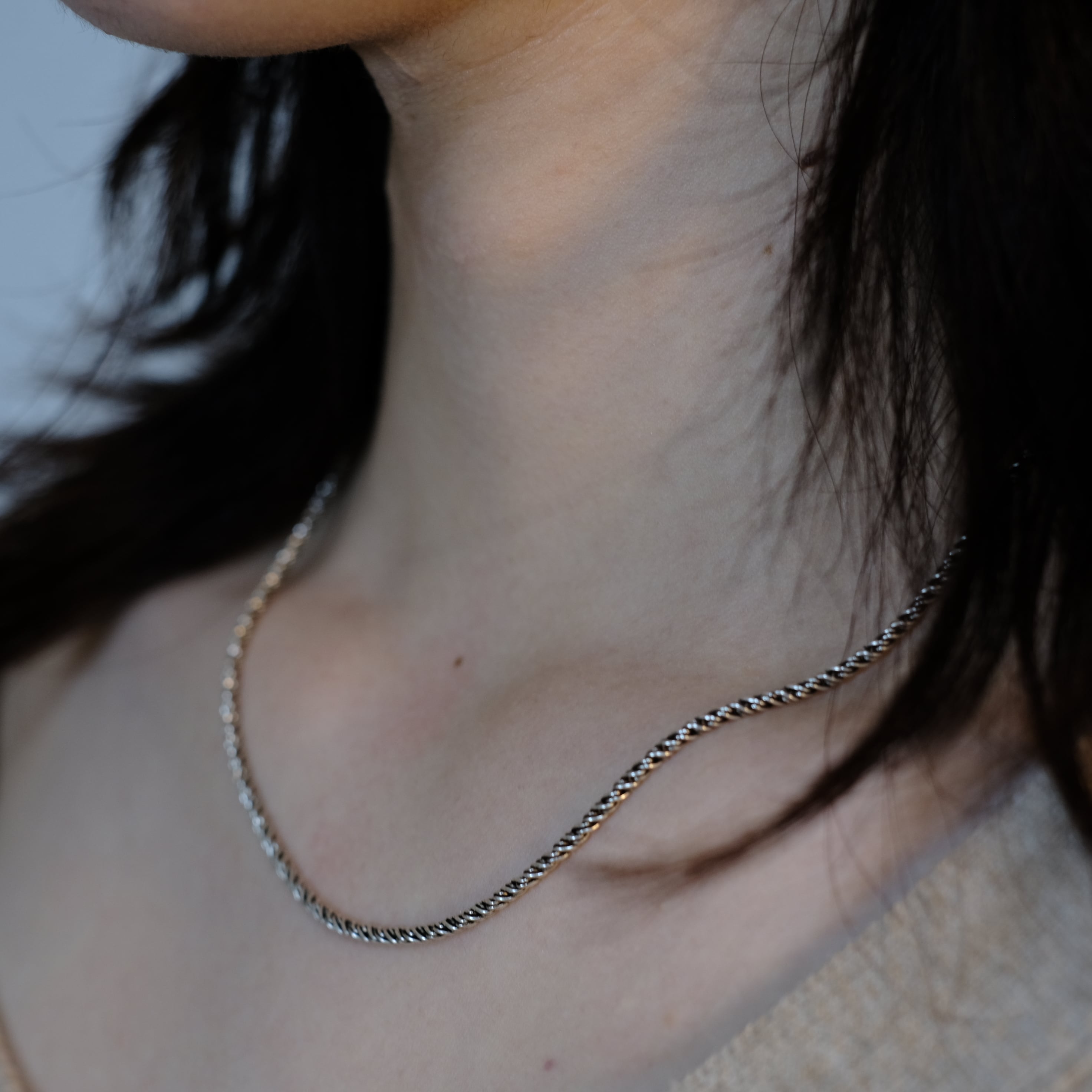 シルバー925 silver 燻しツイストチェーンネックレス/軽研磨仕上げ/45cm