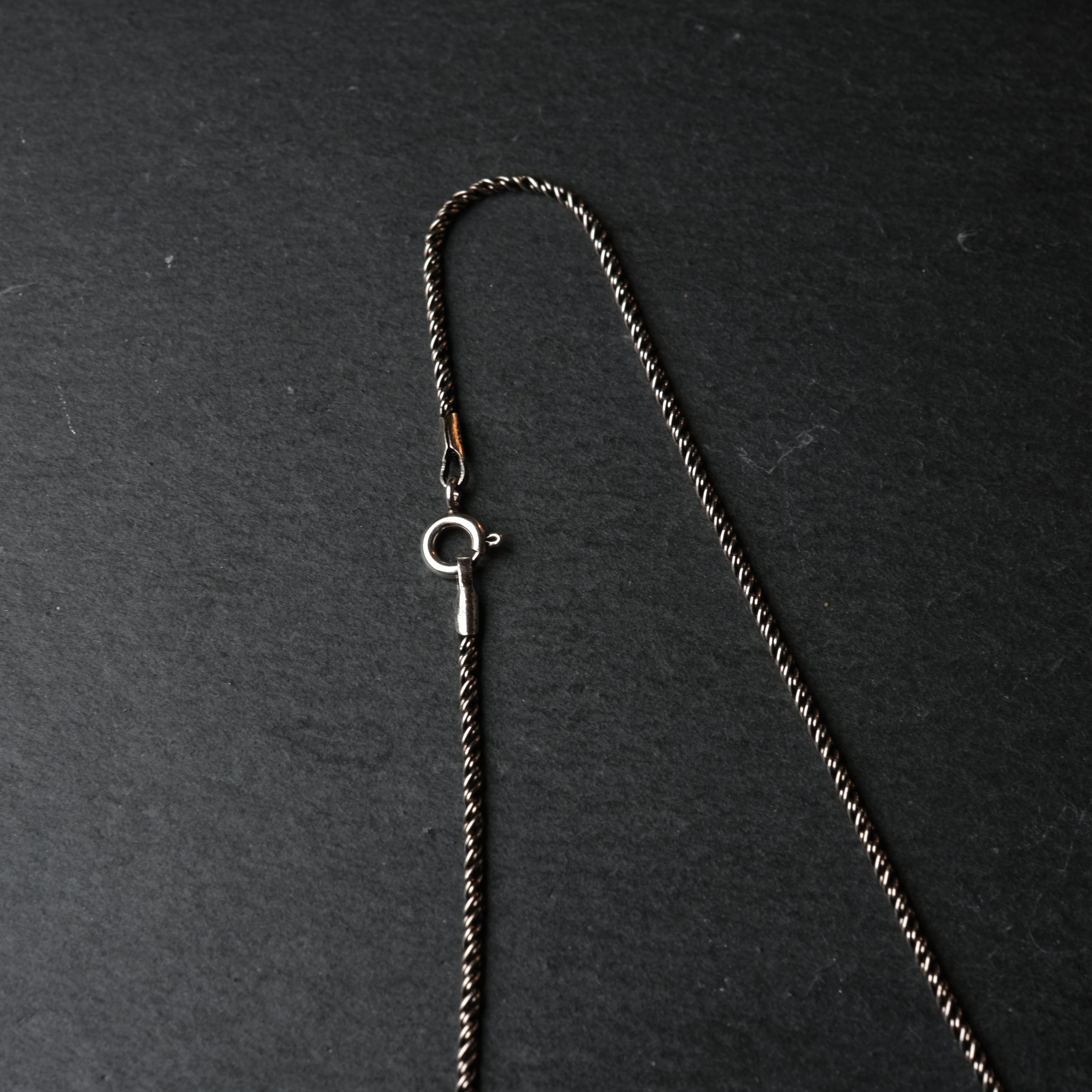 チェーンには、燻しが効いたナロータイプのツイストチェーンを採用し、カレンのペンダントトップとのコントラストが素敵な逸品です。